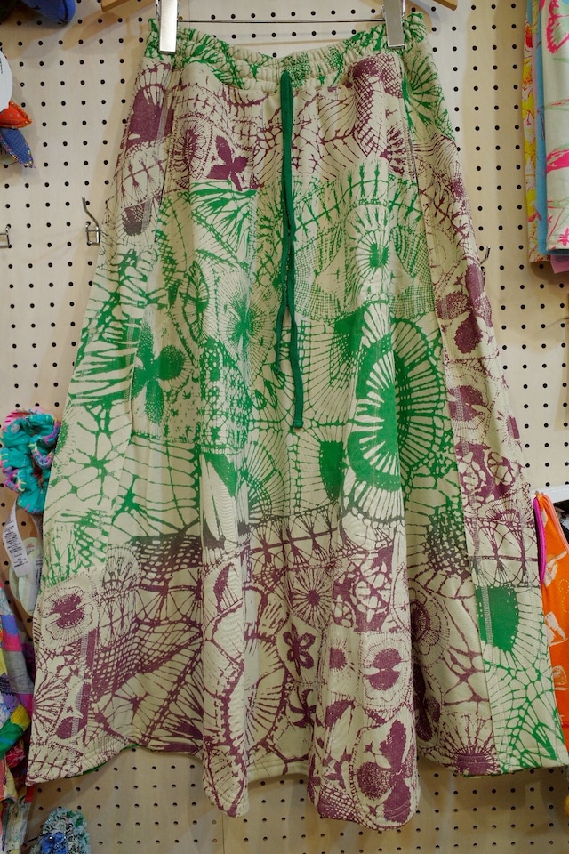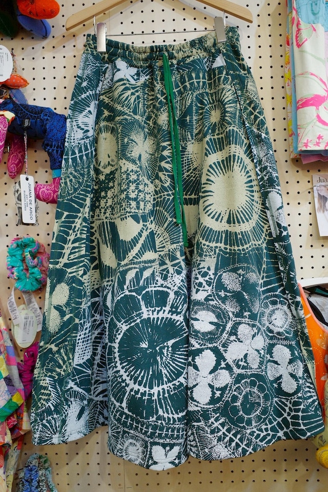 Viajeスウェット素材のシリーズ。 シンプルなAラインのシルエットとはりのあるスウェット生地のドレープが華やかです。 両サイドにポケットつき。 ※1点もののため柄の出方が異なります。ご了承くださいませ。 原産国:アルゼンチン 生地の組成:コットン100% 採寸:ウエスト平置き36cm~(紐で絞れます),総丈87cm,裾幅120cm ●お洗濯に関して 1点ずつハンドメイドで作られた製品です。 最初のお洗濯は色落ちにご注意くださいませ。 洗濯機のおしゃれ着洗いモードでお洗濯推奨です。 長年愛用しておりますがオーナーはネットに入れておしゃれ着洗いで長持ちしています。
