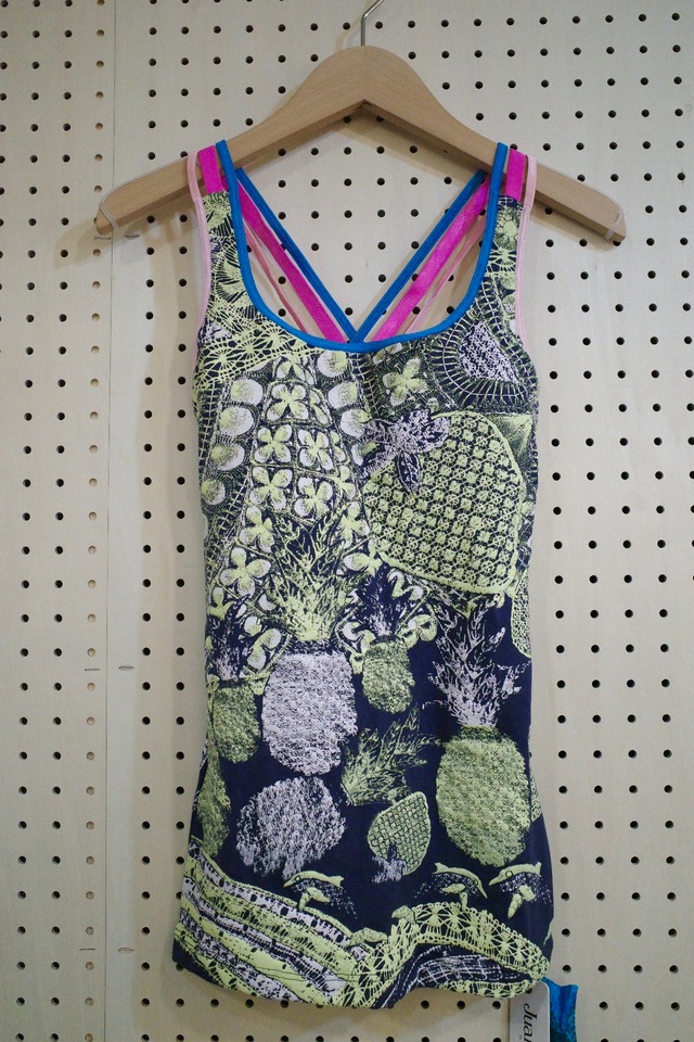 Juana de Arcoの定番ライン”Mi negraシリーズ” ヨガやスポーツで大活躍のバッククロスタンクトップ。 胸元はパッドポケット付きで一枚でインナーに。カラフルな3本ストラップが背中で交差するデザイン。 肩甲骨を動かしやすく、胸元もぴったり沿うので一枚でも安心の着心地です。 透け感のあるお洋服や胸元や背中の開いたお洋服に合わせて見せるインナーとしてもお使いいただけます。 ※1点もののため柄の出方が異なります。ご了承くださいませ。 ※ブラパッドは別売りです。 原産国:アルゼンチン 生地の組成:レーヨン96% ポリウレタン4% 採寸:着丈58㎝,身幅27.5㎝,クロスストラップ長さ30㎝ ●お洗濯に関して 1点ずつハンドメイドで作られた製品です。 最初のお洗濯は色落ちにご注意くださいませ。 優しく手洗いもしくは洗濯機のおしゃれ着洗いモードでお洗濯推奨です。 長年愛用しておりますがオーナーはネットに入れておしゃれ着洗いで長持ちしています。 モダール生地は水濡れすると重たくなるので、 乾かす際にワンピースやパンツなどの生地分量が多いものは そのままハンギングして干すとだんだん生地が伸びてきます。 干す際に重さを分散させるように干すのがおすすめです。 (平置きまでいかずともハンガー二本にわたしてかけるなど) 水濡れしたままの放置は色移りの可能性がございますのでご遠慮ください。