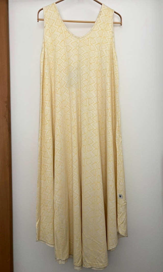 Juana de Arcoの定番ライン”Mi negraシリーズ"よりビルヘンワンピース Virgen(ビルヘン)”はヴィーナスの意味を持つ女性らしく美しいデザイン。 裾に向かってフレアのなるAラインのシルエットが、柔らかい女性らしさを引き出します。 ※1点もののため柄の出方が異なります。ご了承くださいませ。 原産国:アルゼンチン 生地の組成:レーヨン96% ポリウレタン4% 採寸:身幅50cm, 着丈124cm ●お洗濯に関して 1点ずつハンドメイドで作られた製品です。 最初のお洗濯は色落ちにご注意くださいませ。 優しく手洗いもしくは洗濯機のおしゃれ着洗いモードでお洗濯推奨です。 長年愛用しておりますがオーナーはネットに入れておしゃれ着洗いで長持ちしています。 モダール生地は水濡れすると重たくなるので、 乾かす際にワンピースやパンツなどの生地分量が多いものは そのままハンギングして干すとだんだん生地が伸びてきます。 干す際に重さを分散させるように干すのがおすすめです。 (平置きまでいかずともハンガー二本にわたしてかけるなど) 水濡れしたままの放置は色移りの可能性がございますのでご遠慮ください。