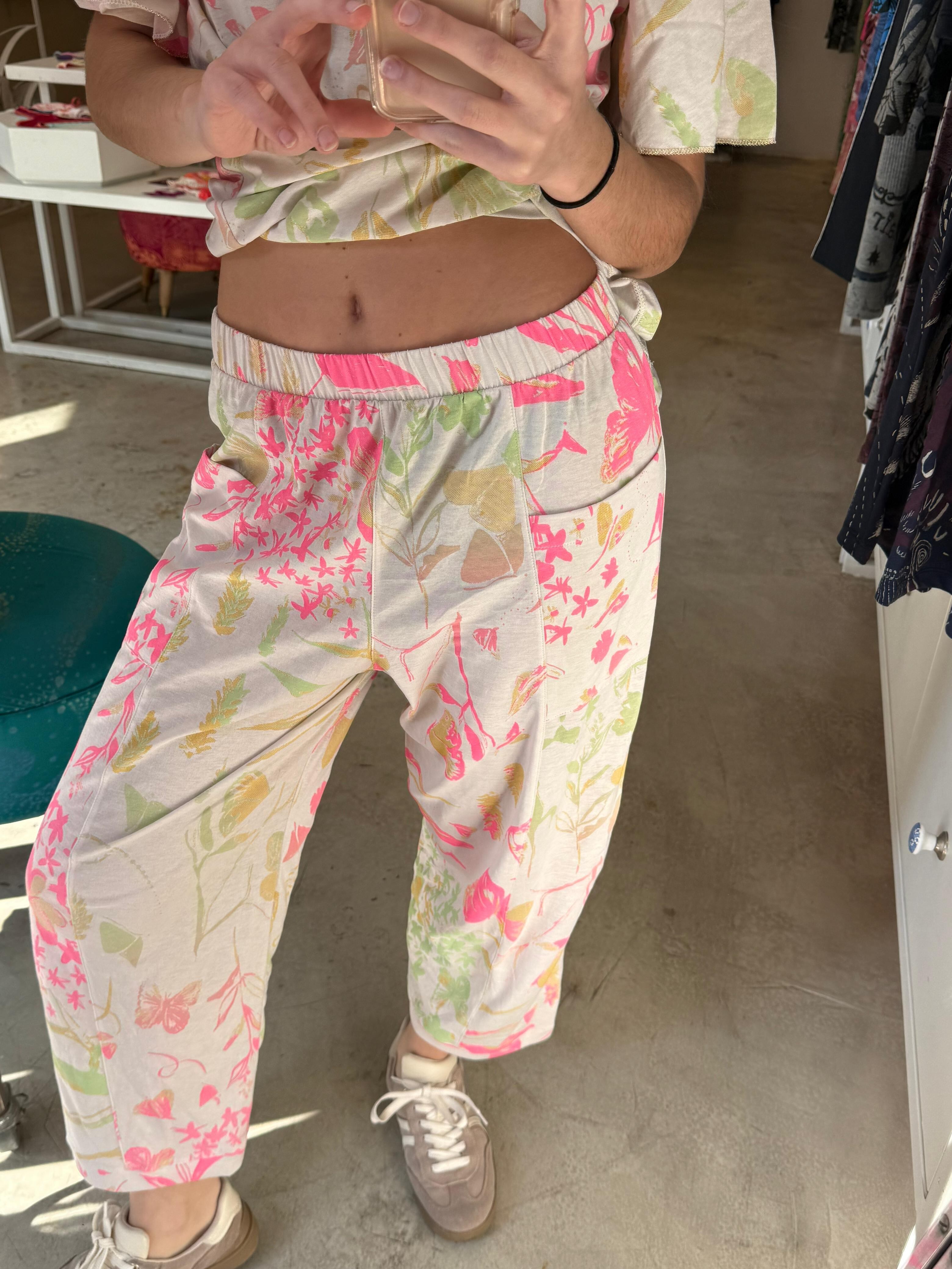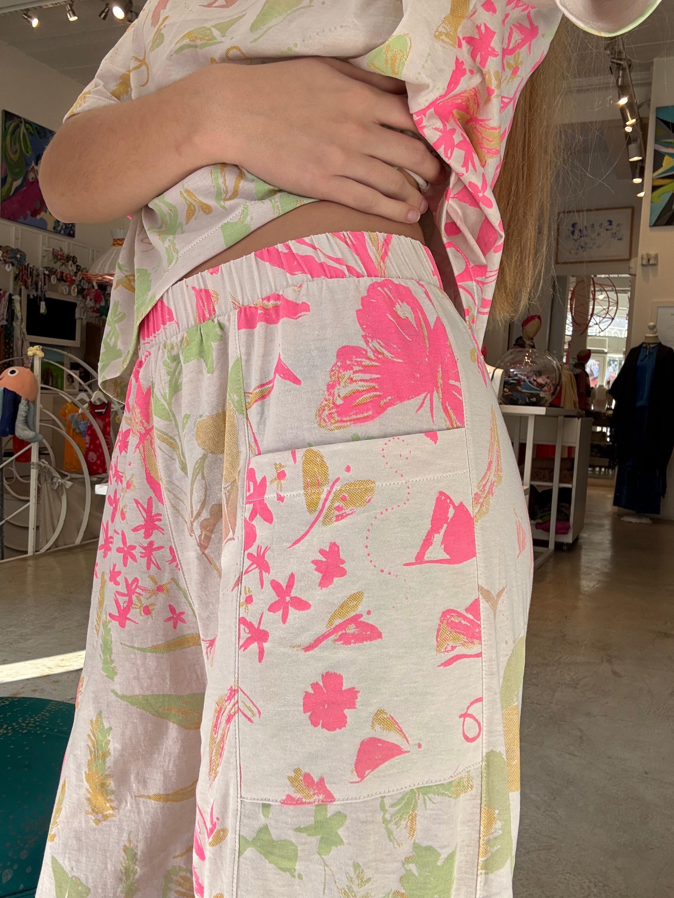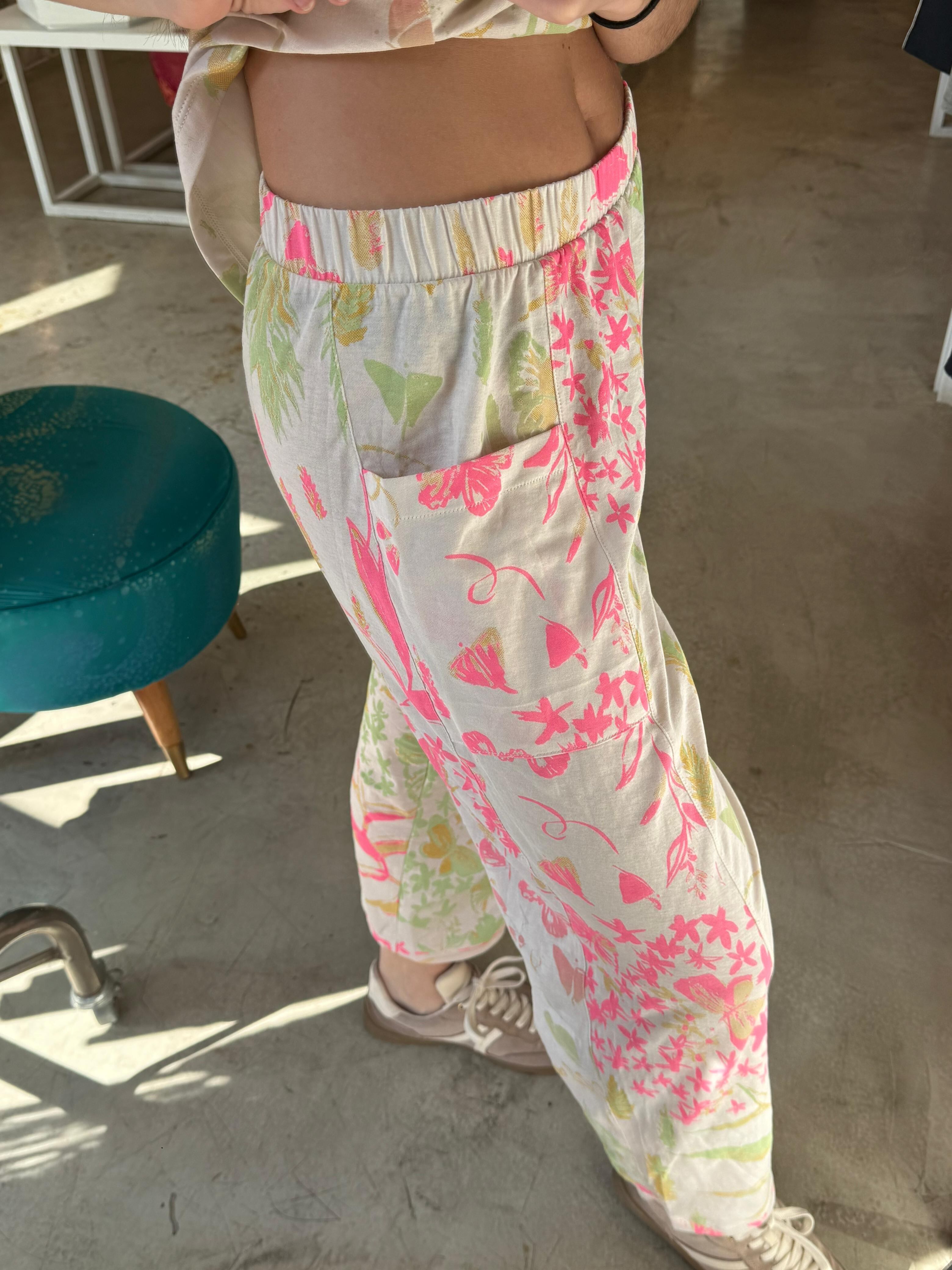 Pima cotton ワイドパンツ(アイボリー・お花とちょうちょ柄)