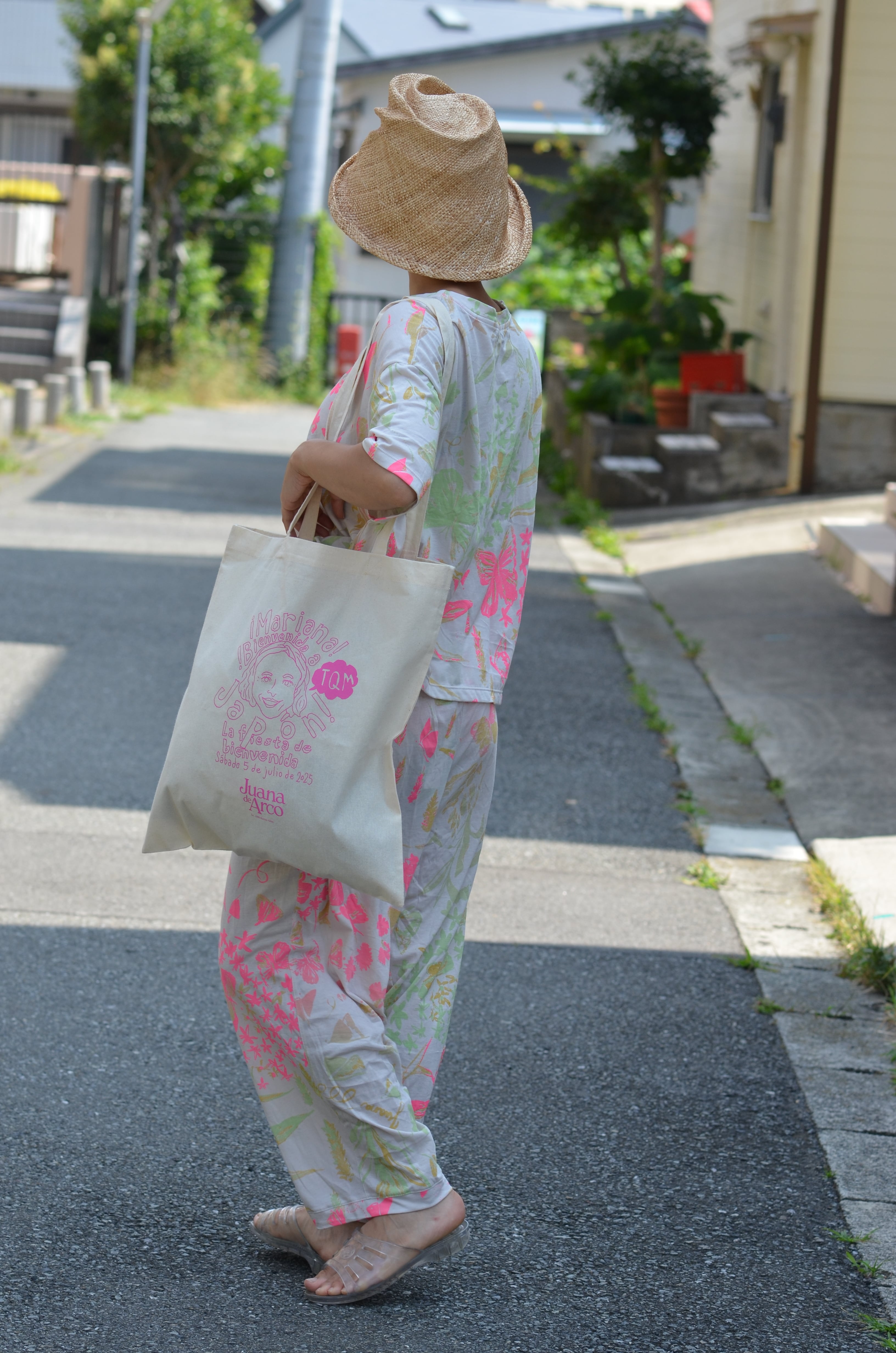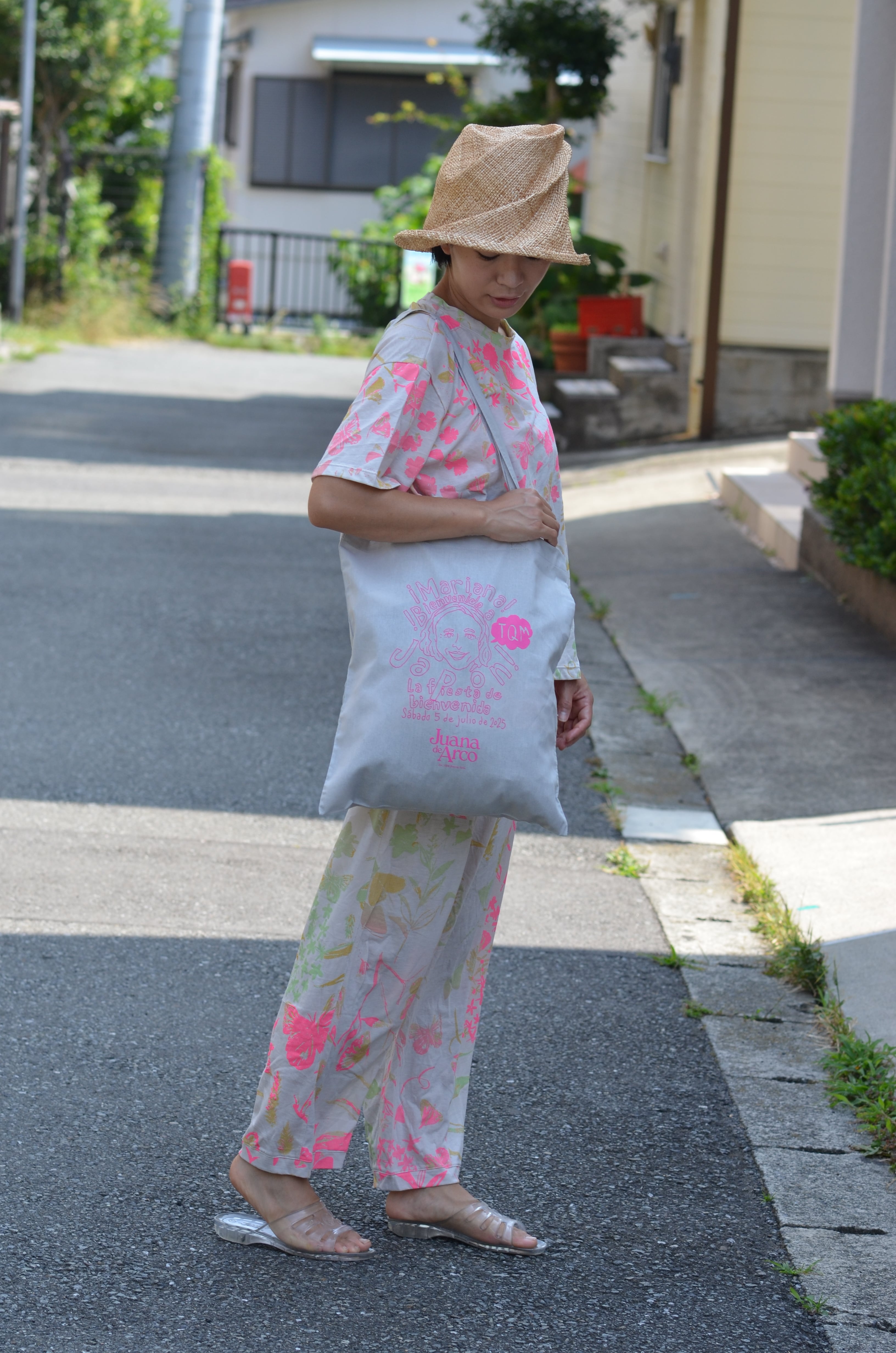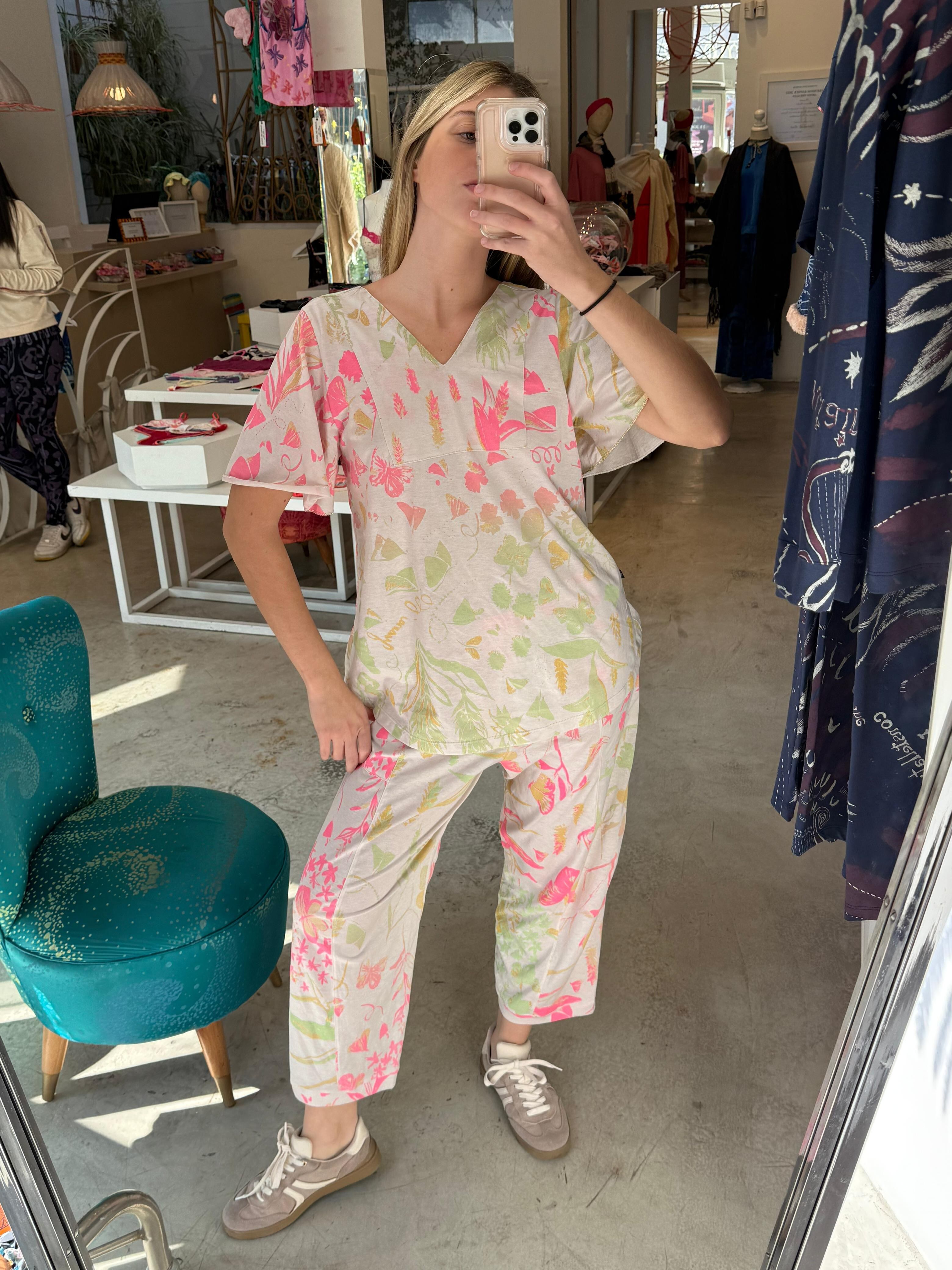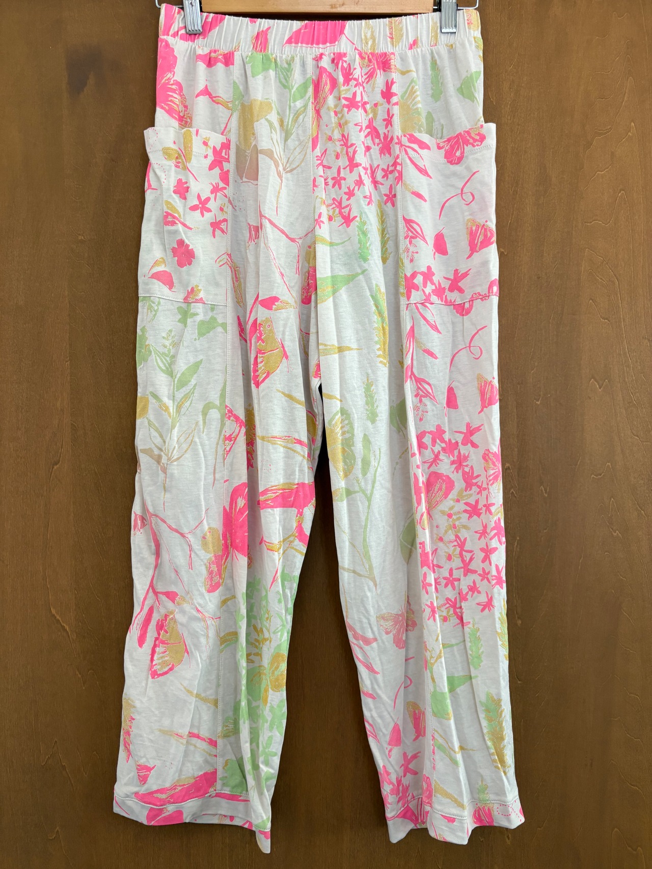 Pima cotton ワイドパンツ(アイボリー・お花とちょうちょ柄)