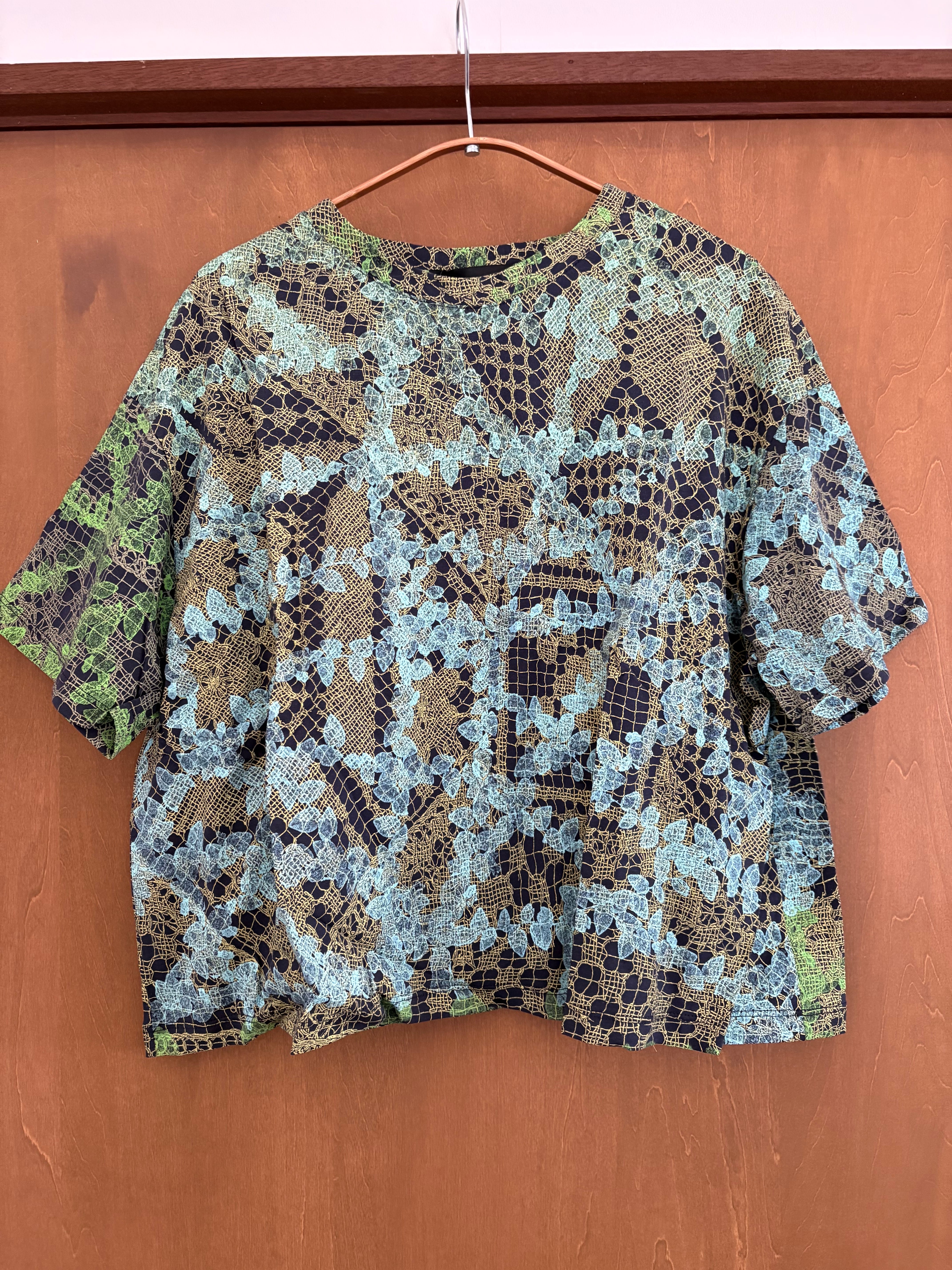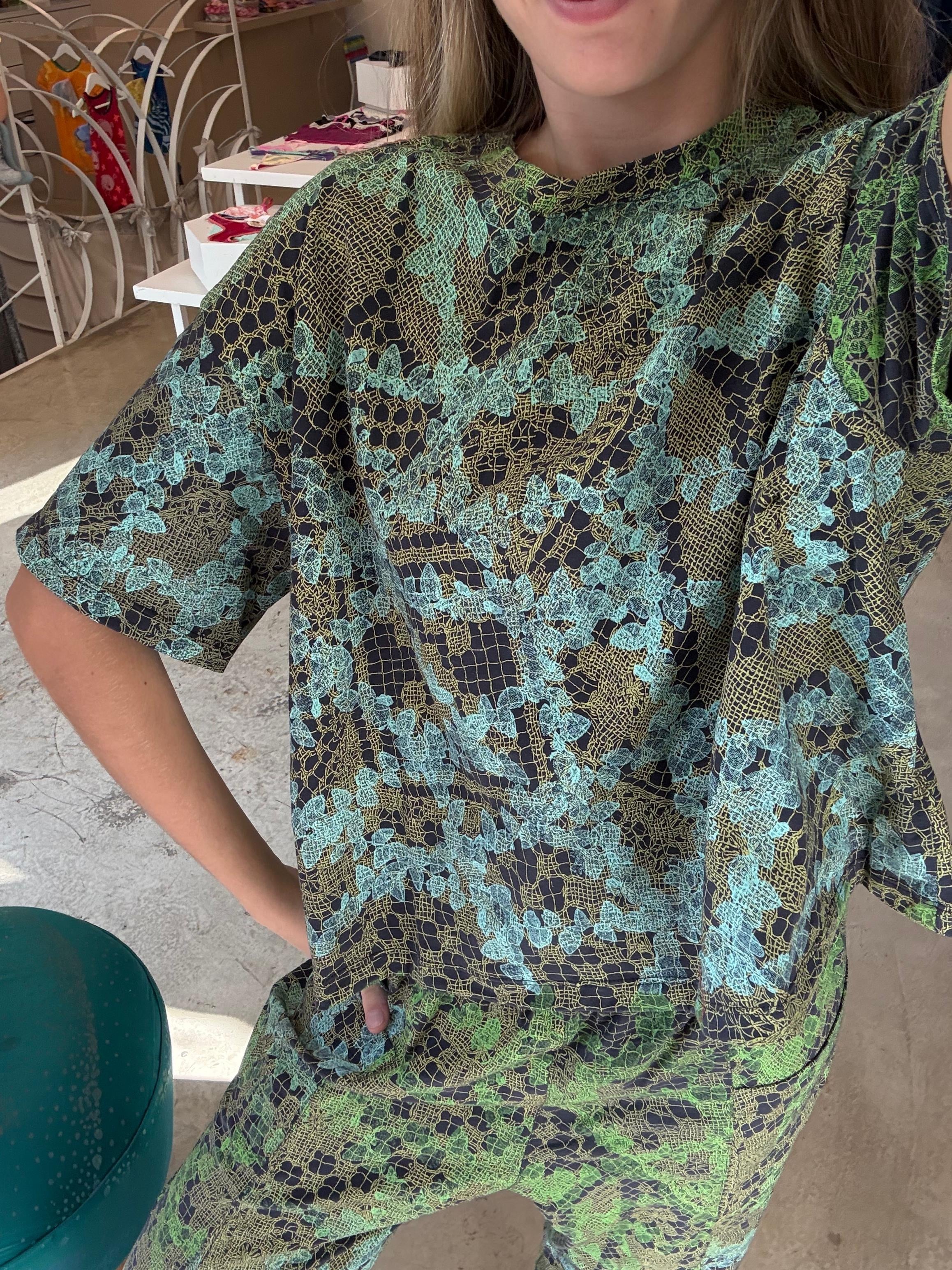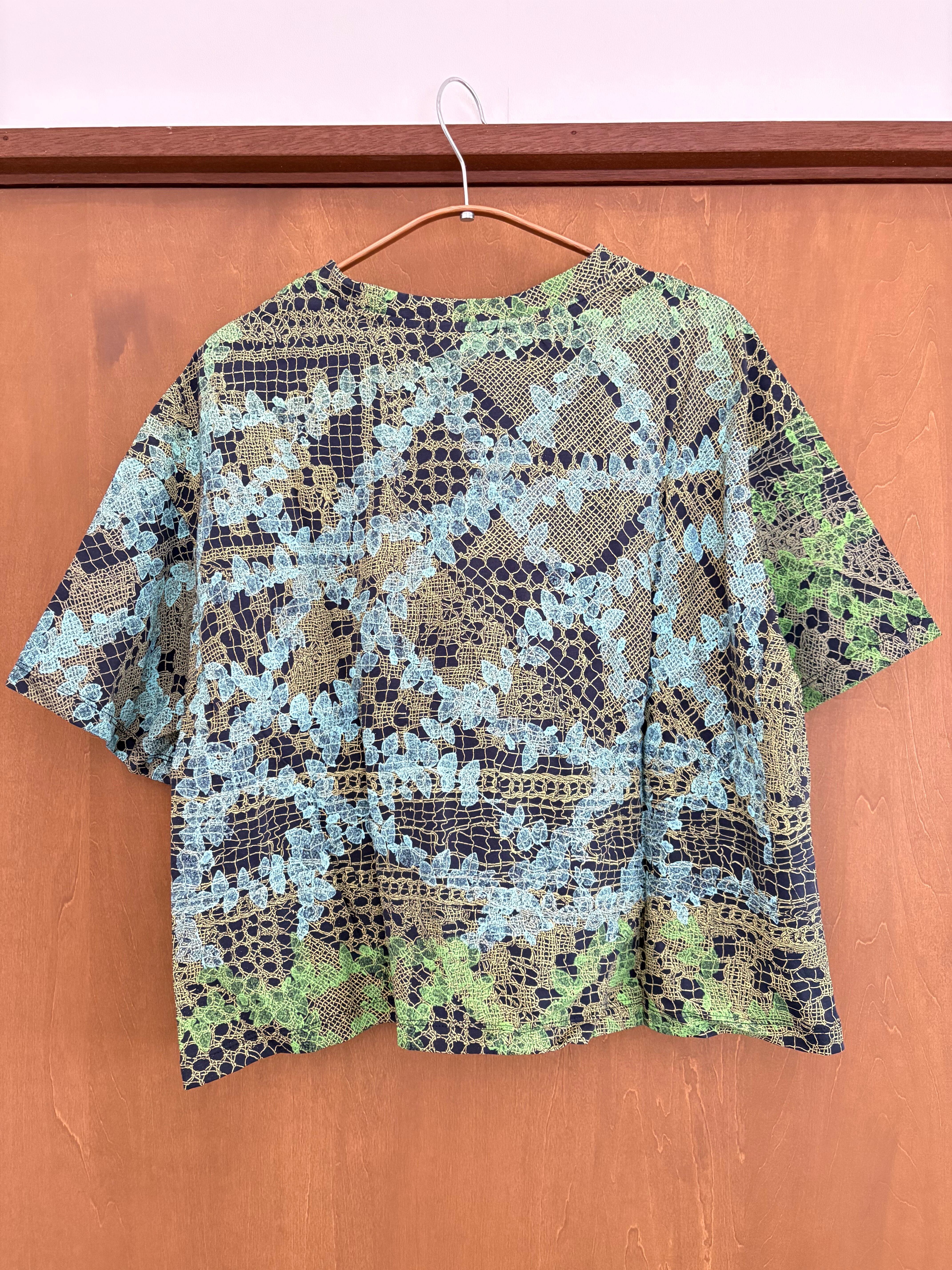 Pima cotton ゆったりTシャツ (ブラック/レースとツタ柄)