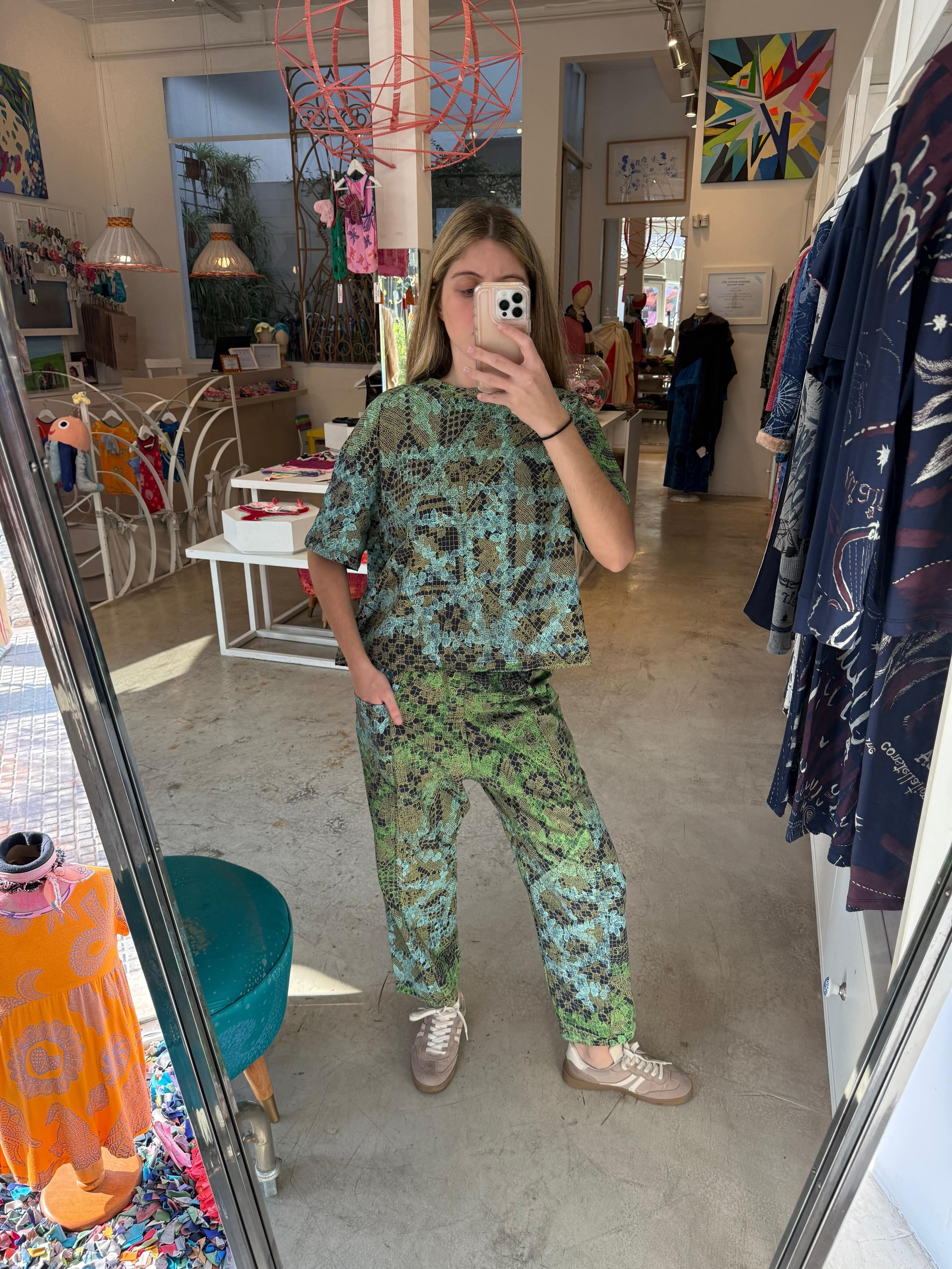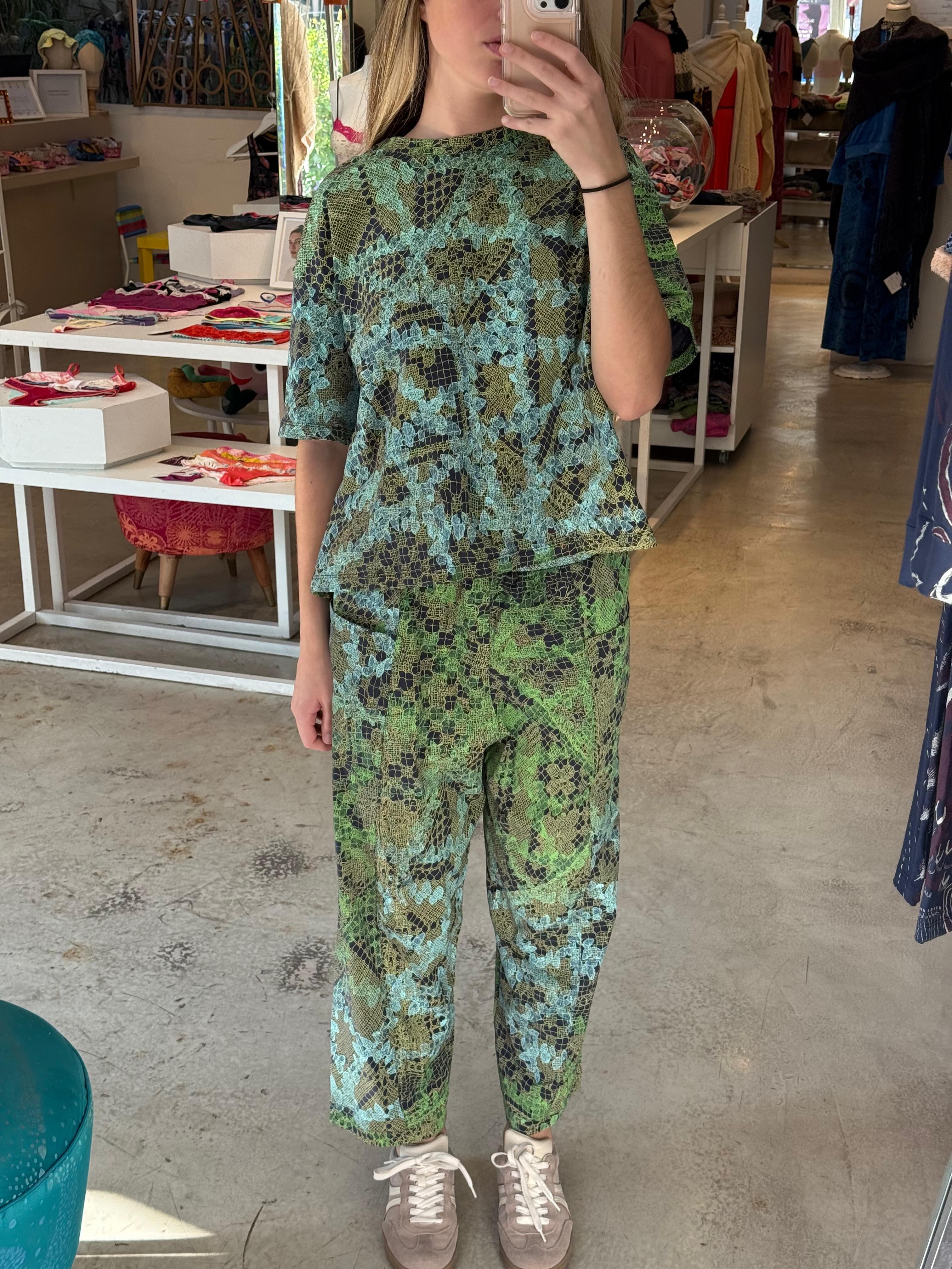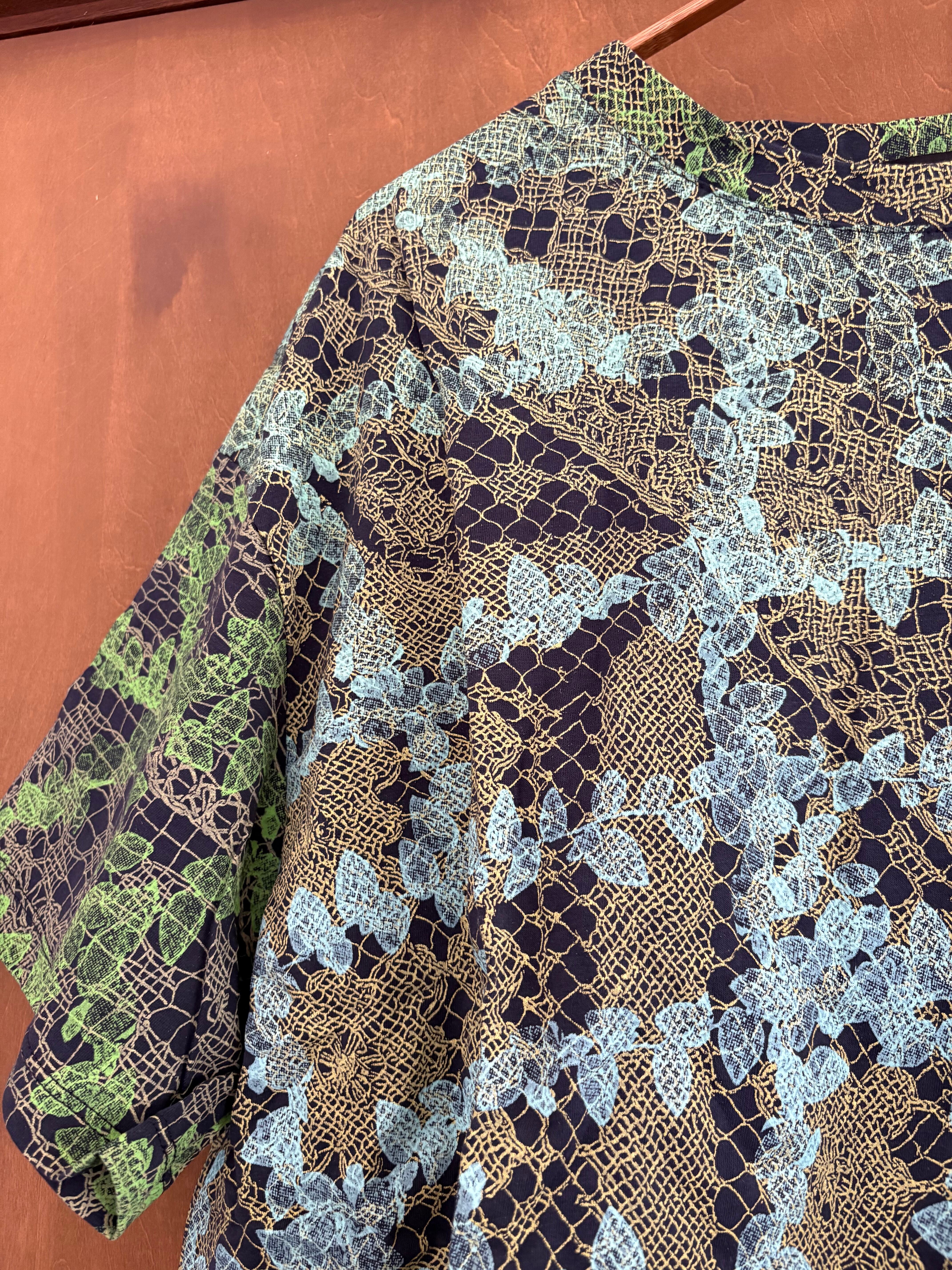 Pima cotton ゆったりTシャツ (ブラック/レースとツタ柄)