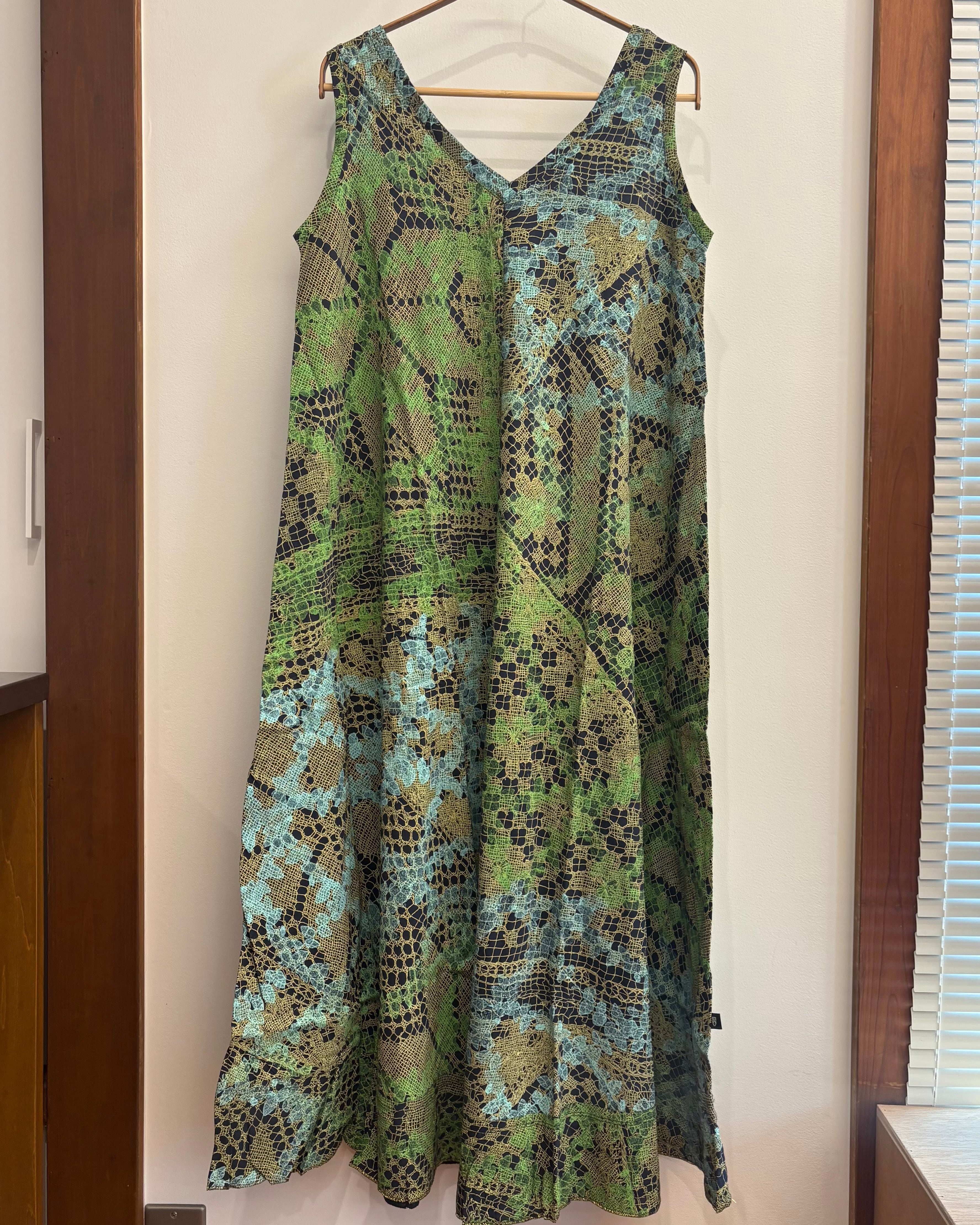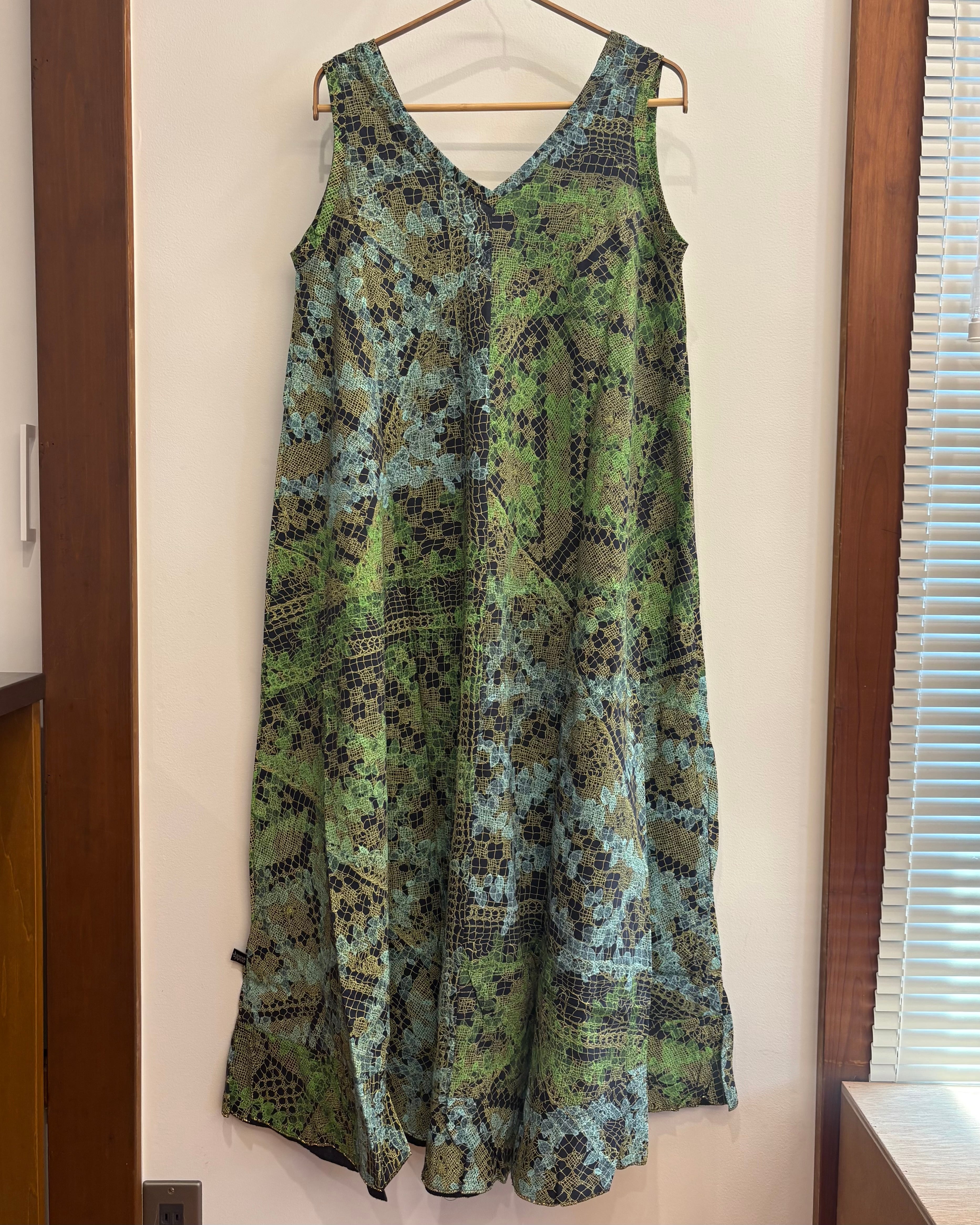 Pima cotton ノースリーブドレス (ブラック/レースとツタ柄)