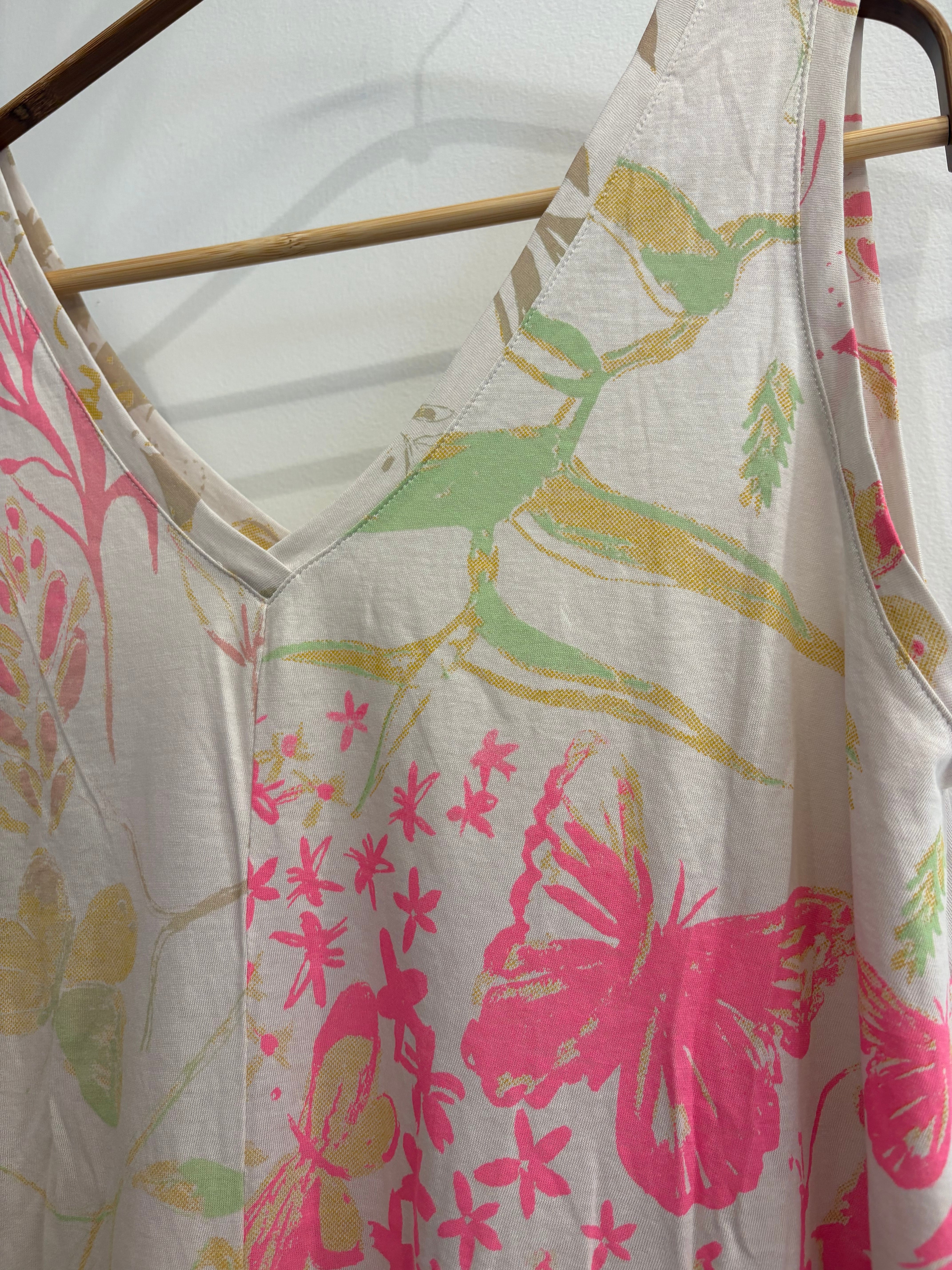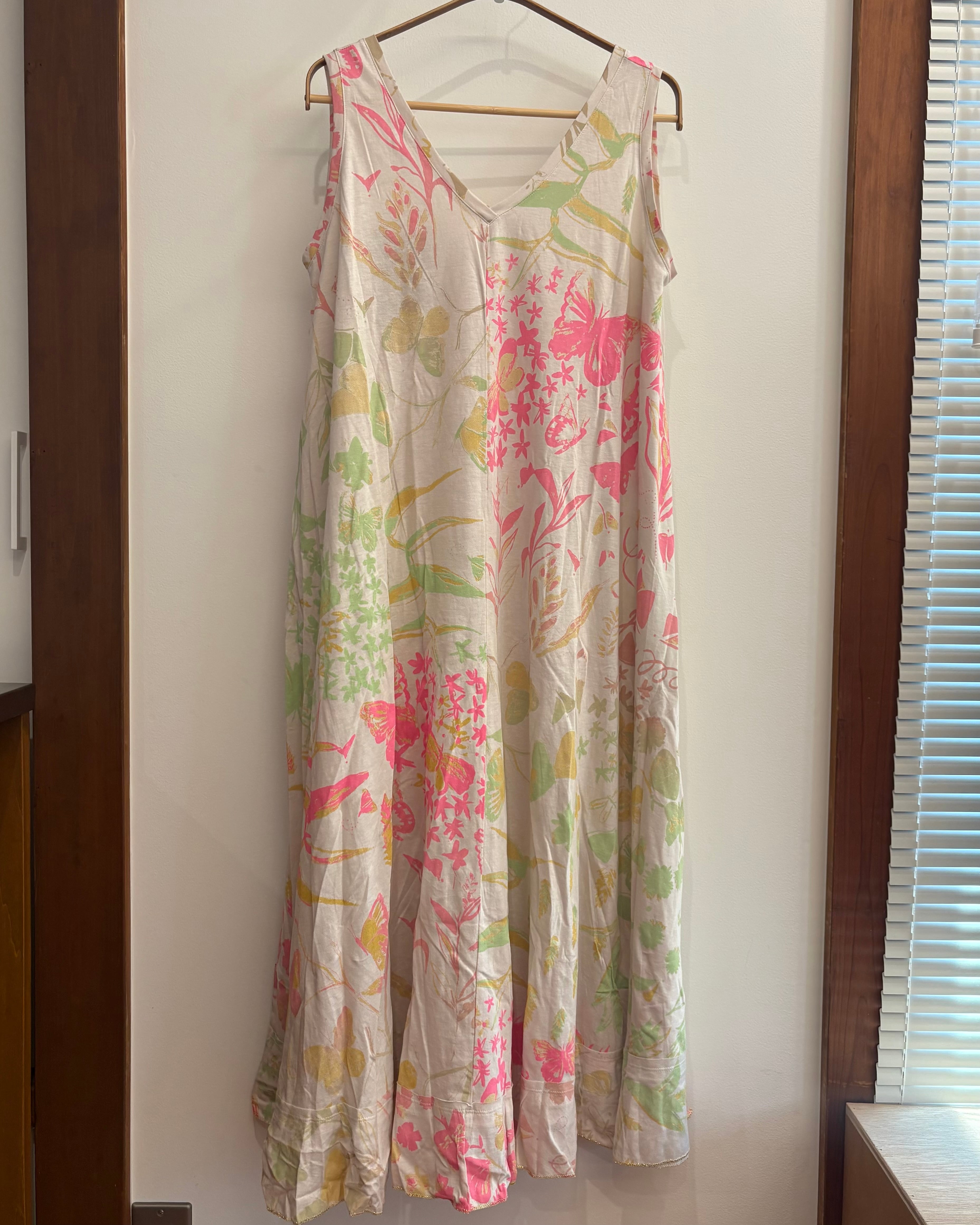 Pima cotton ノースリーブドレス (アイボリー/お花とちょうちょ柄)