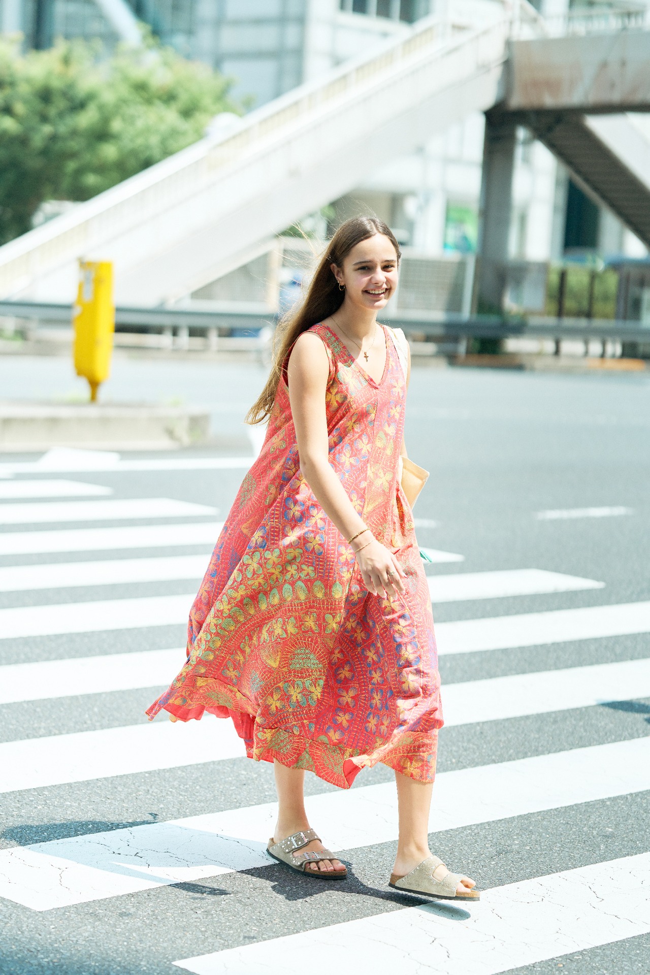 ゆったりとしたAラインシルエットで、風にふわりと揺れる軽やかな着心地が特長です。柔らかく肌馴染みのよいコットン素材は、暑い季節でも快適に過ごせます。