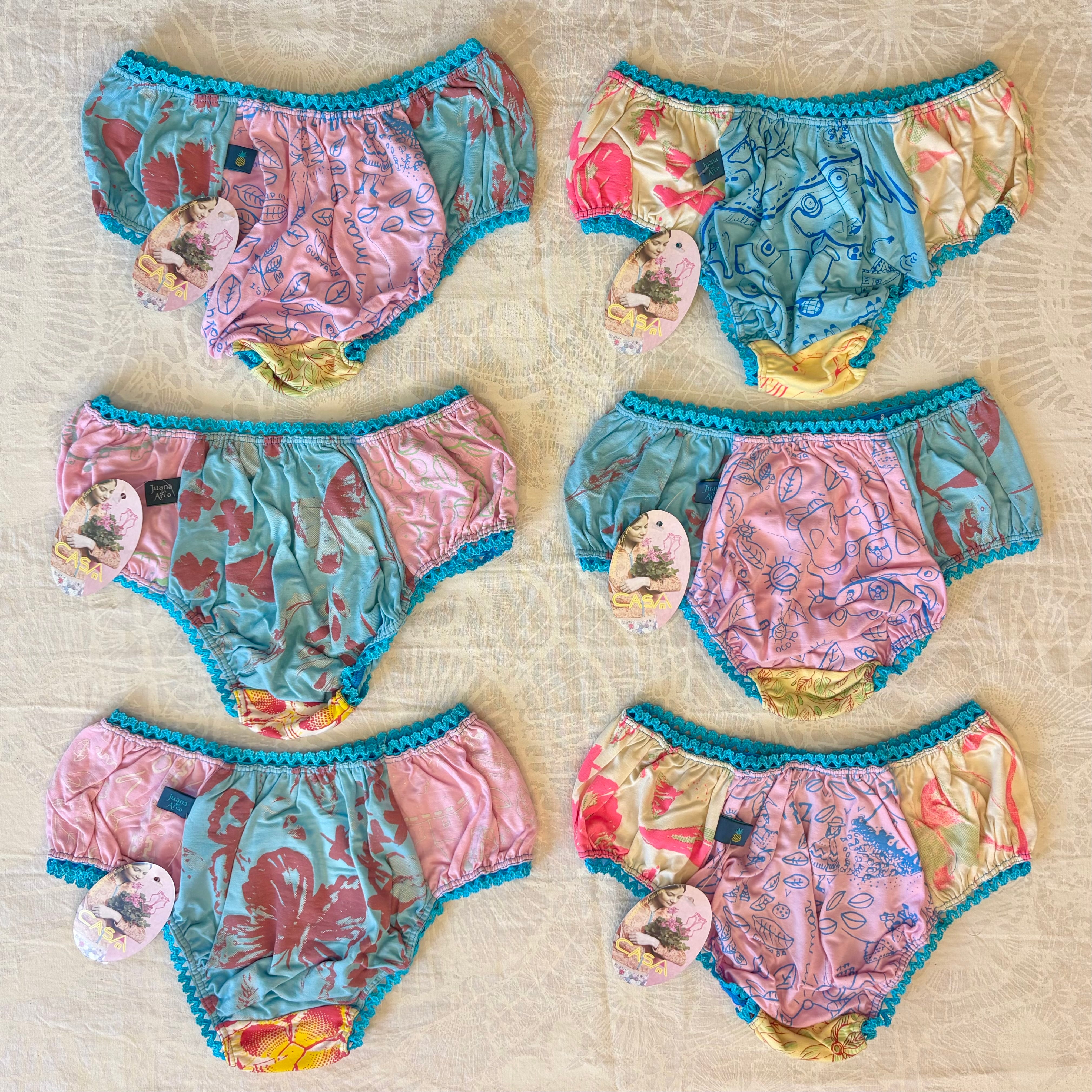 ギャザーの寄ったラブリーなデザインのショーツ。すっぽりお尻を覆う安心感のある履き心地とシルエットです。