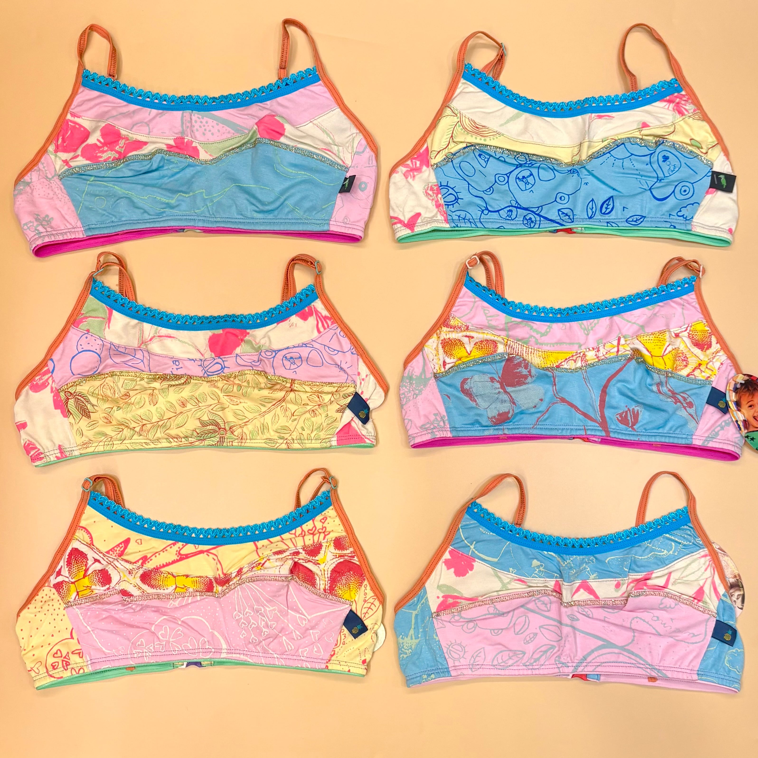立体的にパッチワークが組み合わされたデザインのブラ。 胸をやさしく包み込みます。 胸元の切り込みがないため着用時も安心感があります。※ブラパッドは別売りです。