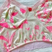 胸元と背中がレースになっているブラ。 縦幅がしっかりあり、背中のレースがフィットするため 大きめの胸の方にもおすすめ。※ブラパッドは別売りです。