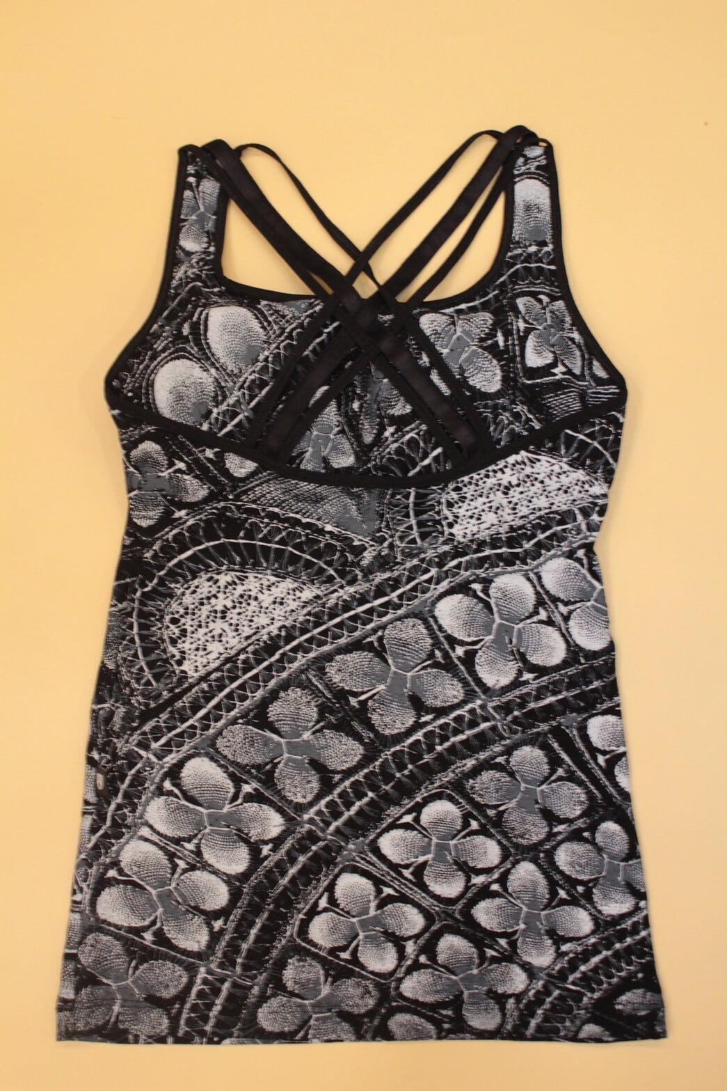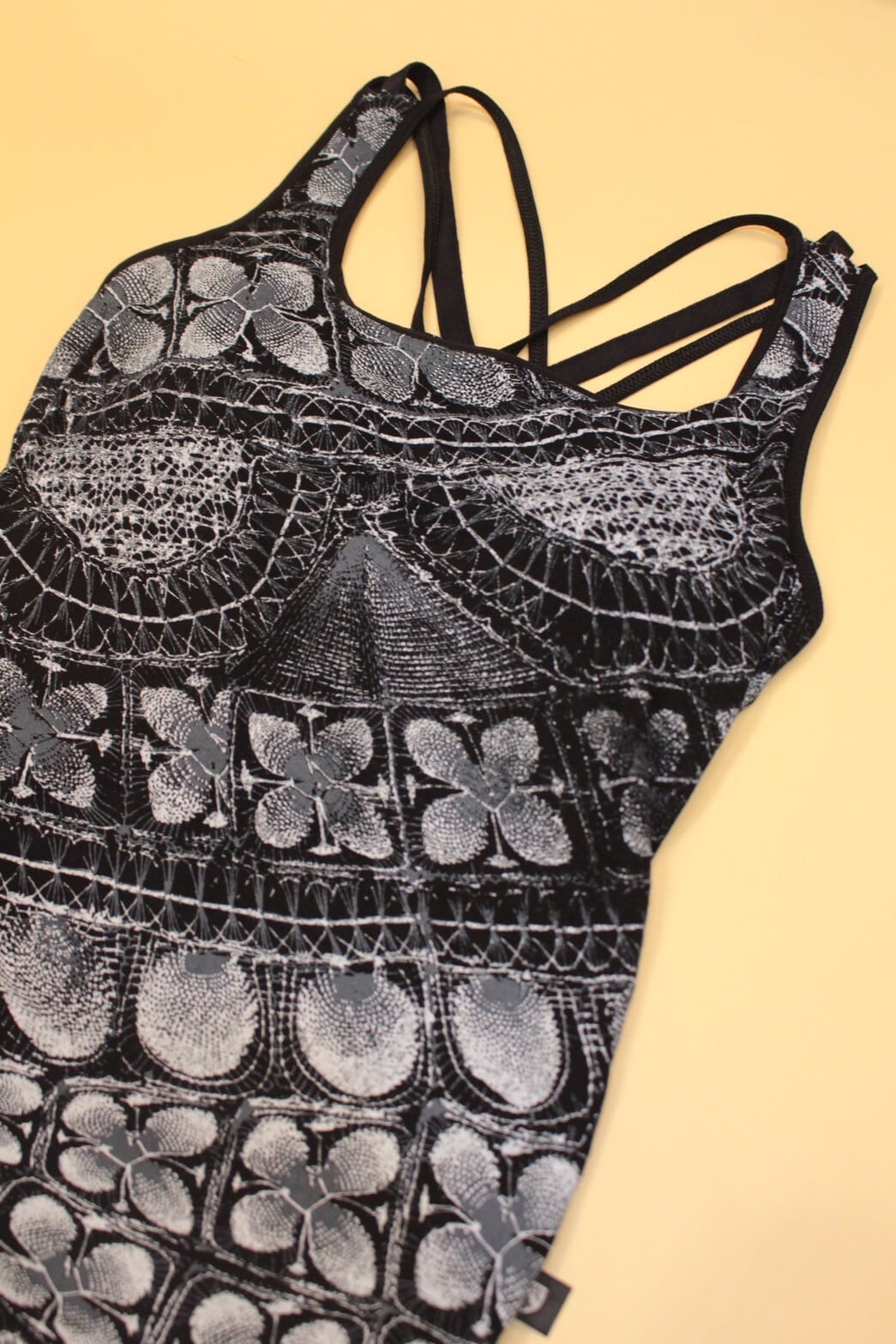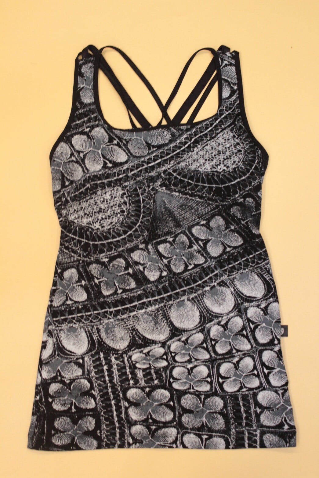 Mi negra バッククロスタンクトップ(ブラック/ニャンドゥティ柄)