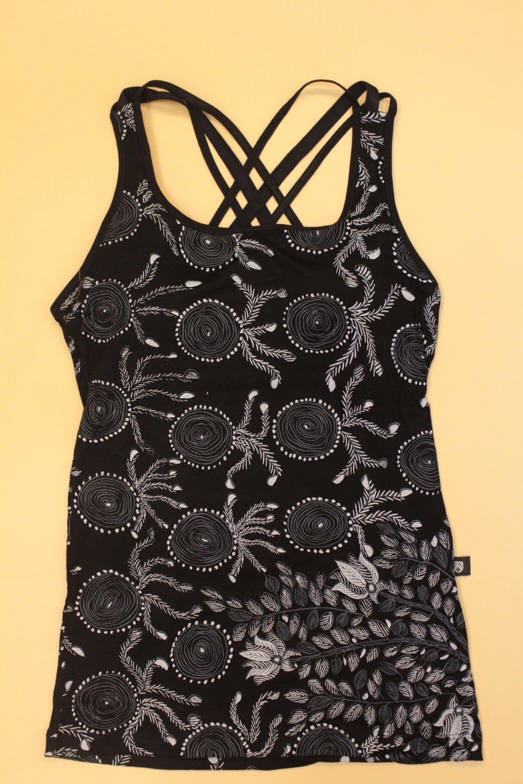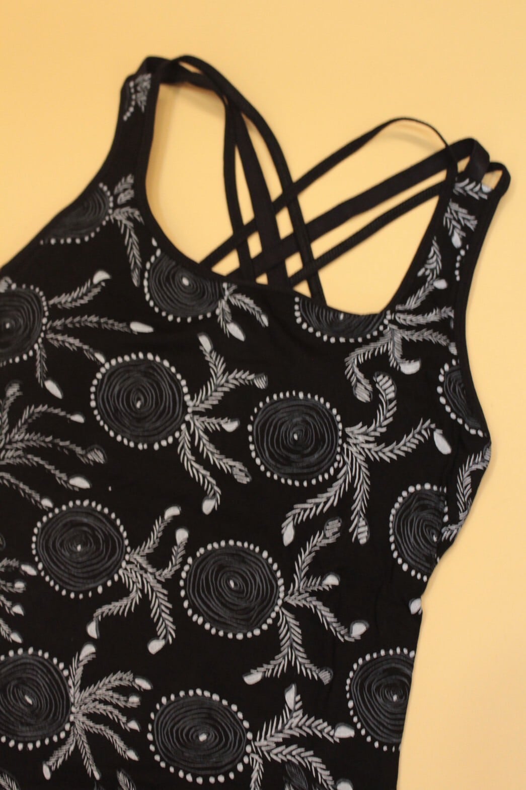 Mi negra バッククロスタンクトップ(ブラック/インドの小花柄)