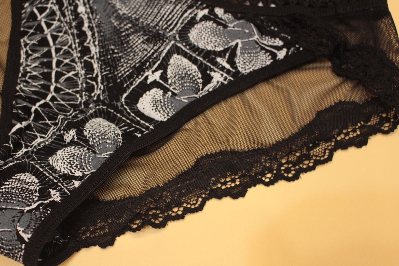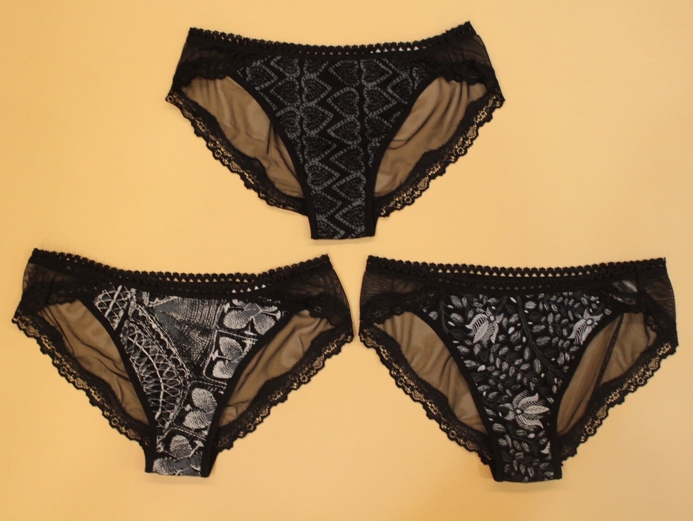 Mi negra バックチュールショーツ(ブラック/ならんだハート柄、ニャンドゥティ柄、インドの小花柄)