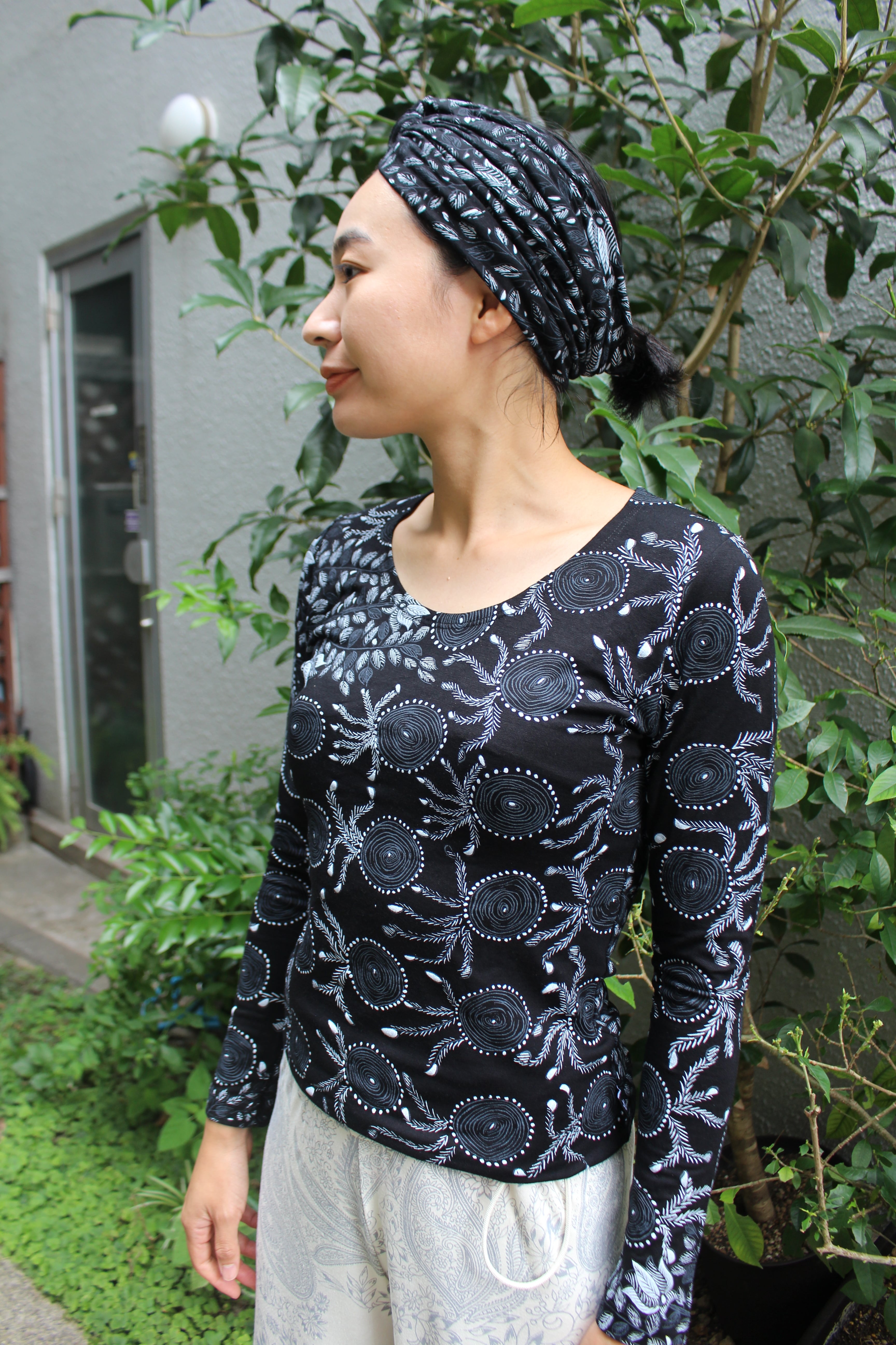 Mi negra ヘアターバン(ブラック/ならんだハート柄、ニャンドゥティ柄、インドの小花柄)