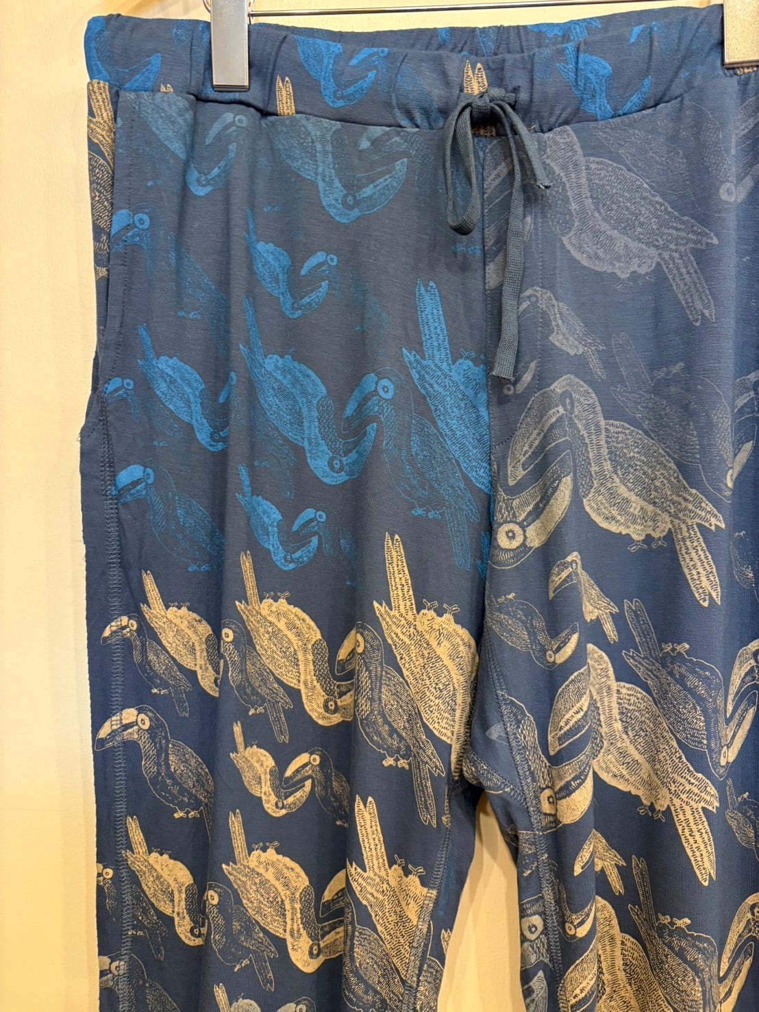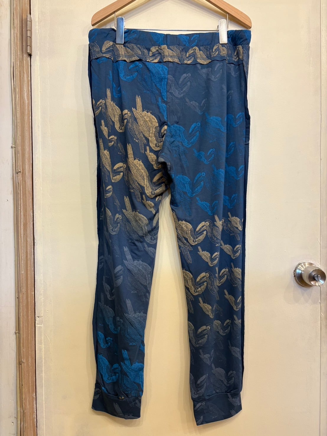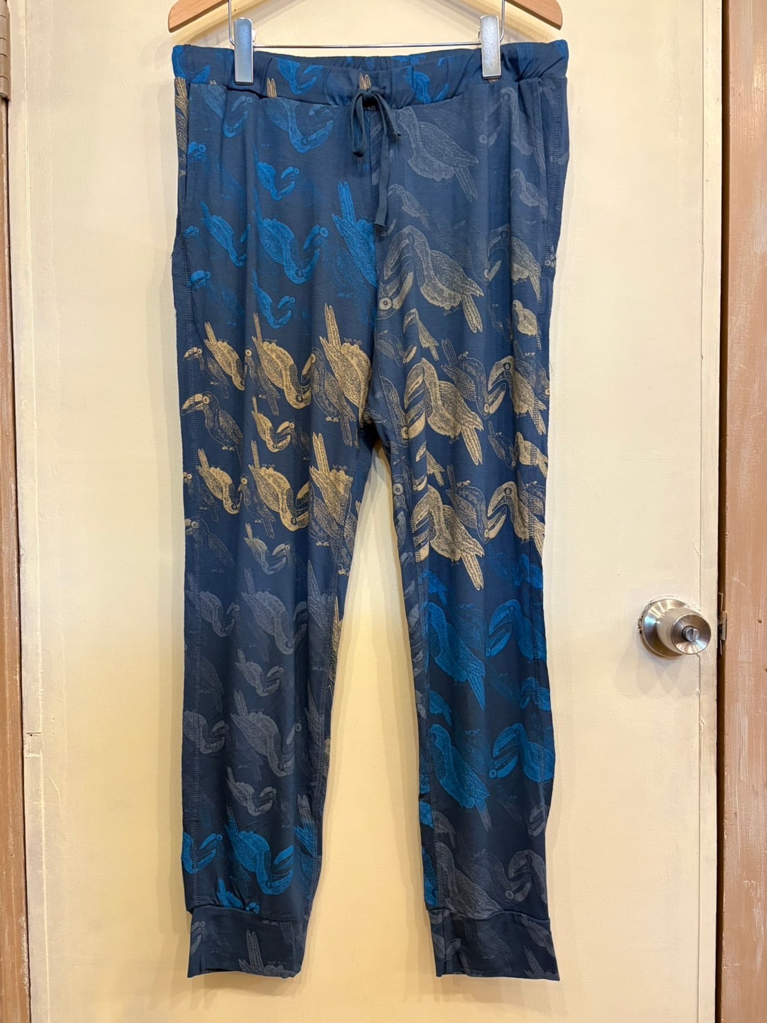 メンズジョギングパンツ Lサイズ (ブルーグレー/ペリカン柄)