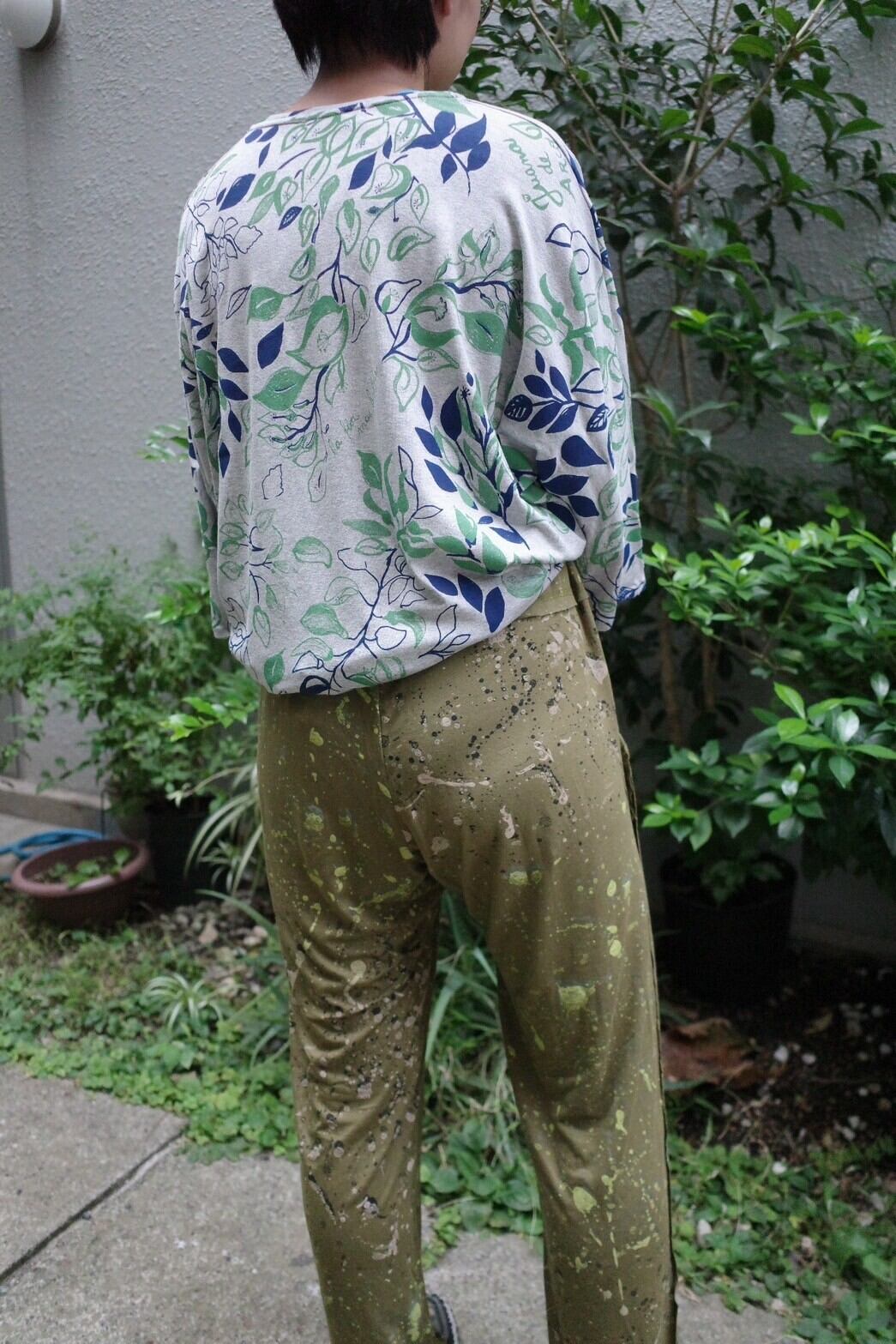 メンズジョギングパンツ Lサイズ (ブルーグレー/葉脈柄)