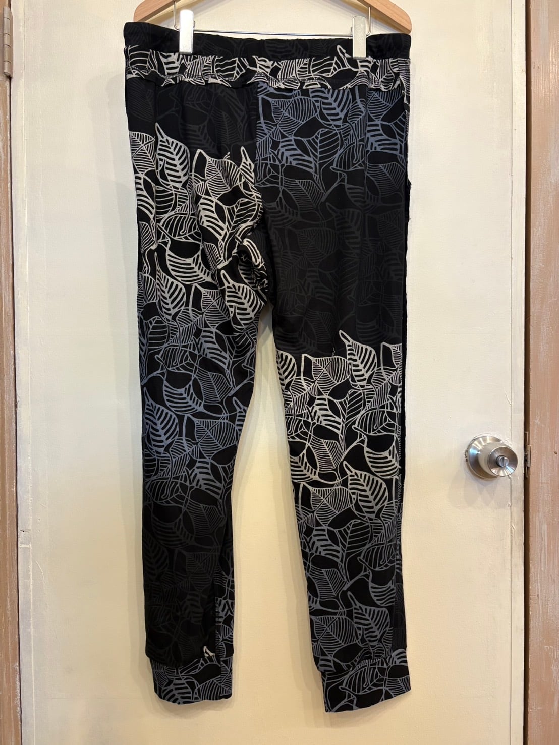 メンズジョギングパンツ Lサイズ (ブラック/葉脈柄)