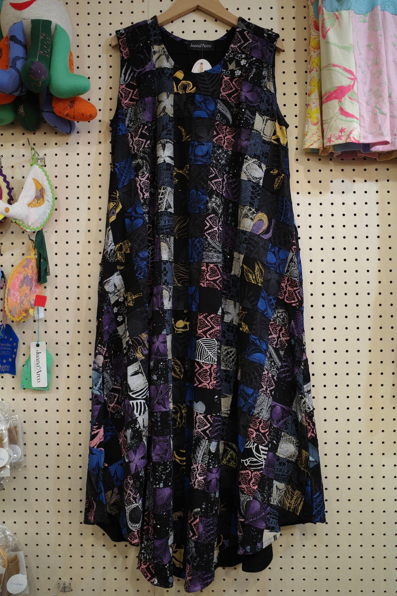 襟ぐりはつまっていて、裾はビルヘンワンピースのように真ん中が長いデザイン。