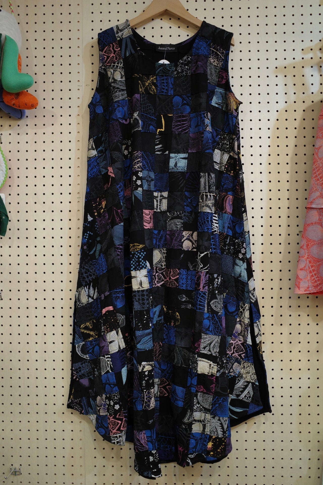 襟ぐりはつまっていて、裾はビルヘンワンピースのように真ん中が長いデザイン。