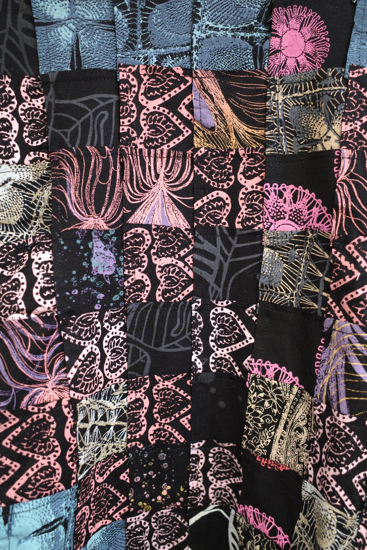 とーっても久しぶりに入荷したFELIZは職人さん気合いの約5㎝四方のハギレをつないだ細かめパッチワーク!