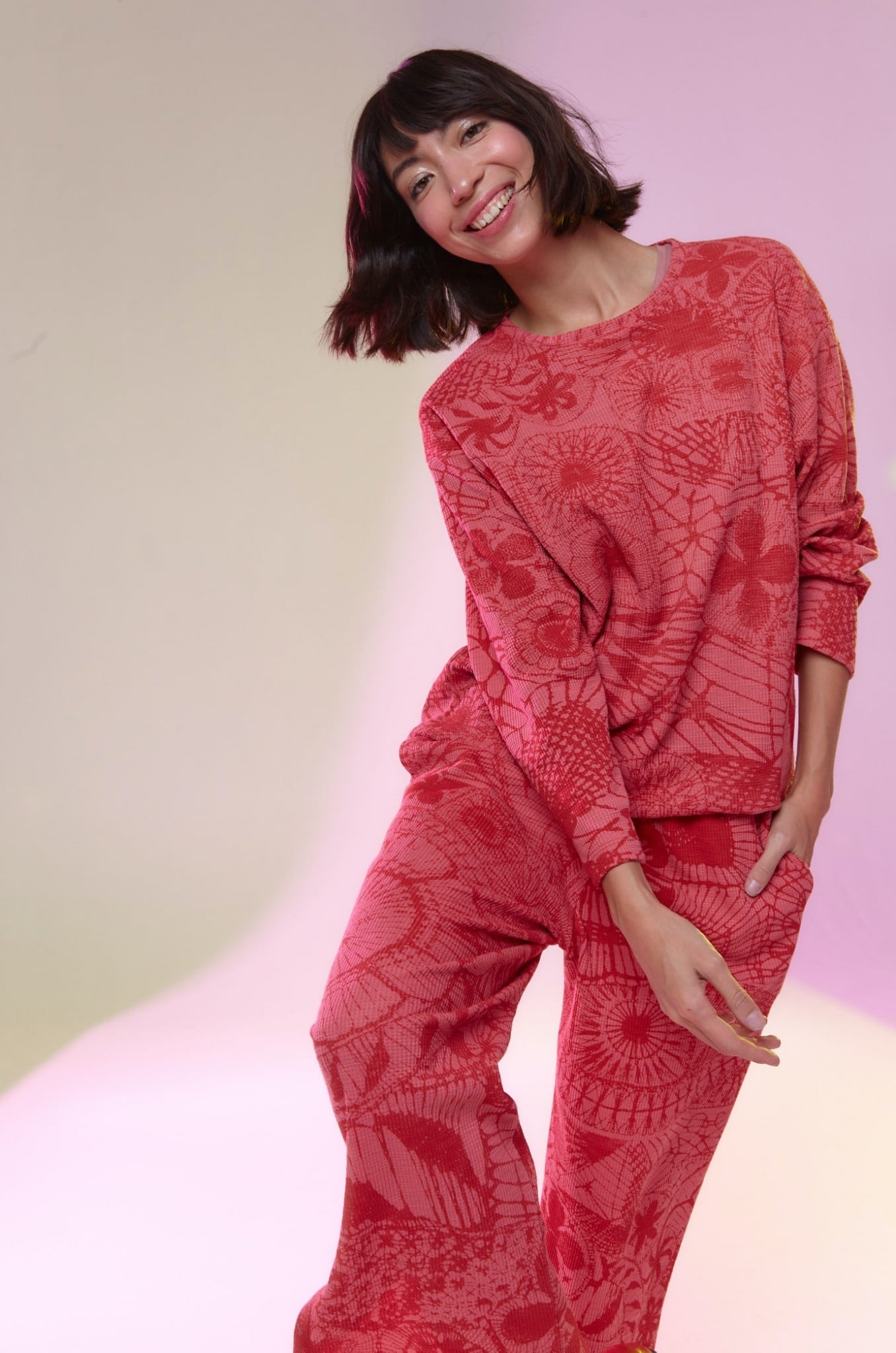VIAJE LS T-SHIRT Mサイズ(ピンク・ニャンドゥティ柄)
