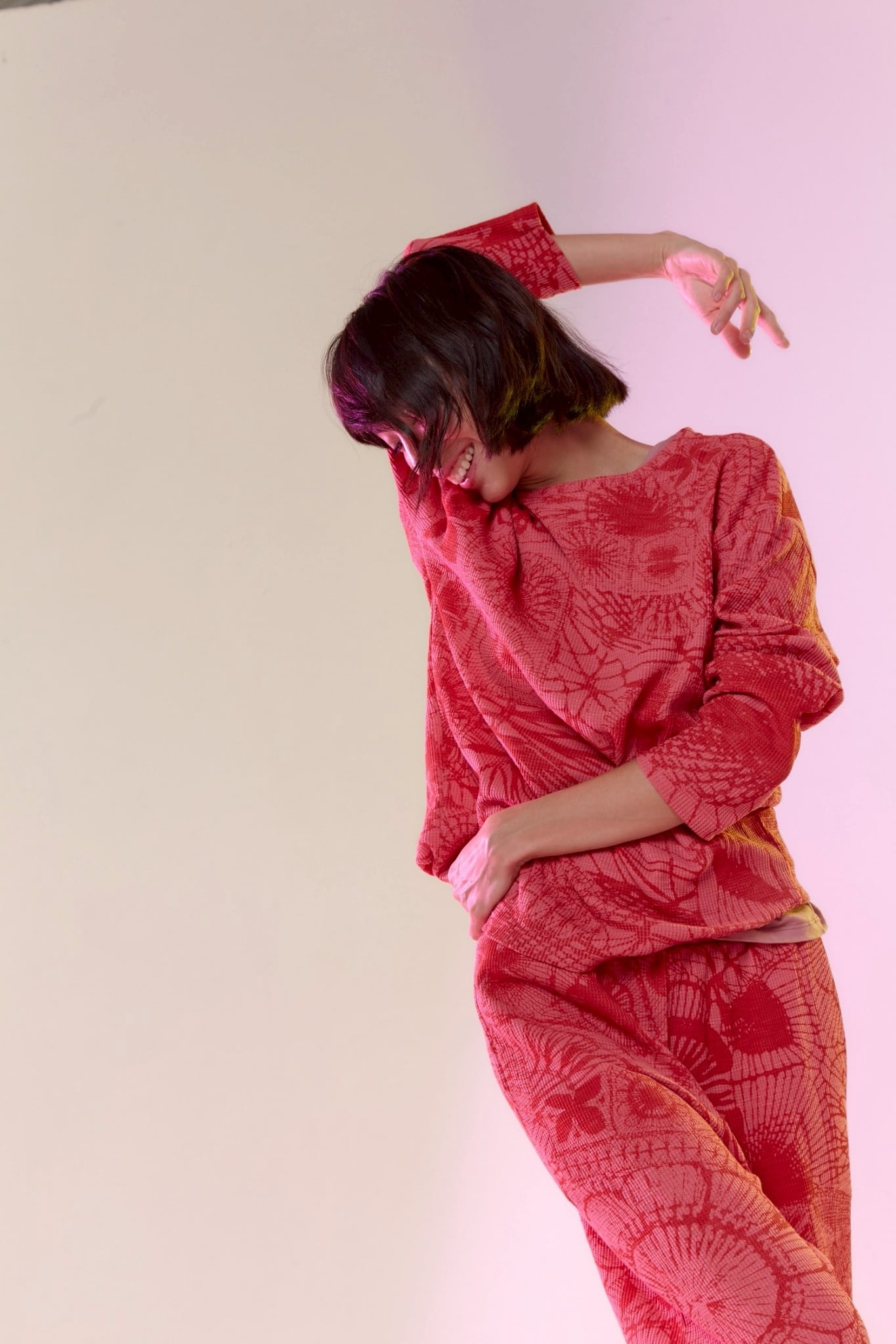 凸凹の柔らかな素材はかわいいだけでなく、生地と体の間に空気の層を作り出し、体温を逃がさない効果があります。一方で通気性にも優れているので、秋冬はもちろん、春夏も快適に使うことができます。