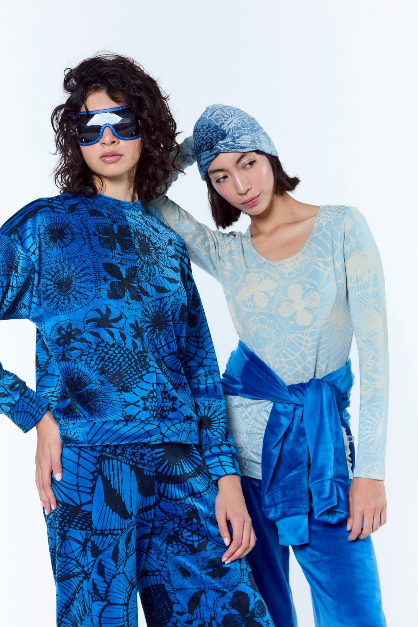 ★SUAVE JOGGING SUIT Sサイズ(ブルー/つづきニャンドゥティ柄)
