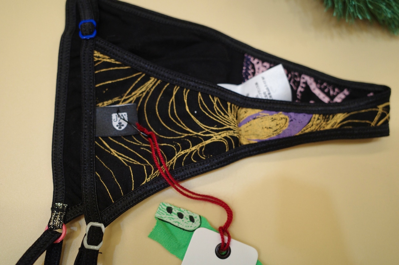 バックスタイルがタンガの人気のブラジリアンショーツ。 前後で異なる生地を使用した贈り物にもオススメの1枚。 サイドのアジャスターで大きさを調整できます。鼠蹊部のしめつけもなくリラックスしたはき心地!