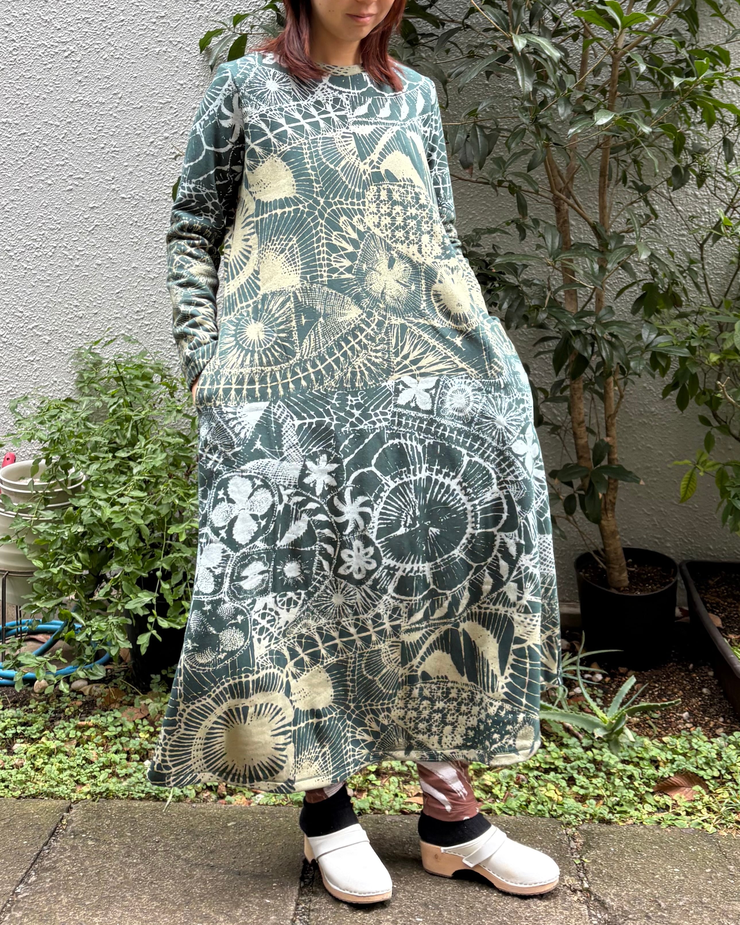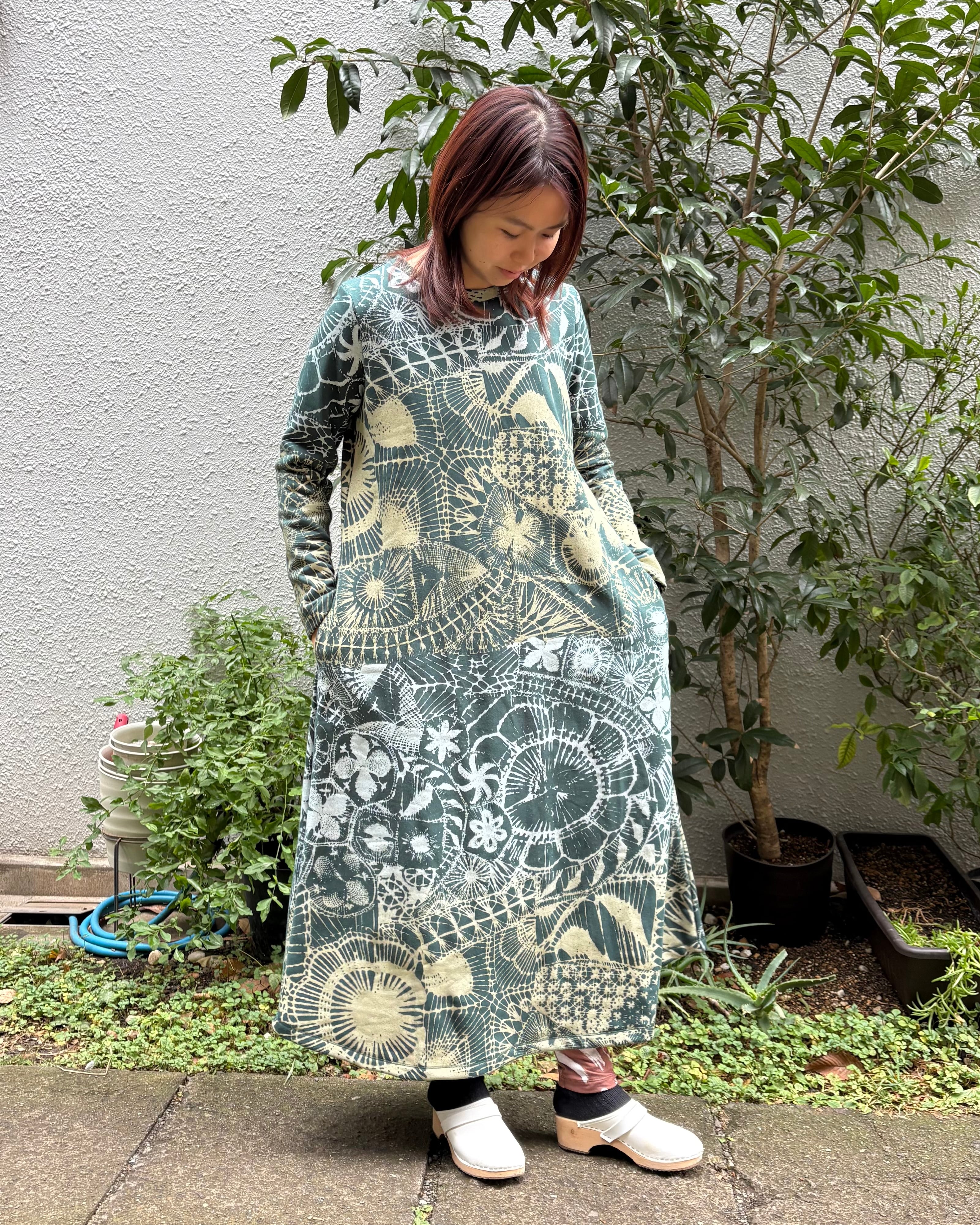 Viaje 長袖ワンピース(グリーン/ニャンドゥティ柄)