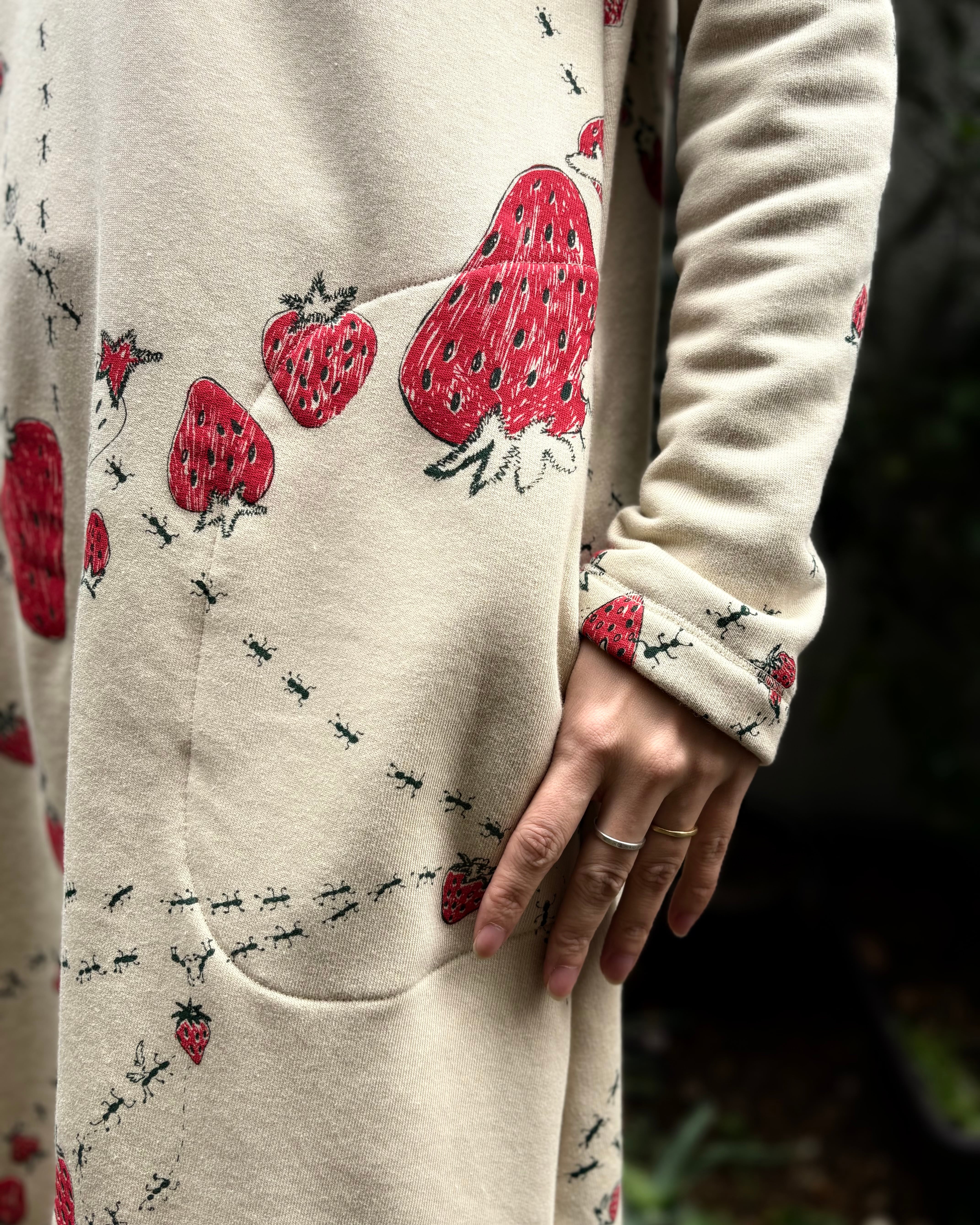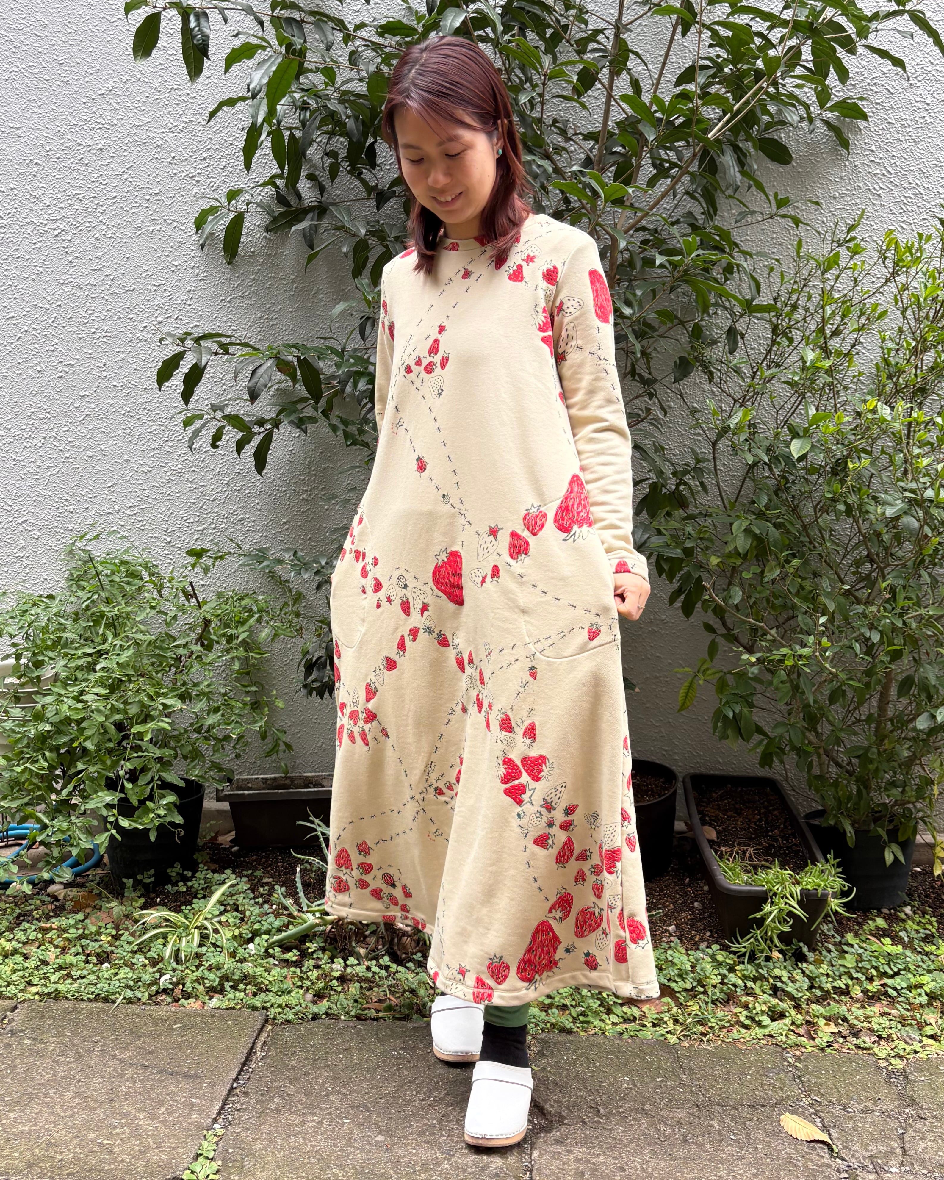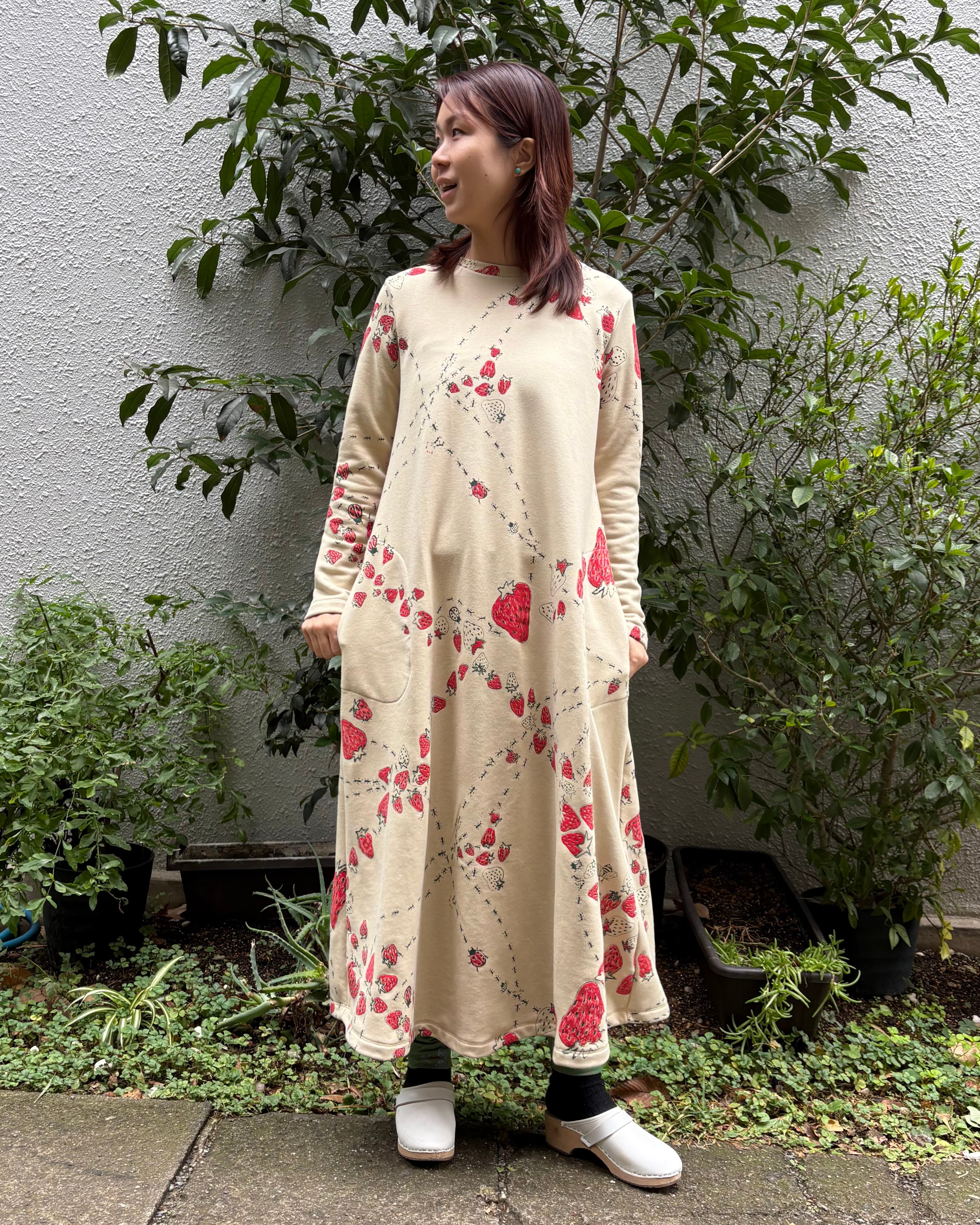 Viaje 長袖ワンピース(ベージュ/いちごとあり柄)