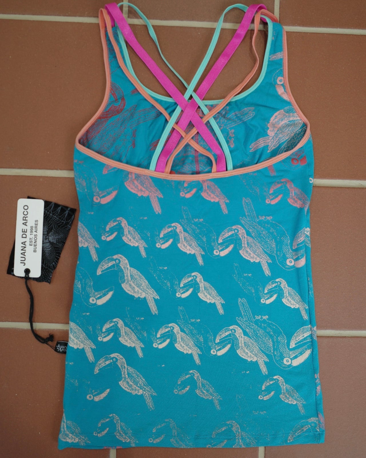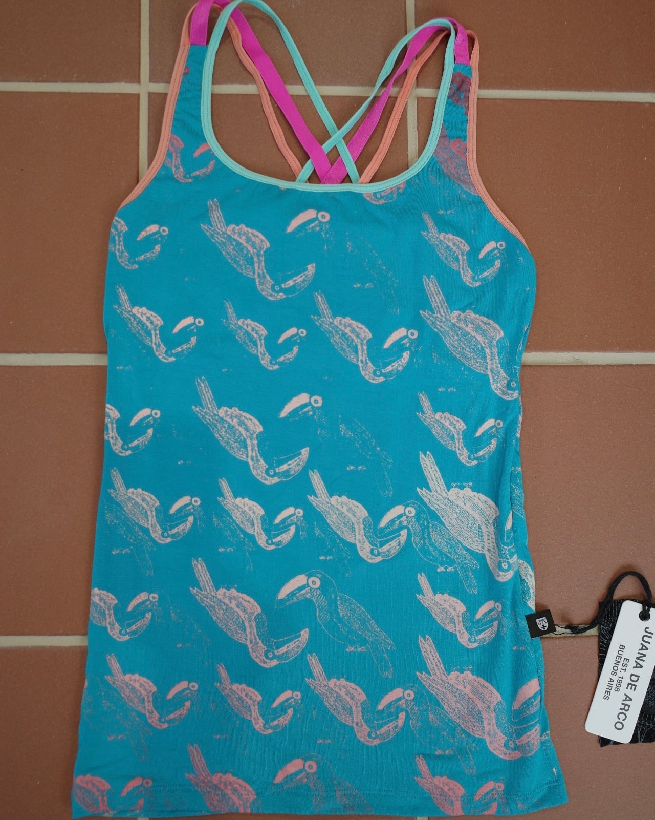 バッククロスタンクトップ(ターコイズブルー/トゥカン柄)