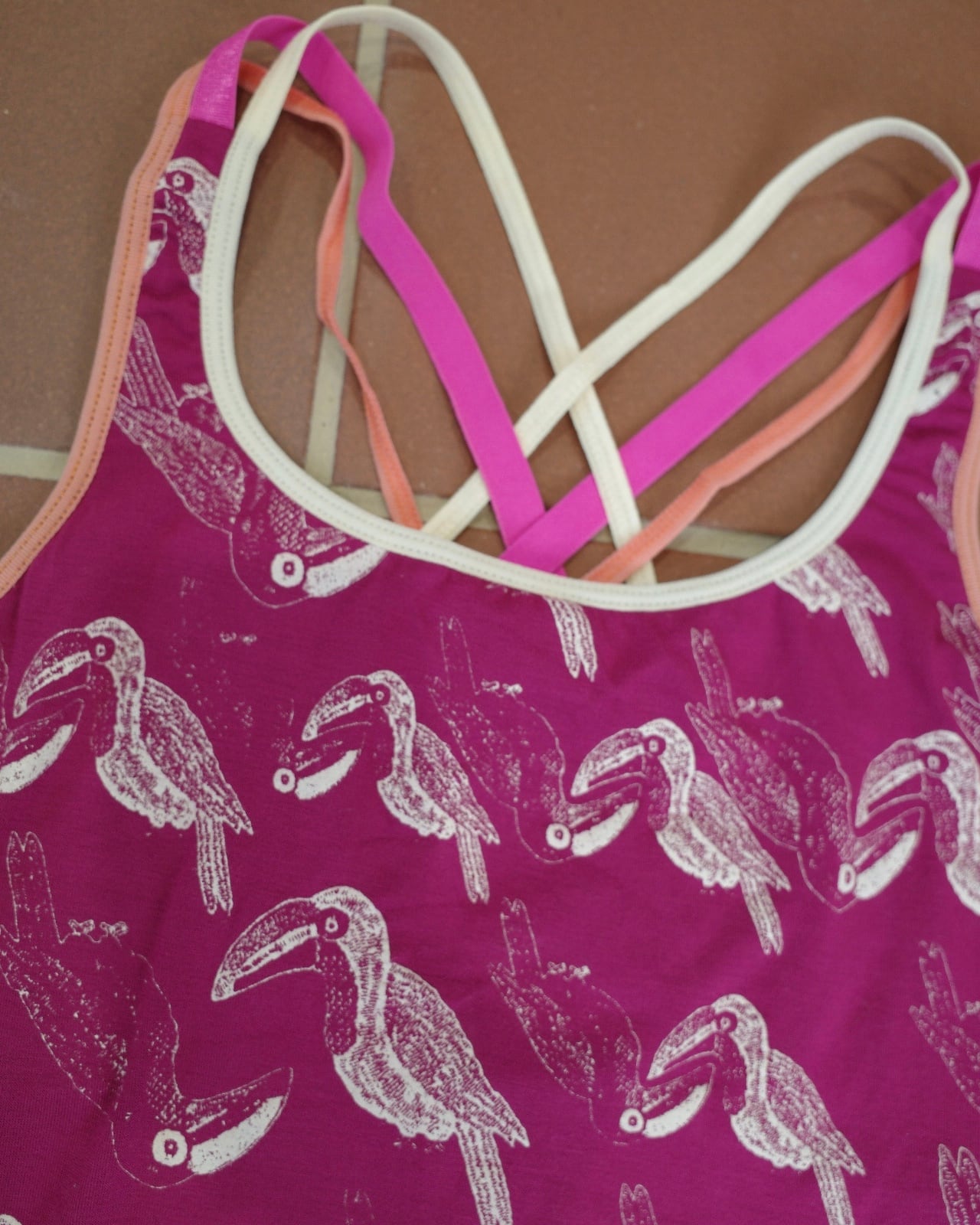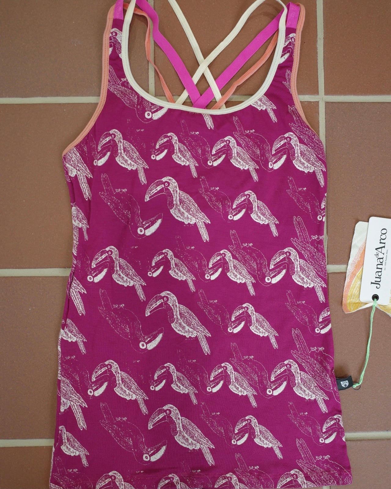 バッククロスタンクトップ(パープル/トゥカン柄)