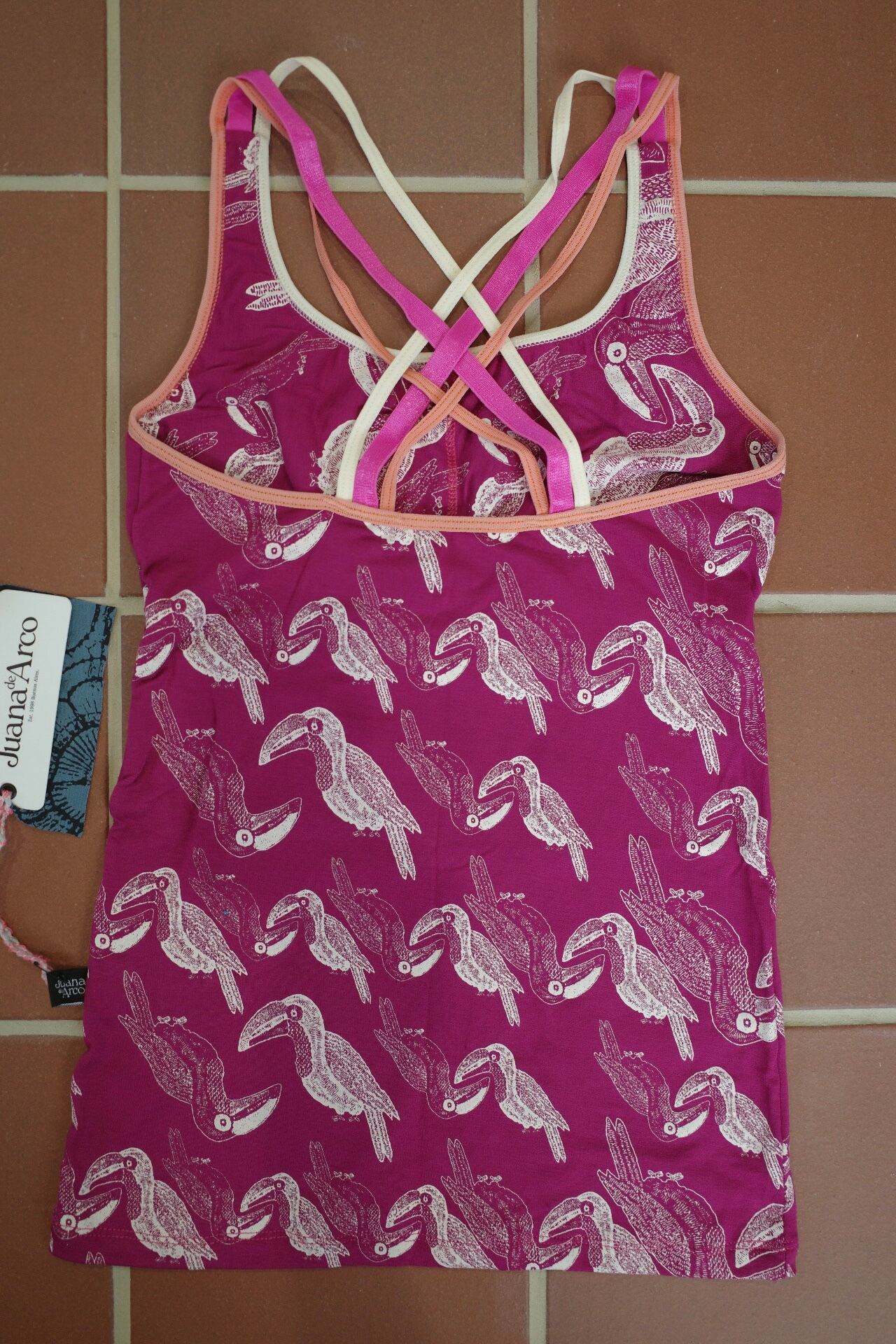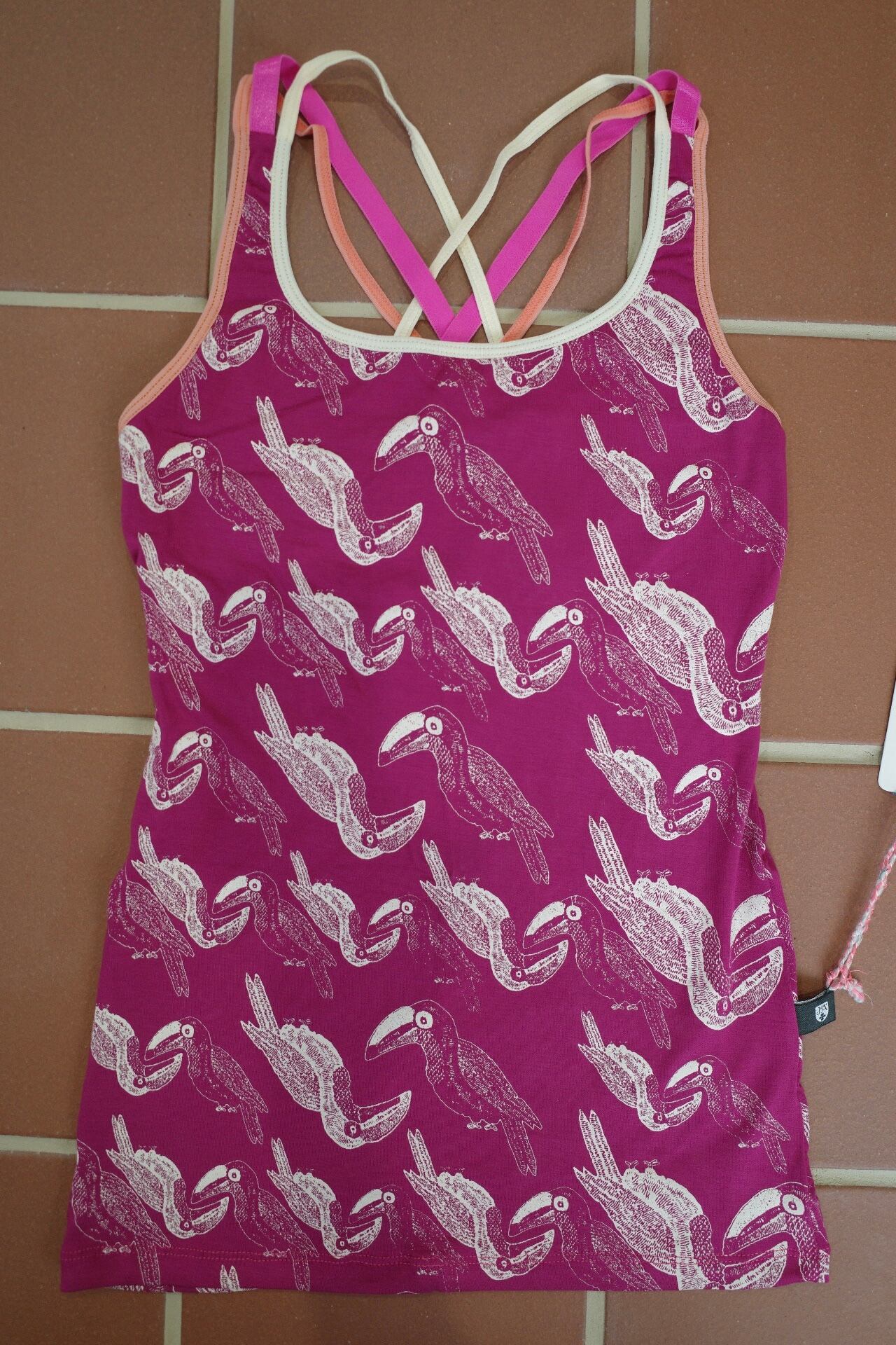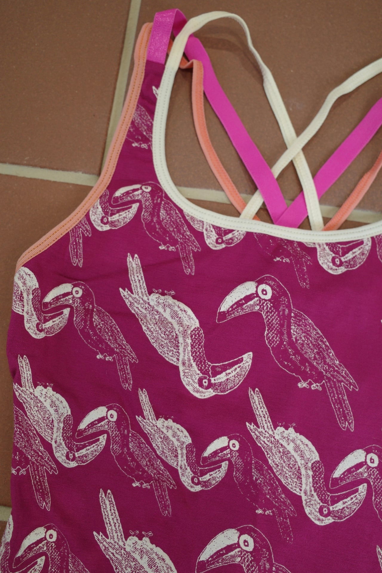 バッククロスタンクトップ(パープル/トゥカン柄)