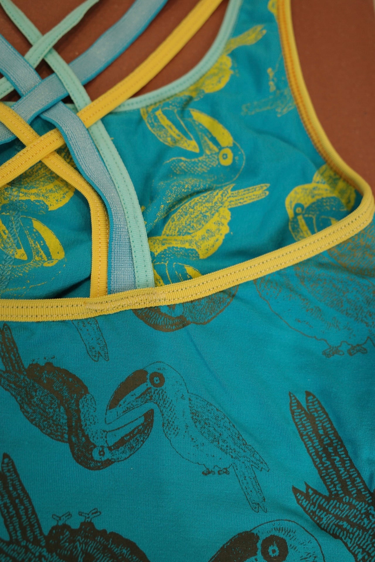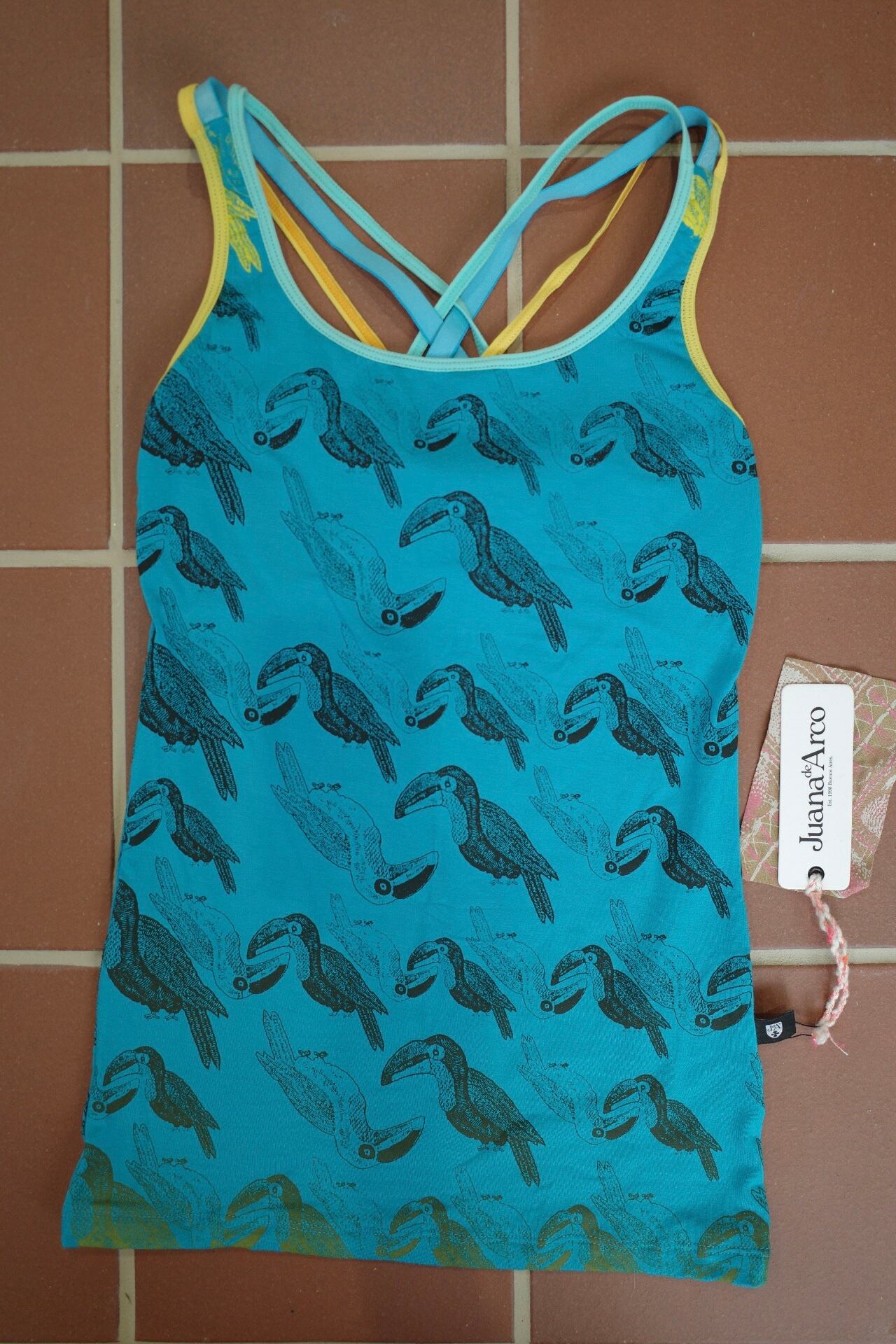 バッククロスタンクトップ(ターコイズブルー/トゥカン柄)