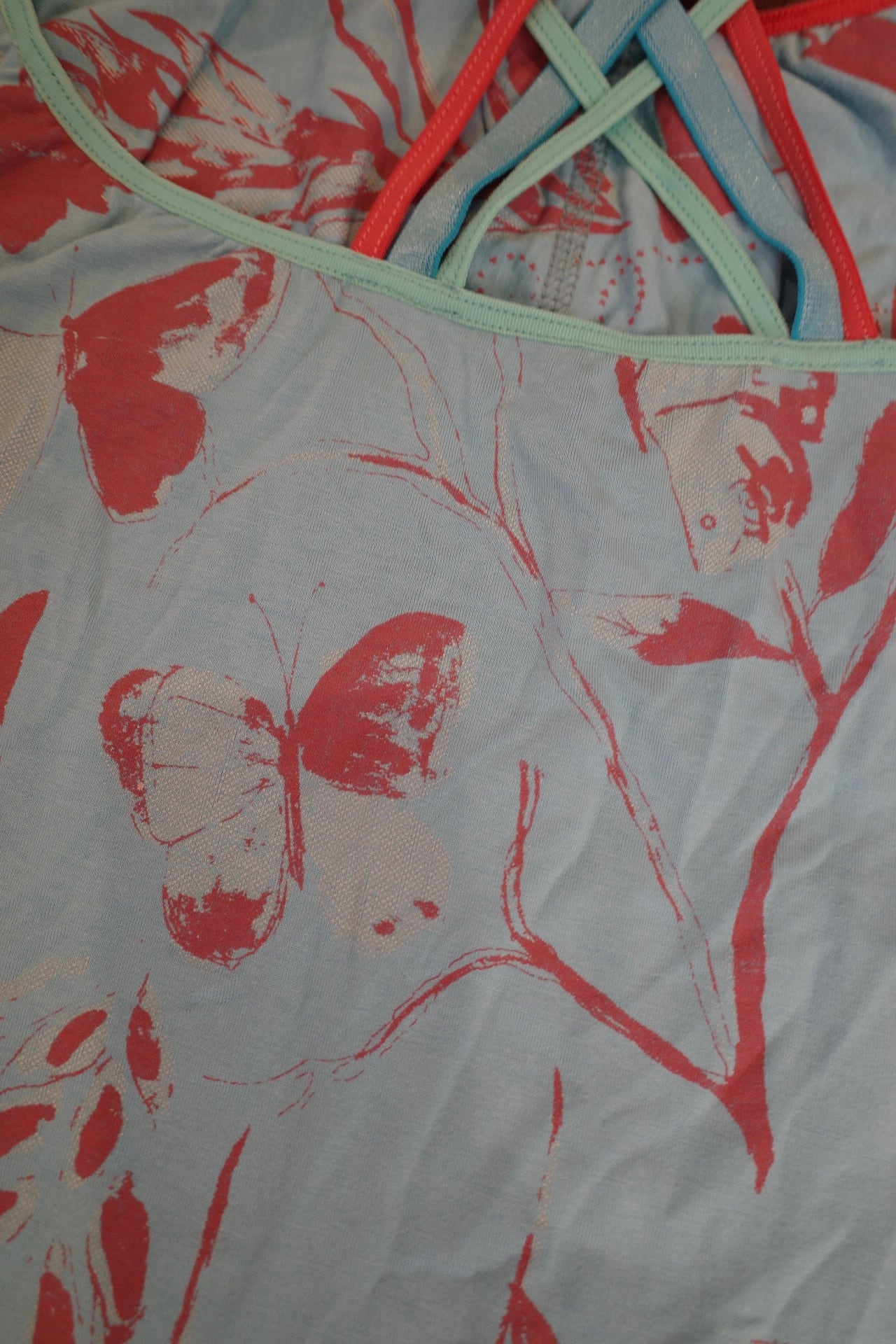 バッククロスタンクトップ(ライトブルー/お花とちょうちょ柄)