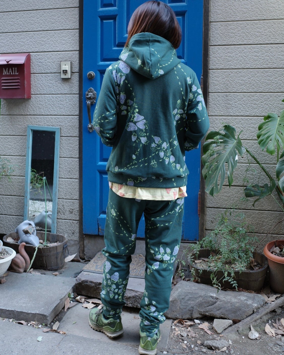 Viaje パーカー(モスグリーン/いちごとあり柄)