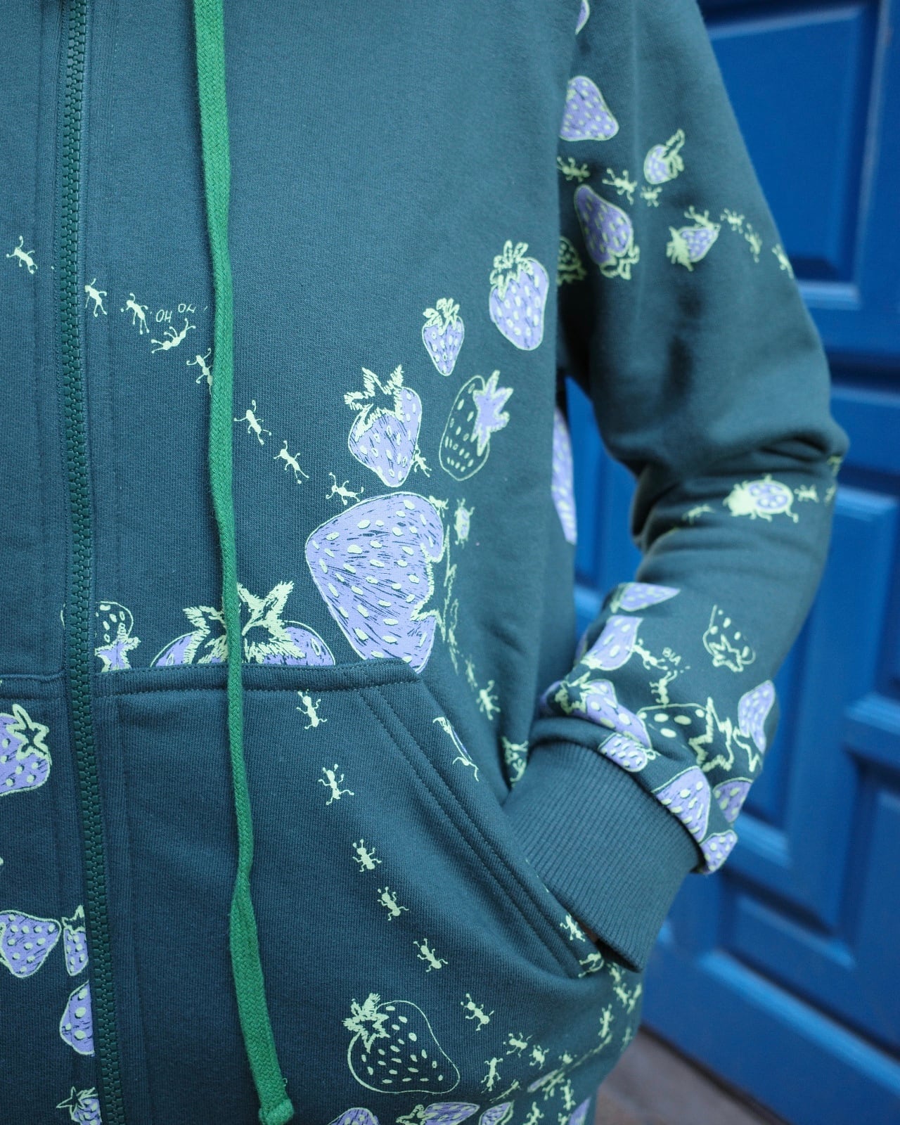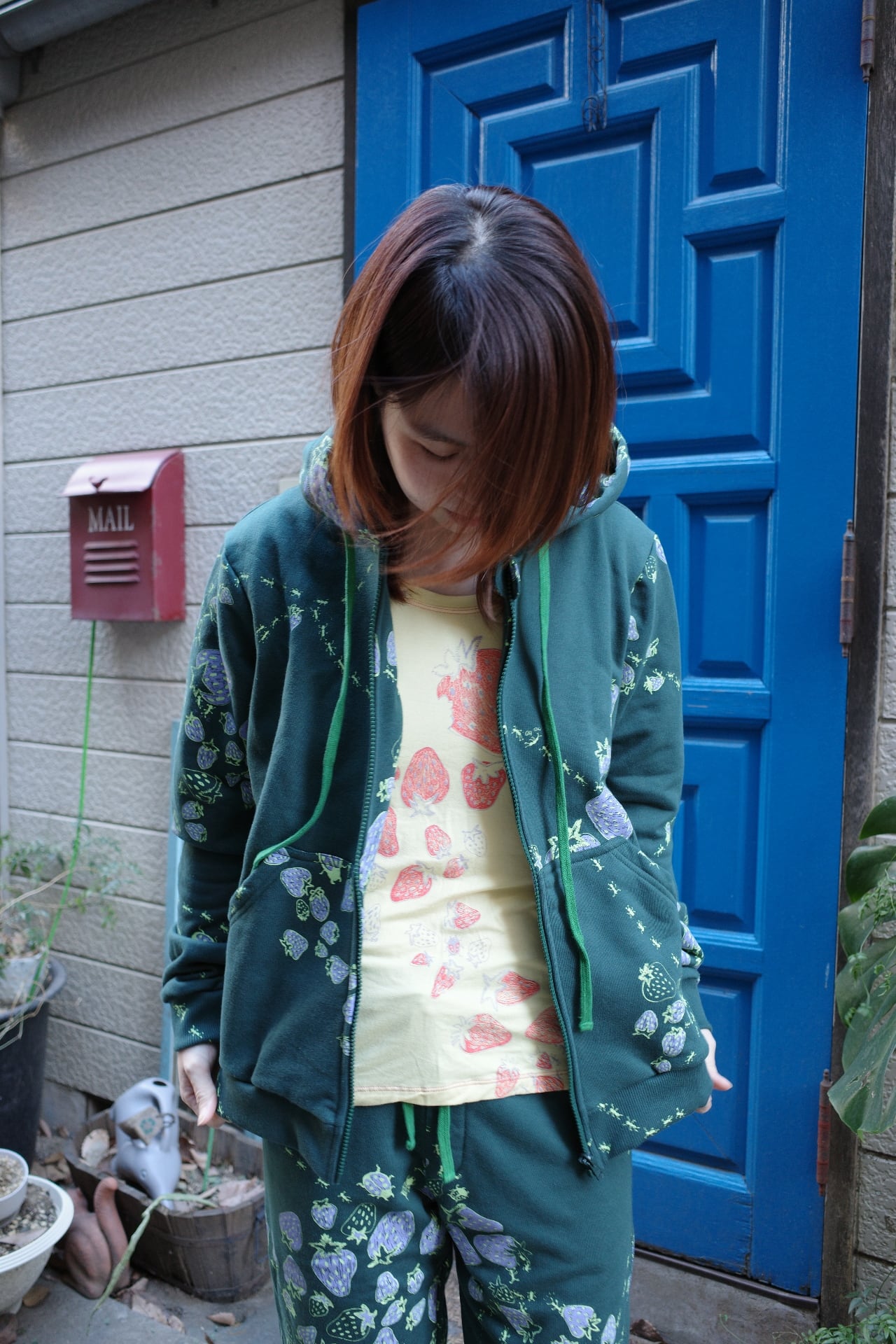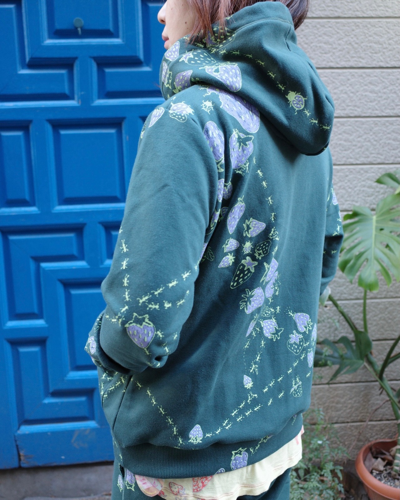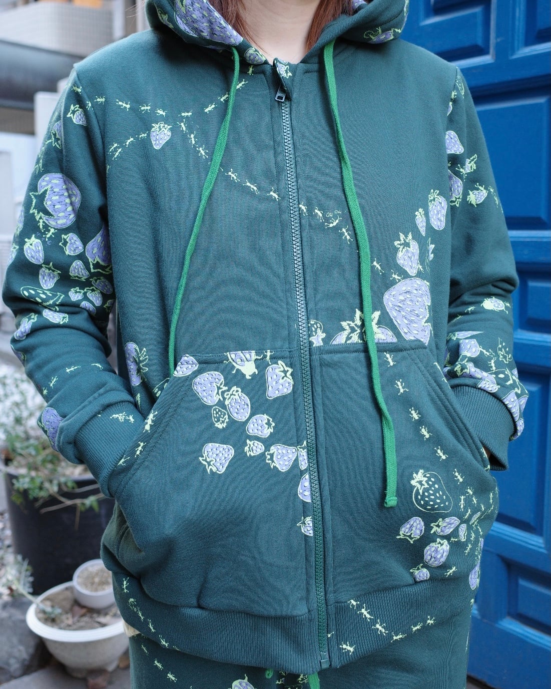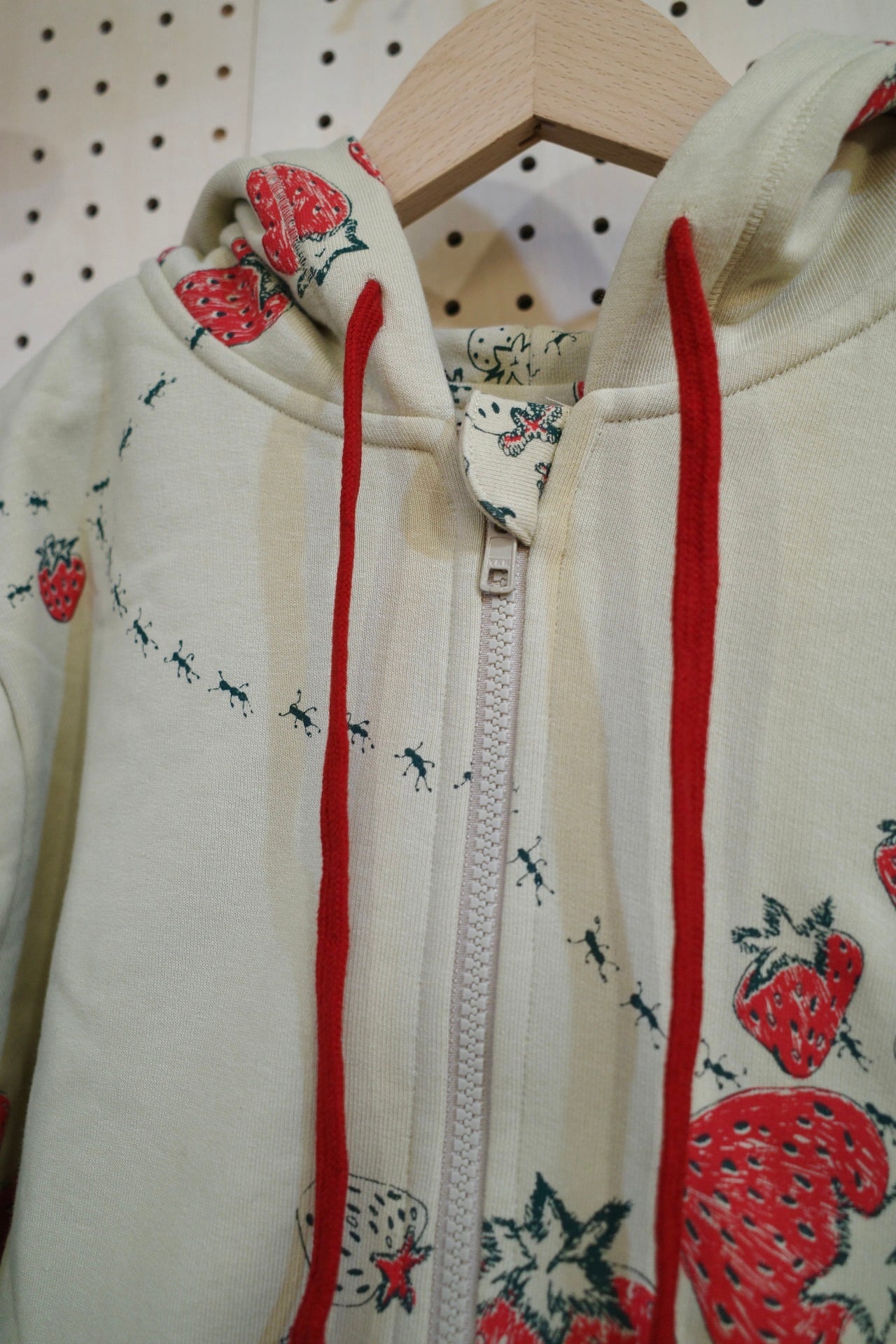 Viaje パーカー(ベージュ/いちごとあり柄)