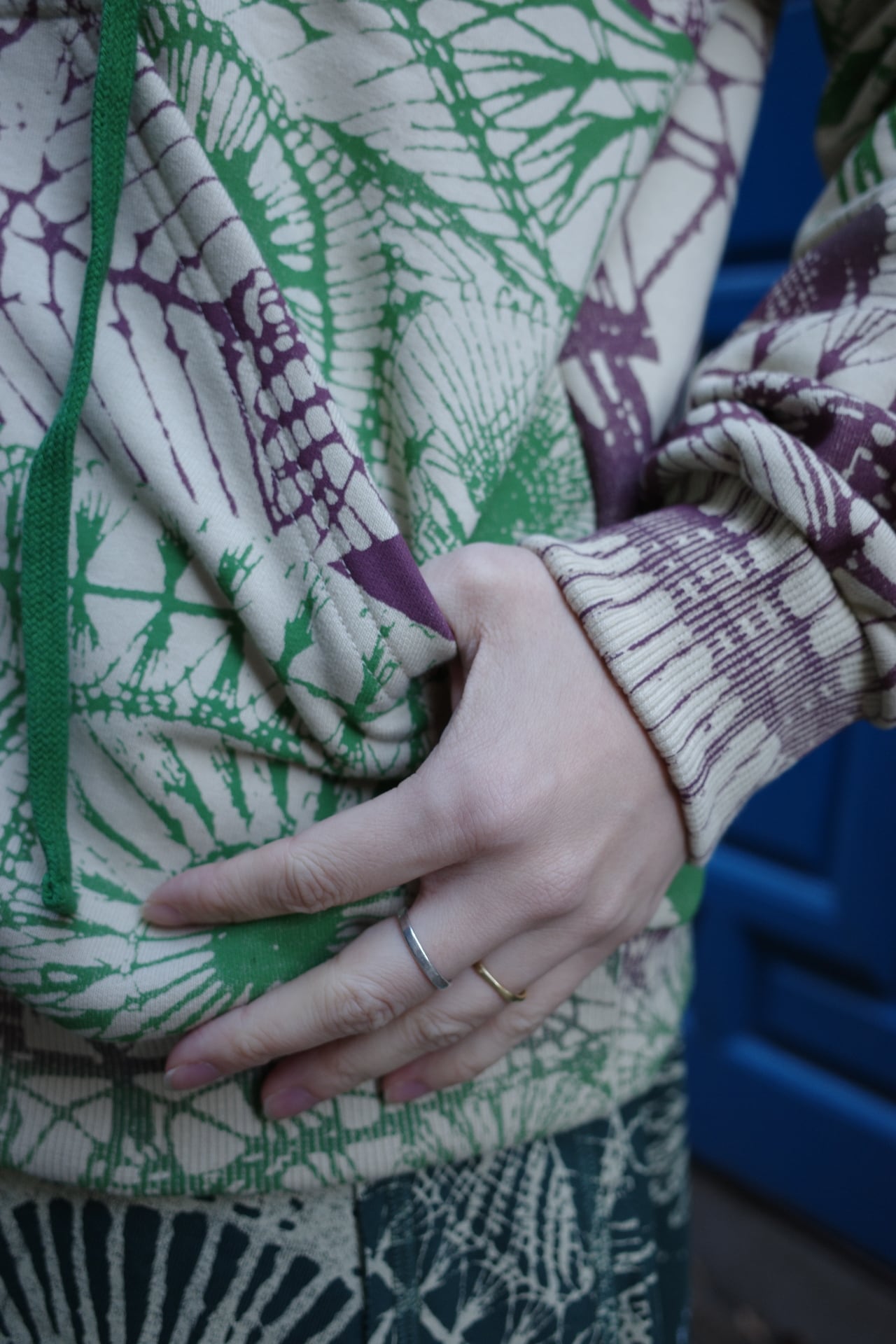 同シリーズのジョギングパンツとのセットアップはもちろん、コートからフードやリブ部分をのぞかせるなど重ね着もおすすめです。