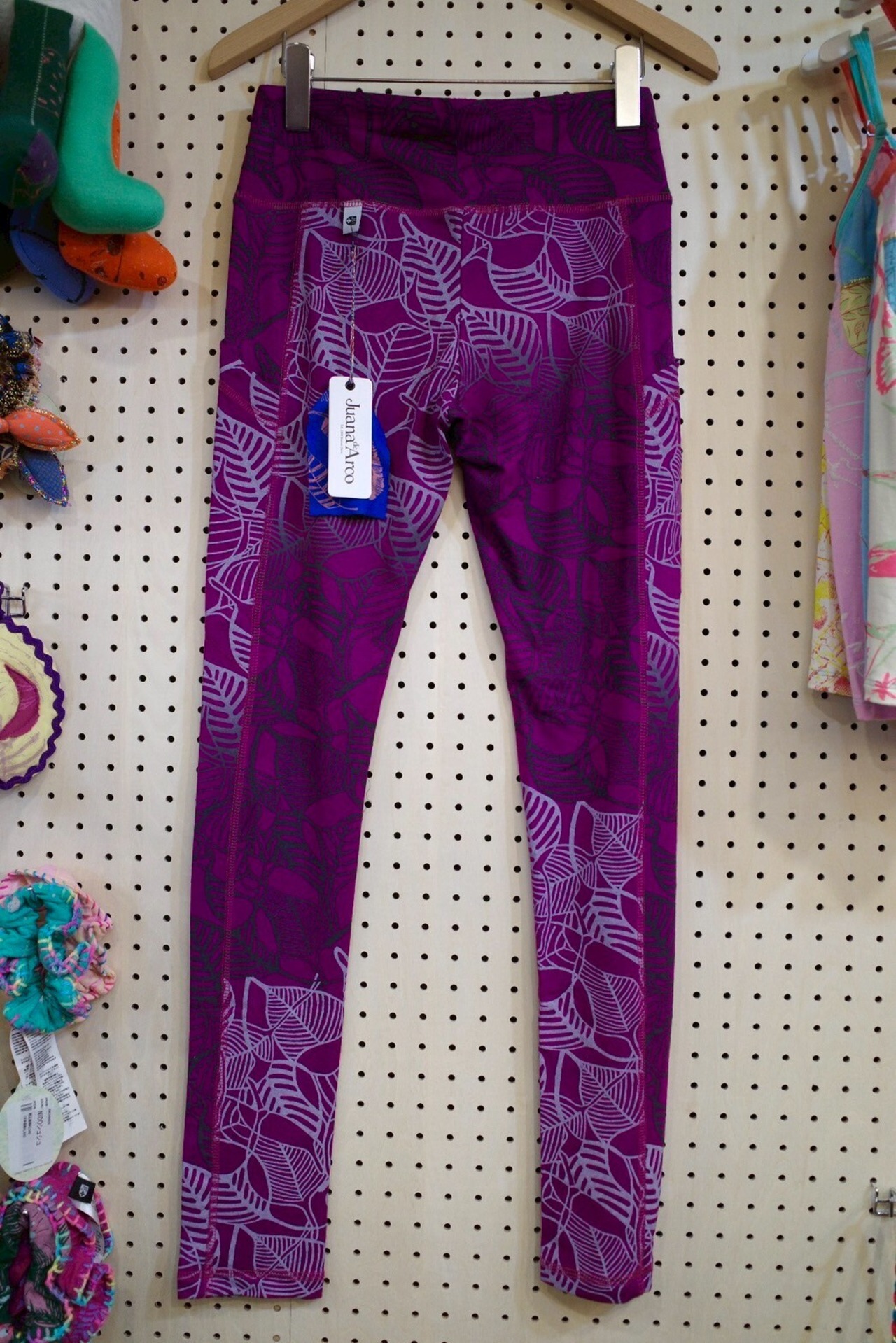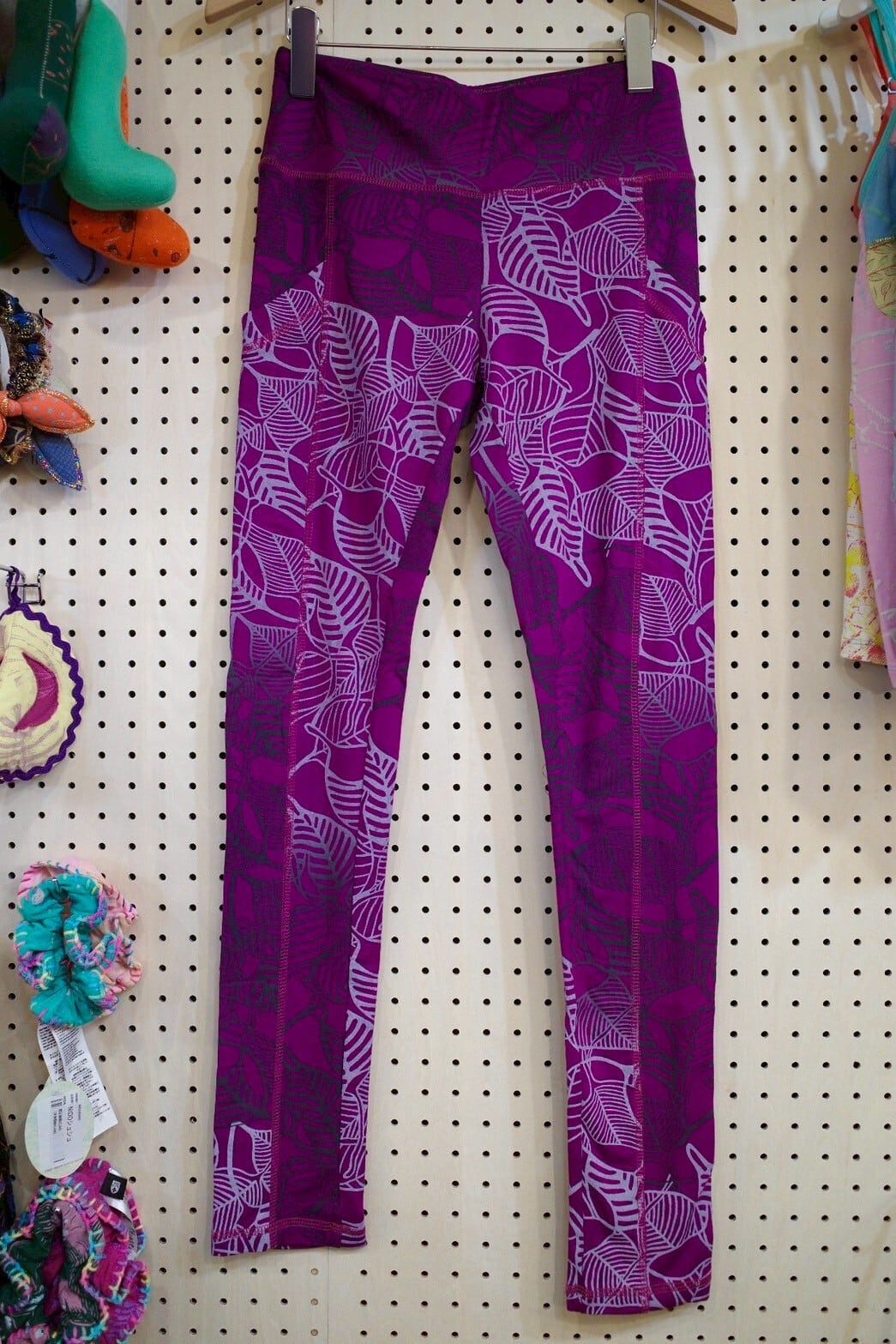 ポケット付きレギンス(パープル/葉脈柄)
