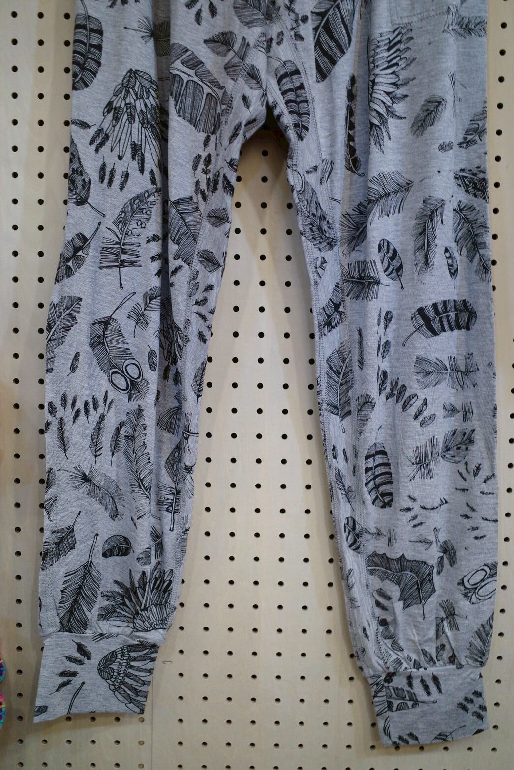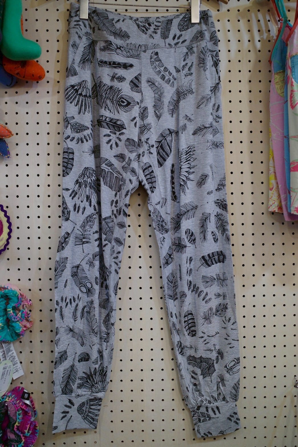 ポケット付きアラジンパンツ(グレー/ルイーサの羽根柄) XLサイズ