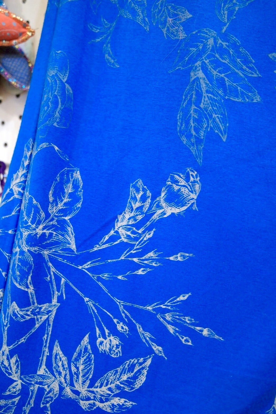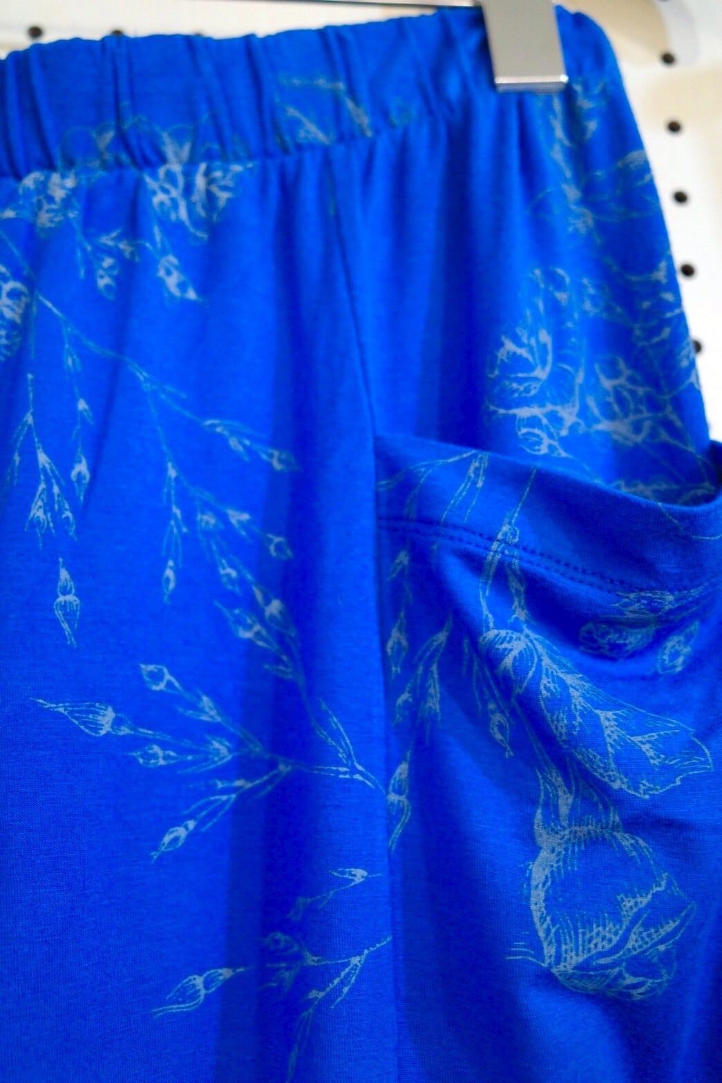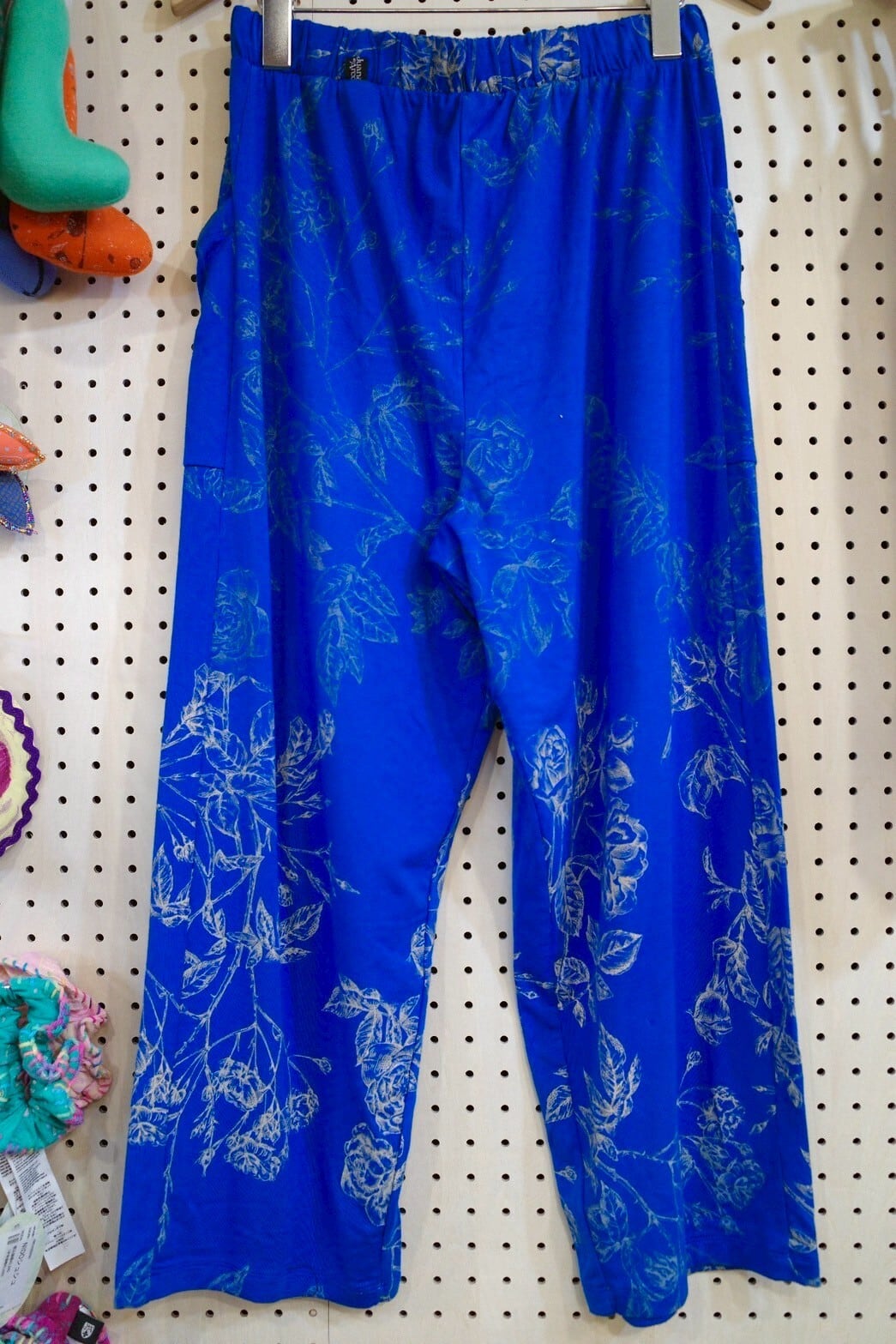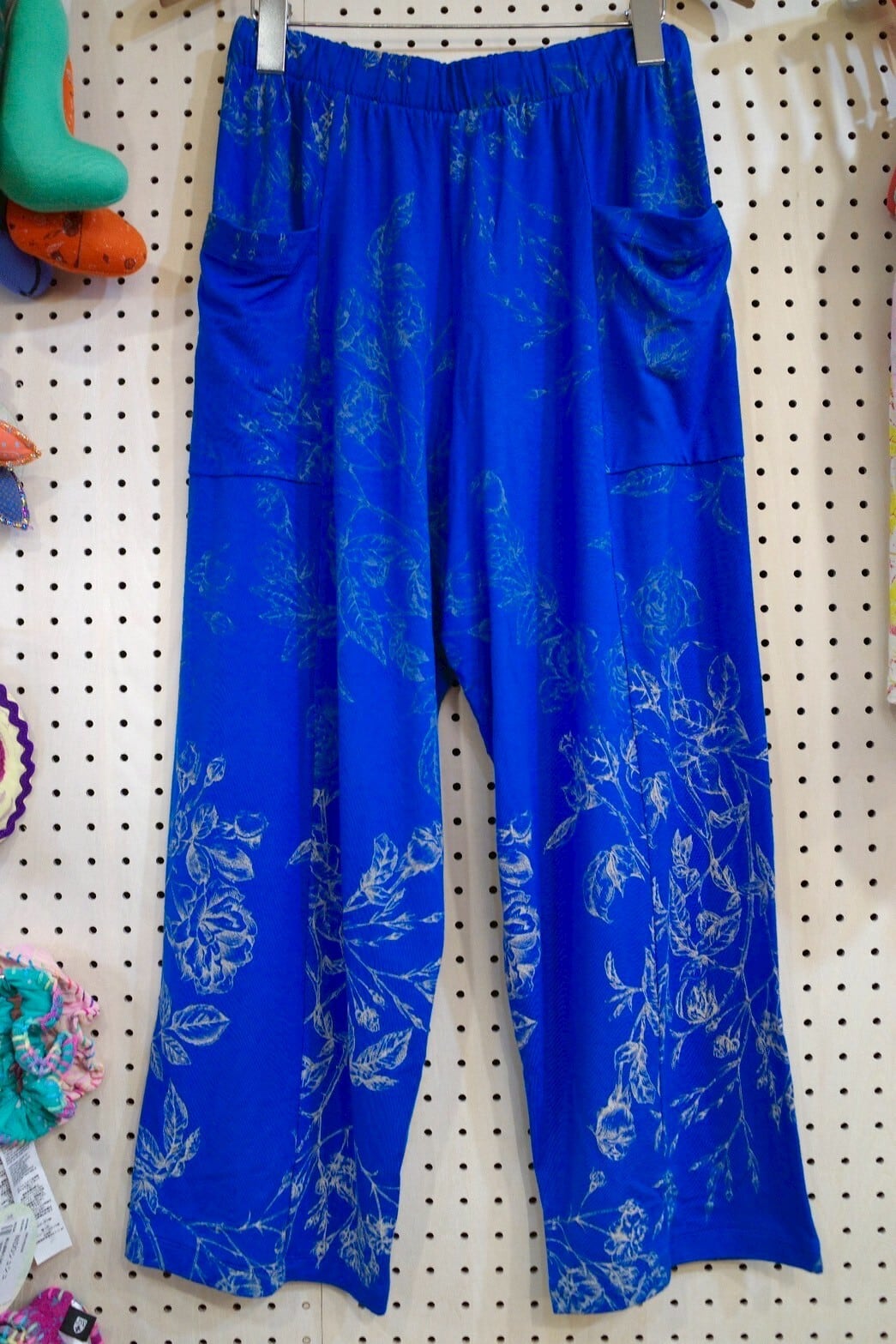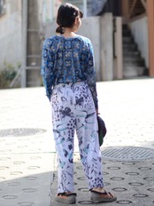 ポケット付きワイドパンツ(ブルー/バラ柄)