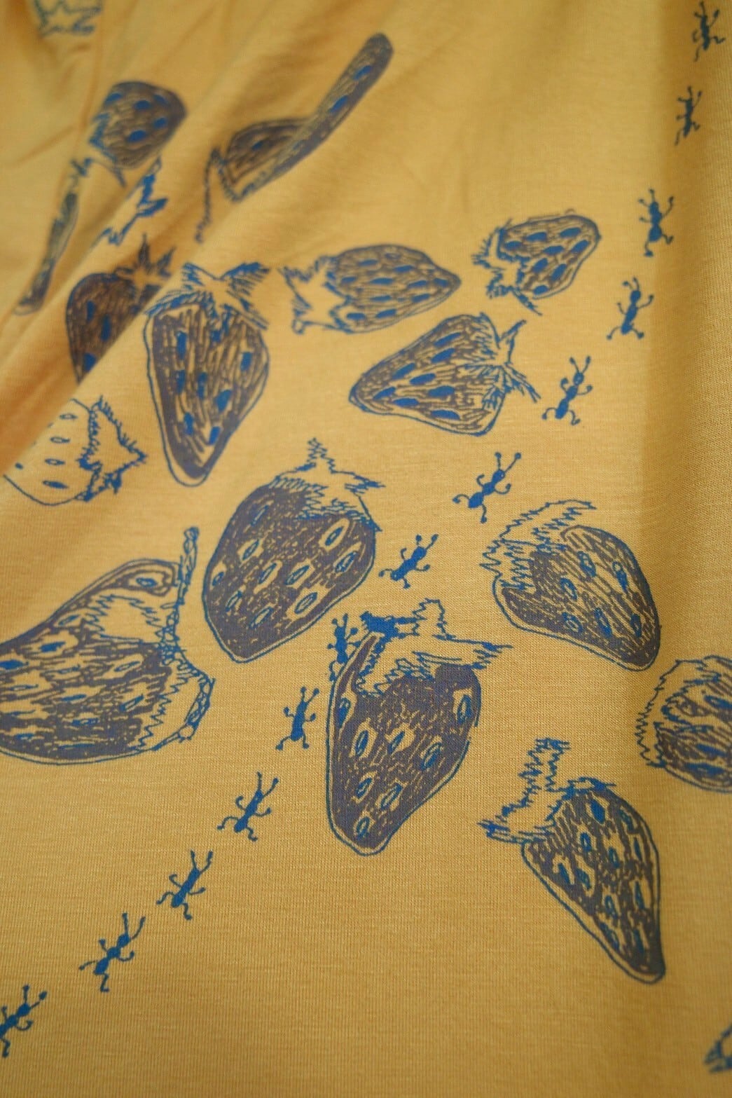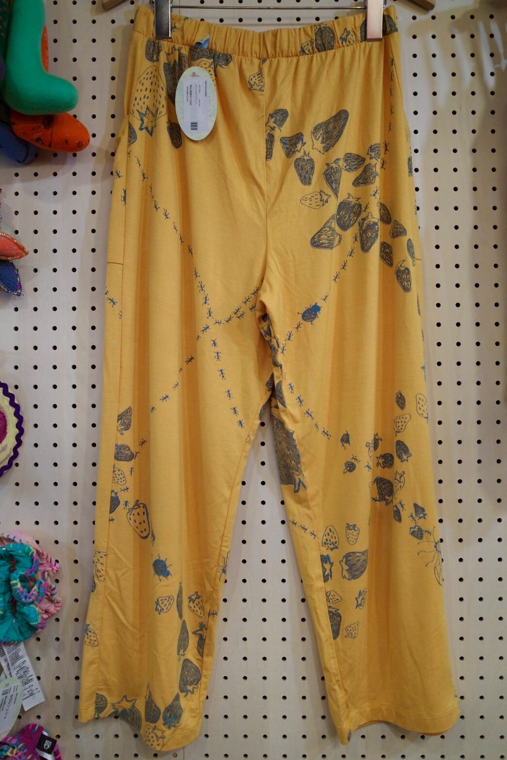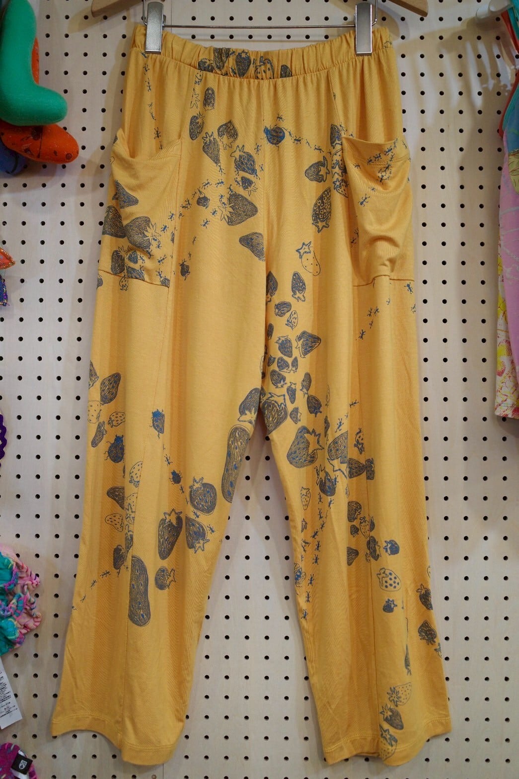 ポケット付きワイドパンツ(マスタードイエロー/いちごとあり柄)