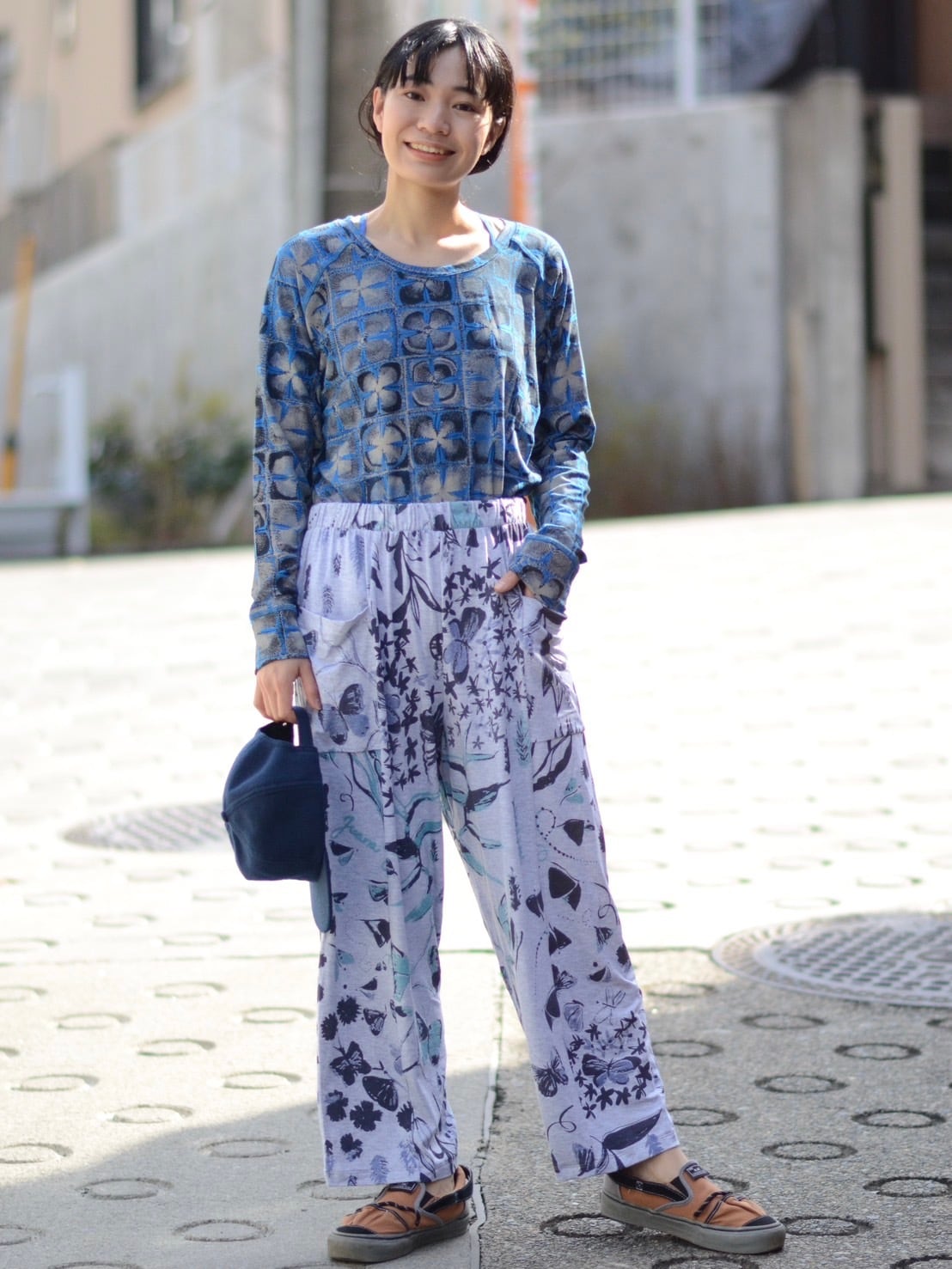 ポケット付きワイドパンツ。