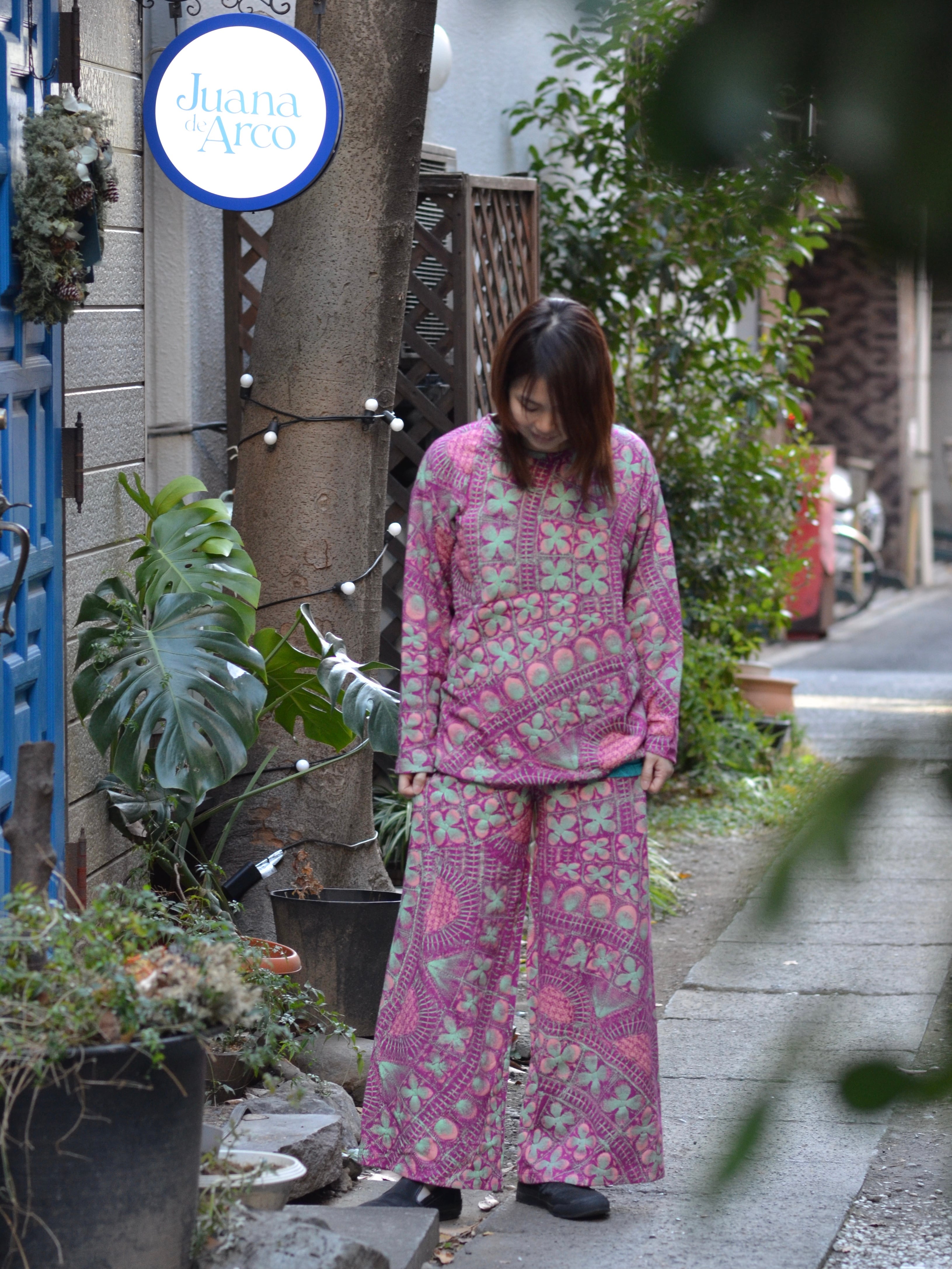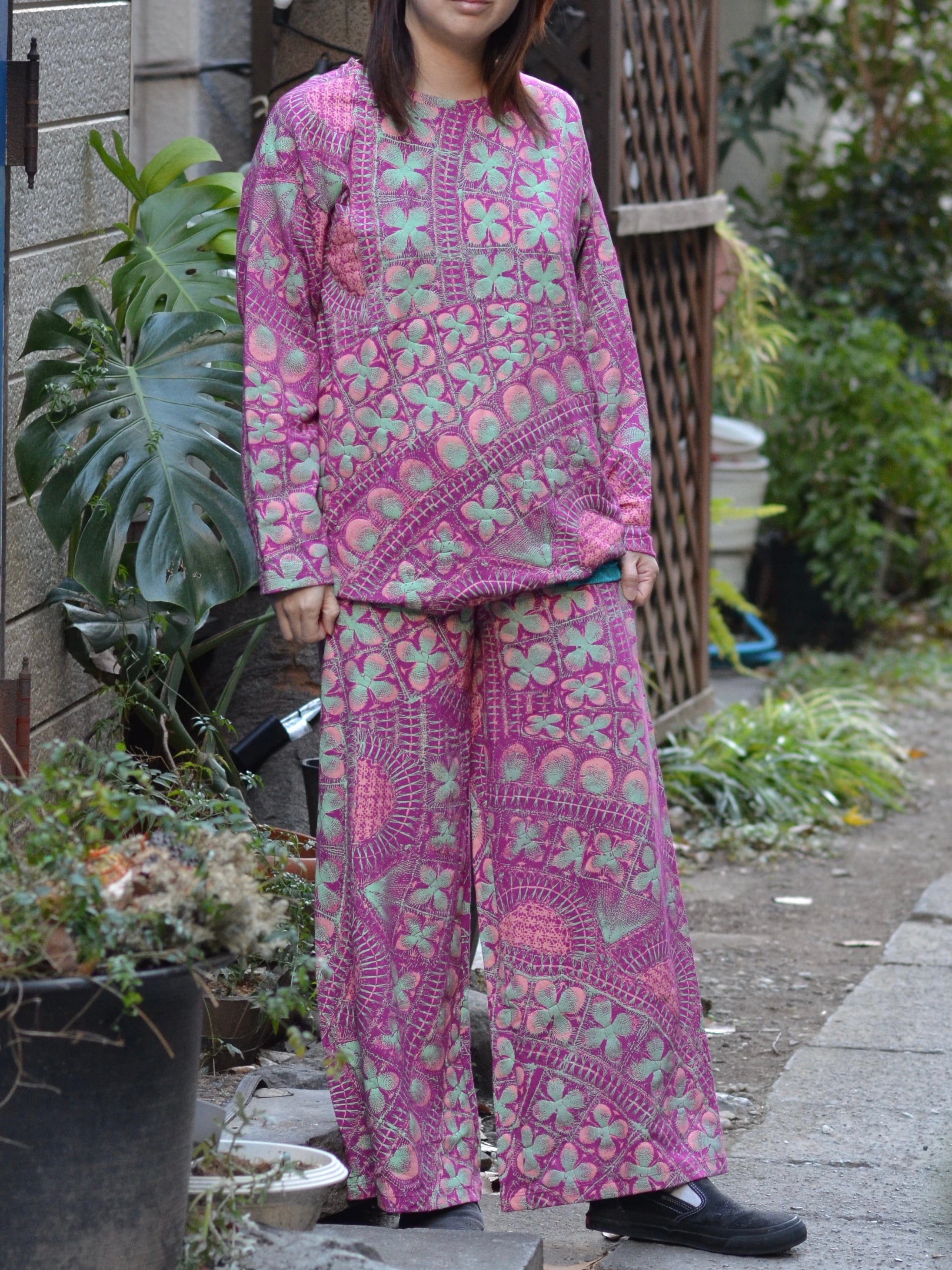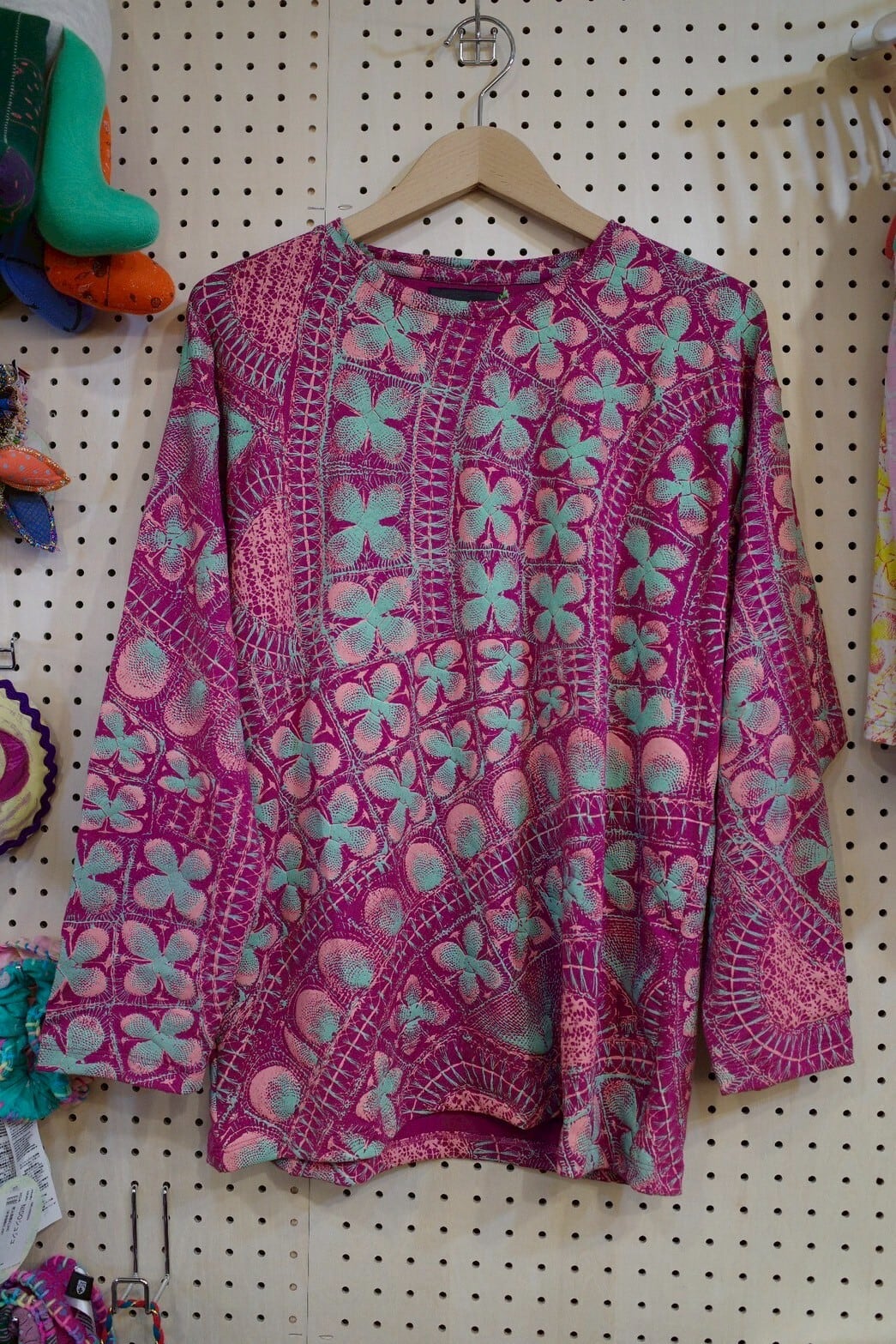 ゆったりロングスリーブトップス(パープル/ニャンドゥティ柄)