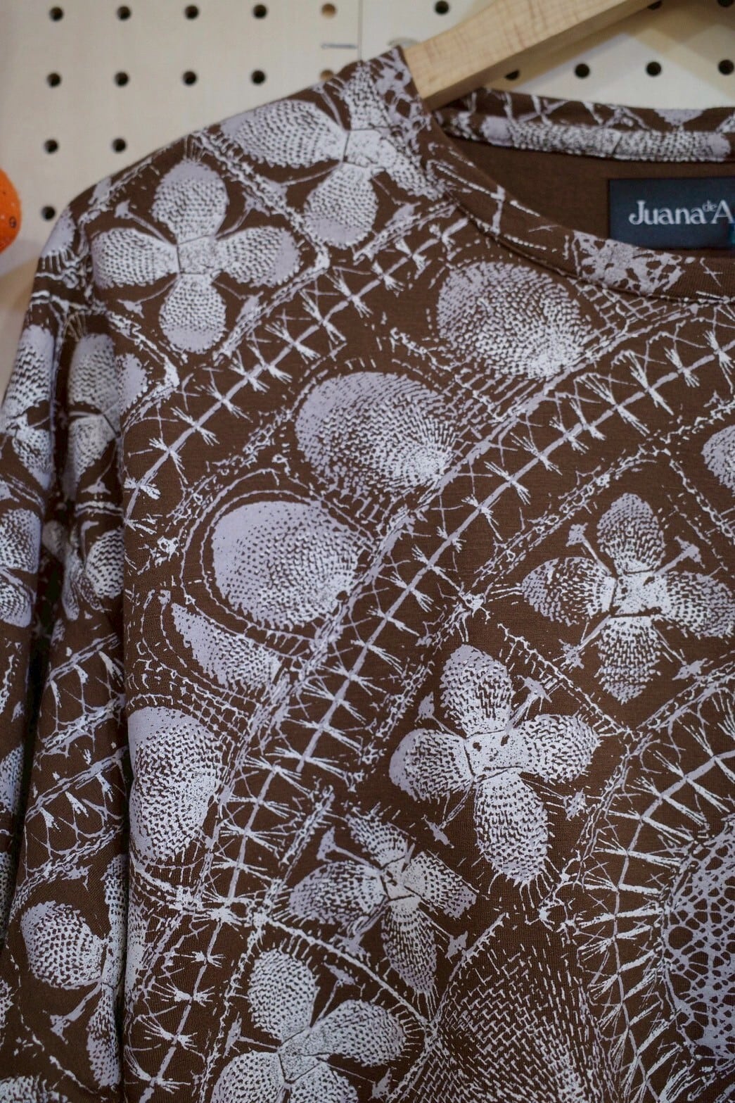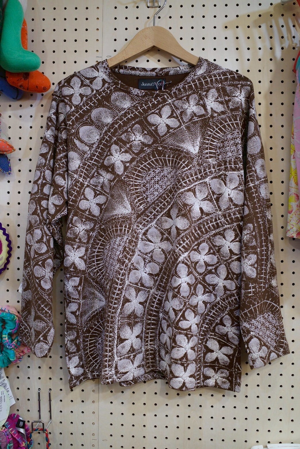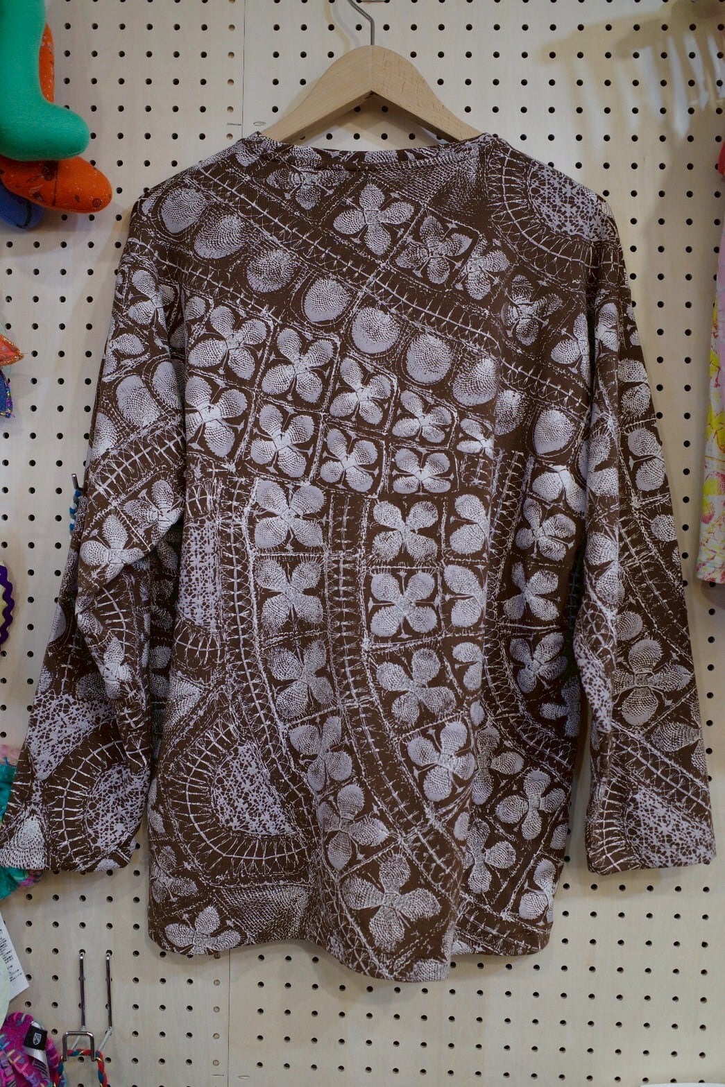 ゆったりロングスリーブトップス(ブラウン/ニャンドゥティ柄)