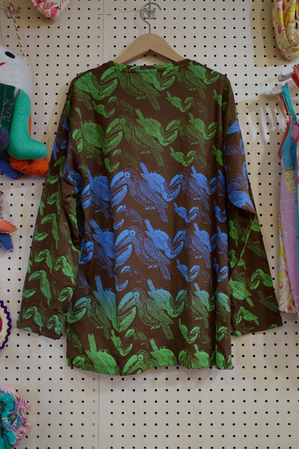 ゆったりロングスリーブトップス(ブラウン/トゥカン柄)