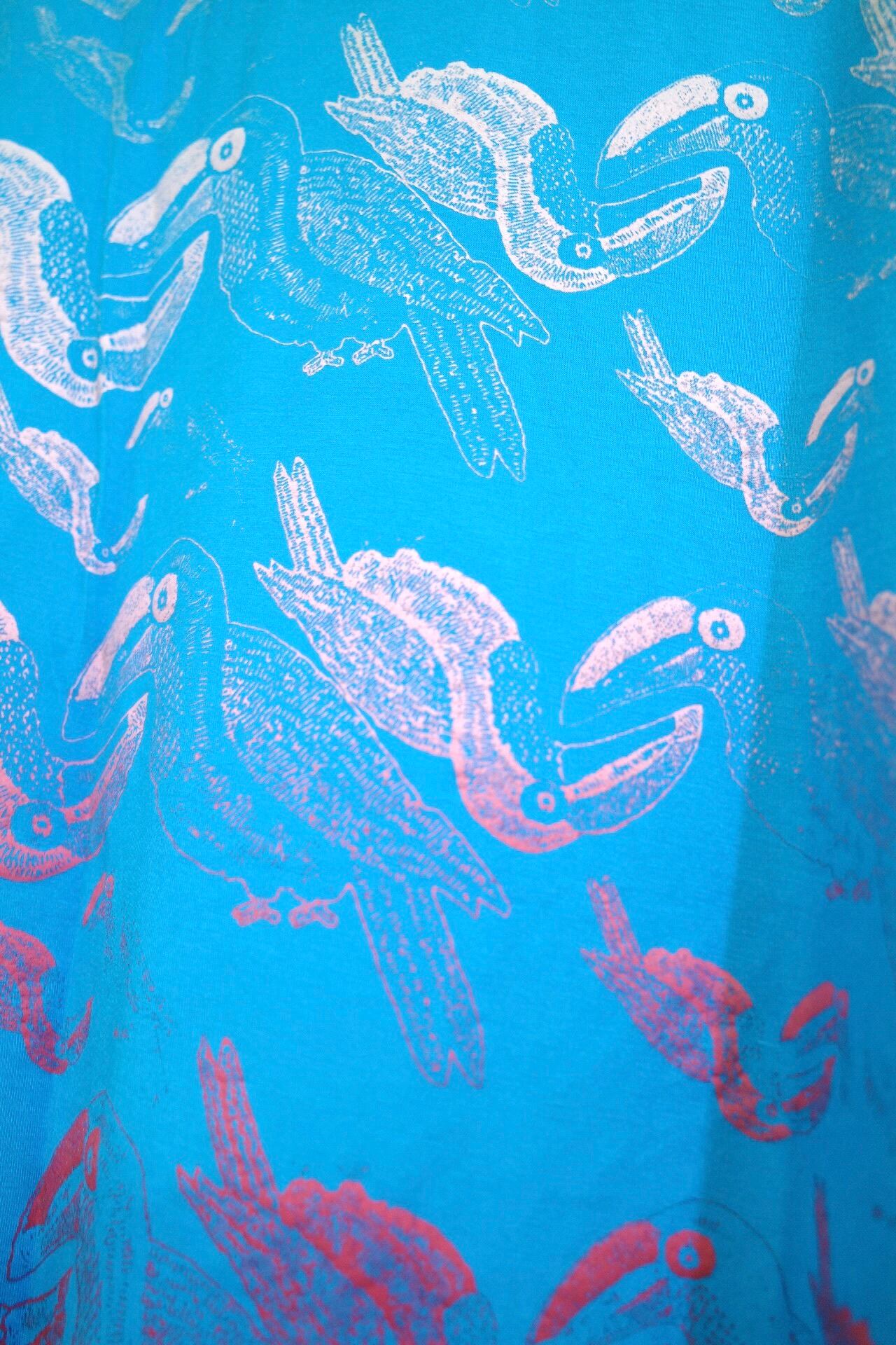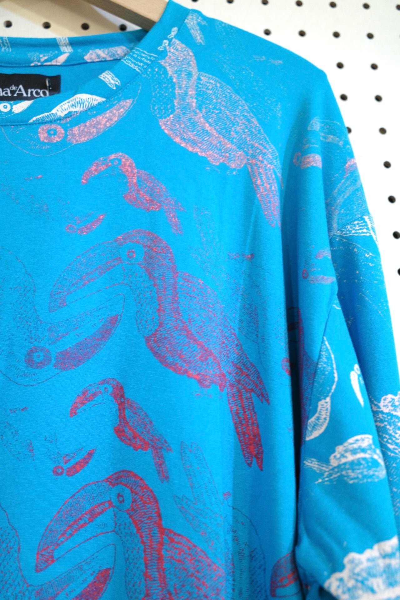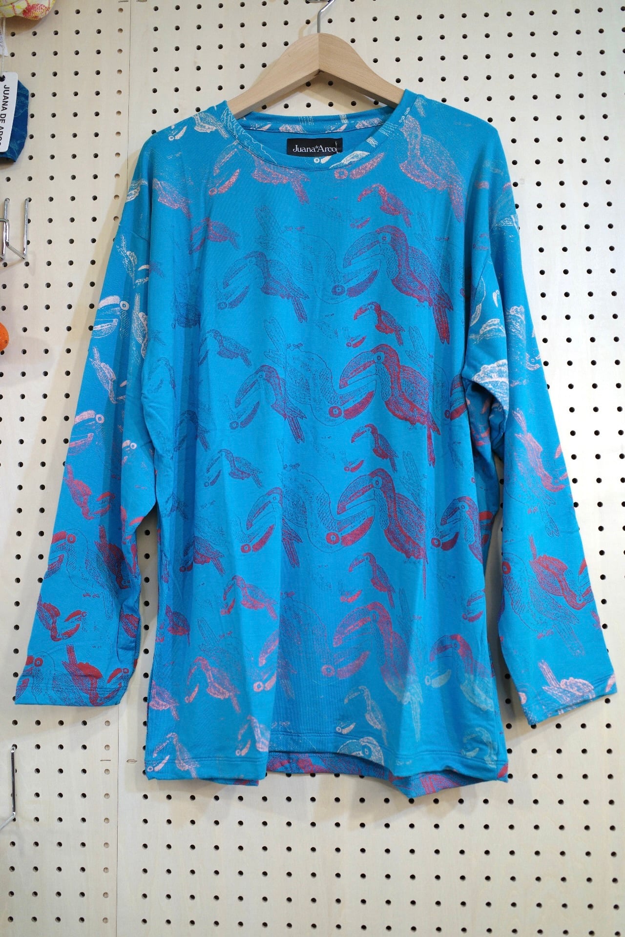 ゆったりロングスリーブトップス(ターコイズブルー/トゥカン柄)