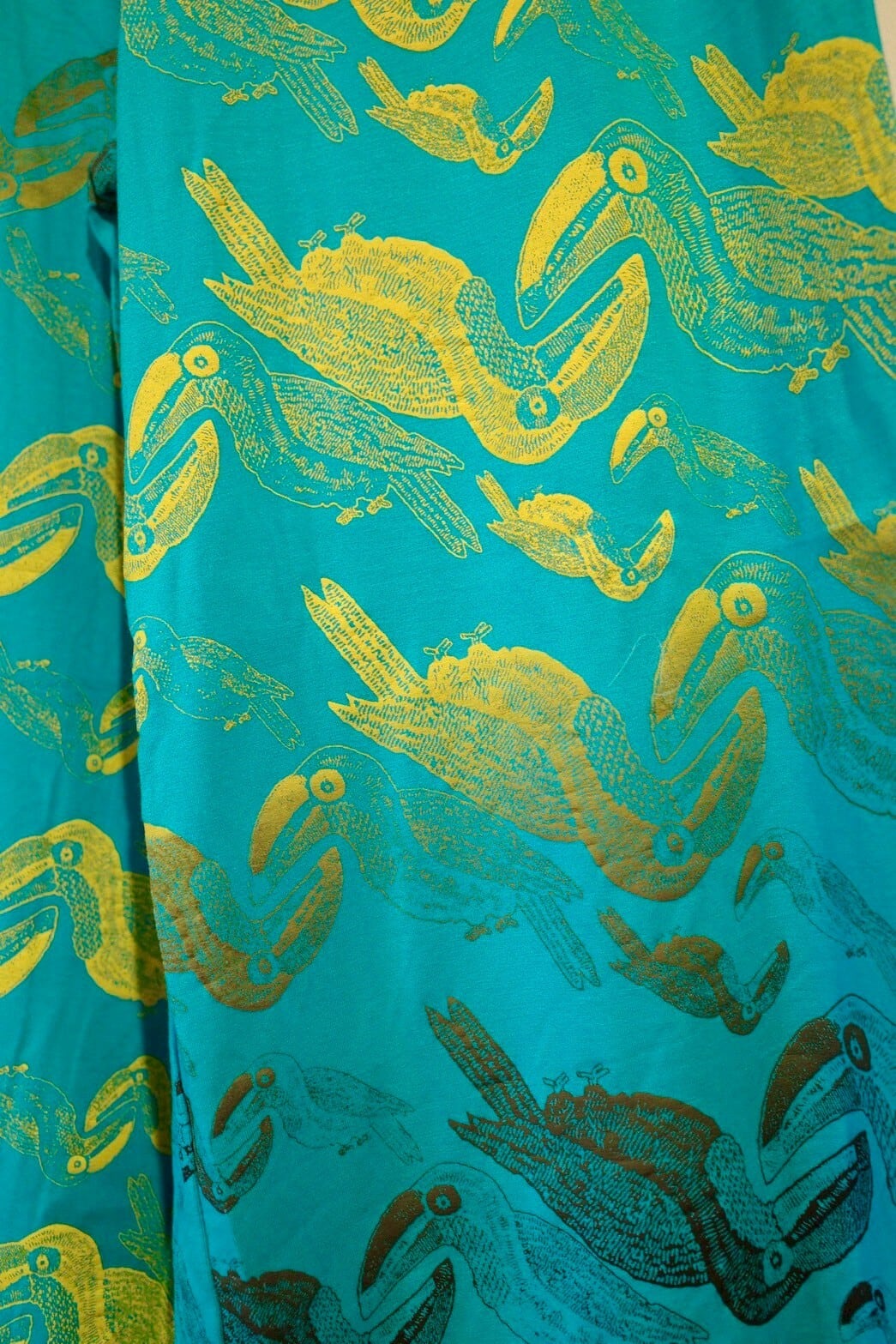 ワイドパンツ(ターコイズブルー/トゥカン柄)