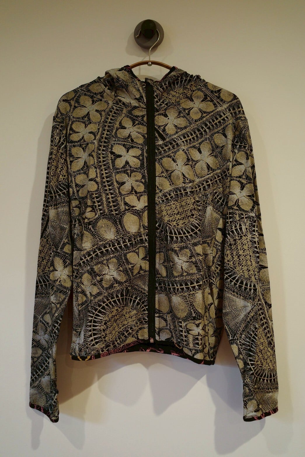サムホール、切り替えポケット、あごにファスナーが当たらないようにするチンガードつき。