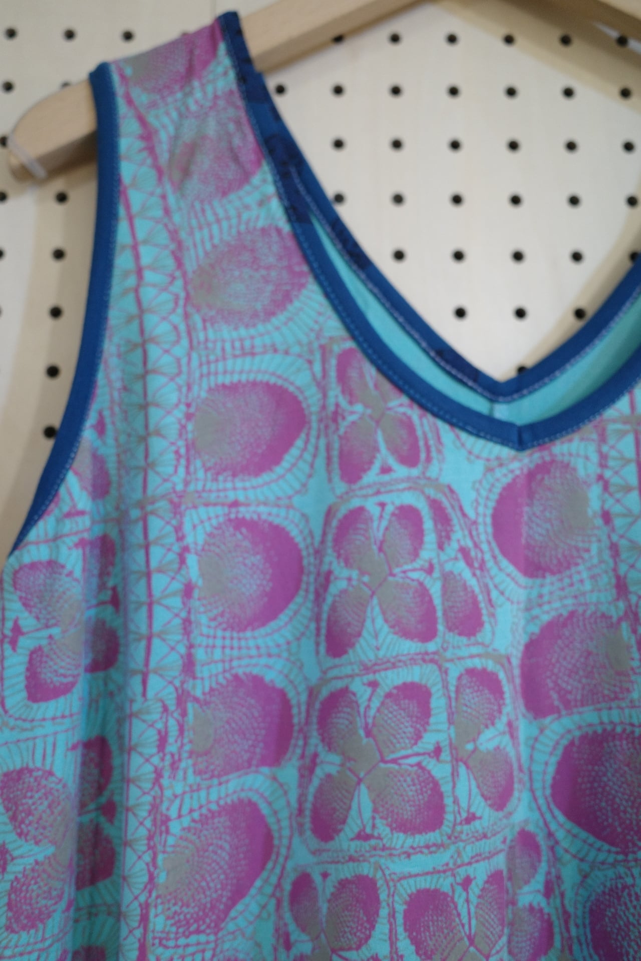 そのままハンギングして干すとだんだん生地が伸びてきます。