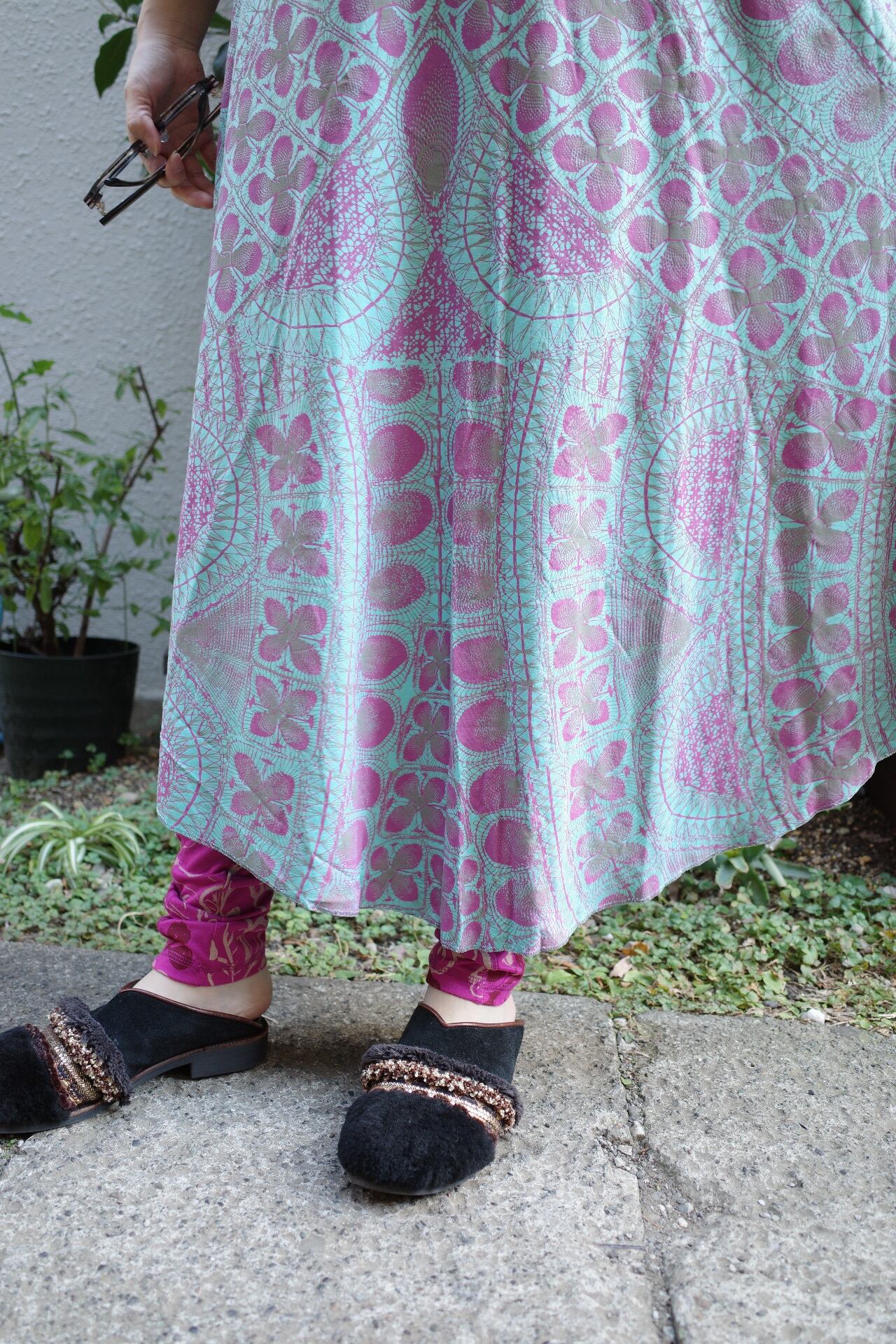 裾に向かってフレアのなるAラインのシルエットが、柔らかい女性らしさを引き出します。